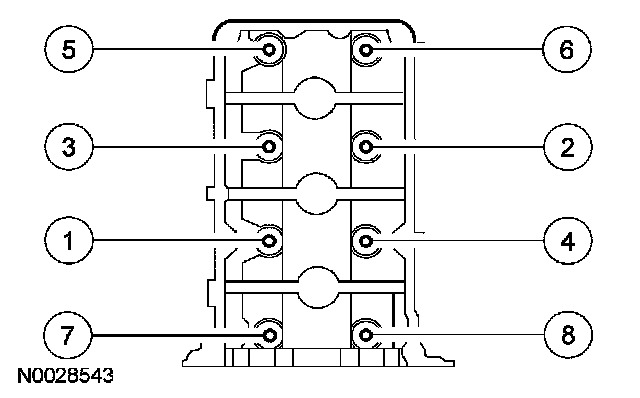 ^ Stage 1: Tighten fasteners 1 through 8 to 25 Nm (18 lb-ft).