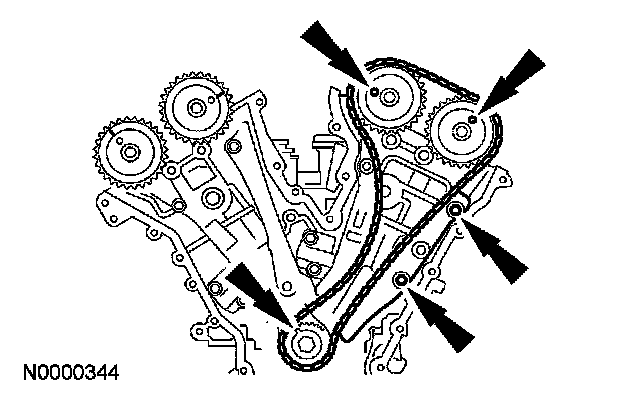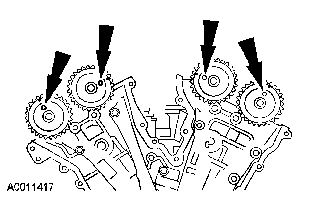39. If timing marks in the timing chains are not evident, use a permanent-type marker to mark the crankshaft and camshaft timing marks on the LH and RH timing chains.