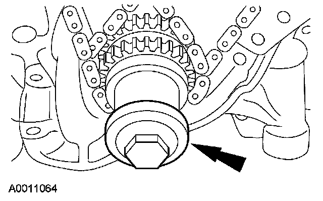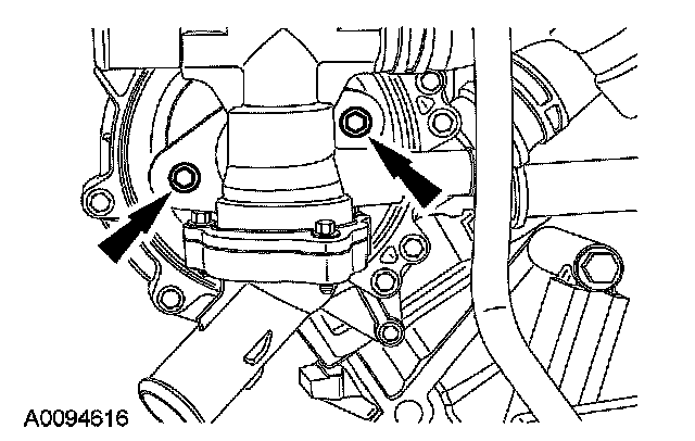 remove the center coolant pump bolt from the coolant pump and discard the sealing washer.