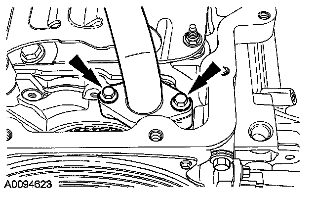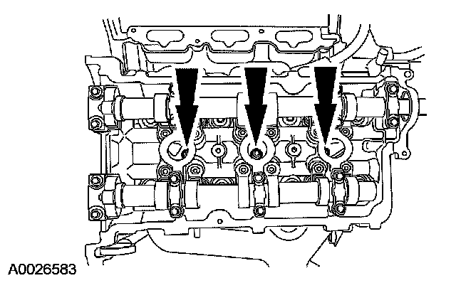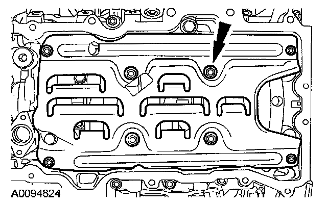 Apply a 6 mm (0.24 inch) dot of silicone gasket and sealant to the cylinder block-to-lower cylinder block and cylinder head mating surfaces.
