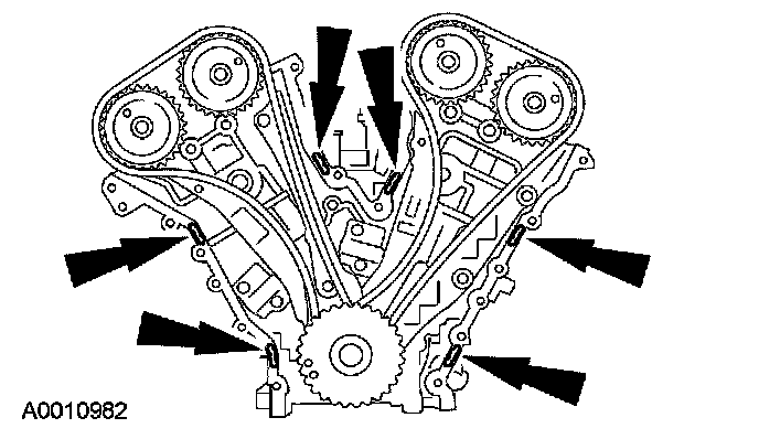 47. Remove the LH and RH timing chain tensioner piston retaining wires.