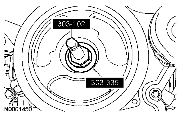 NOTE: The crankshaft damper must be installed and the bolt tightened within 4 minutes of sealant application.