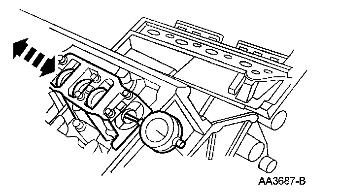 4. Move the camshaft to the front of the cylinder head. Note and record the camshaft end play.
