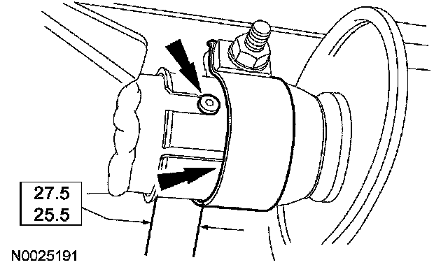 4. NOTE: Make sure the clamp position is no more than 27.5 mm (1.08 in) or less than 25.5 mm (1 in) from the inlet of the resonator pipe.
