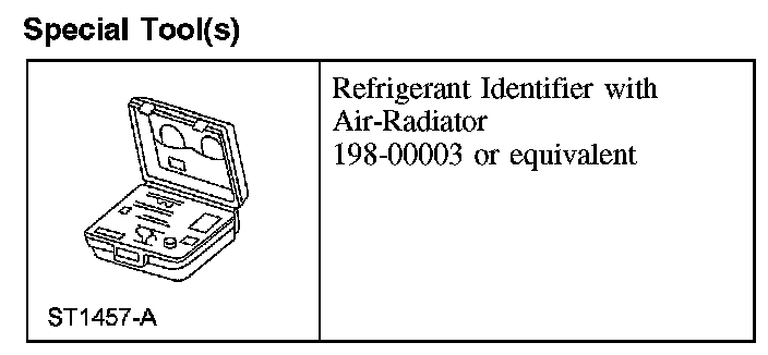 1. NOTE: An A/C refrigerant analyzer must be used to identify gas samples taken directly from the refrigeration system or storage containers prior to recovering or charging the refrigerant system.