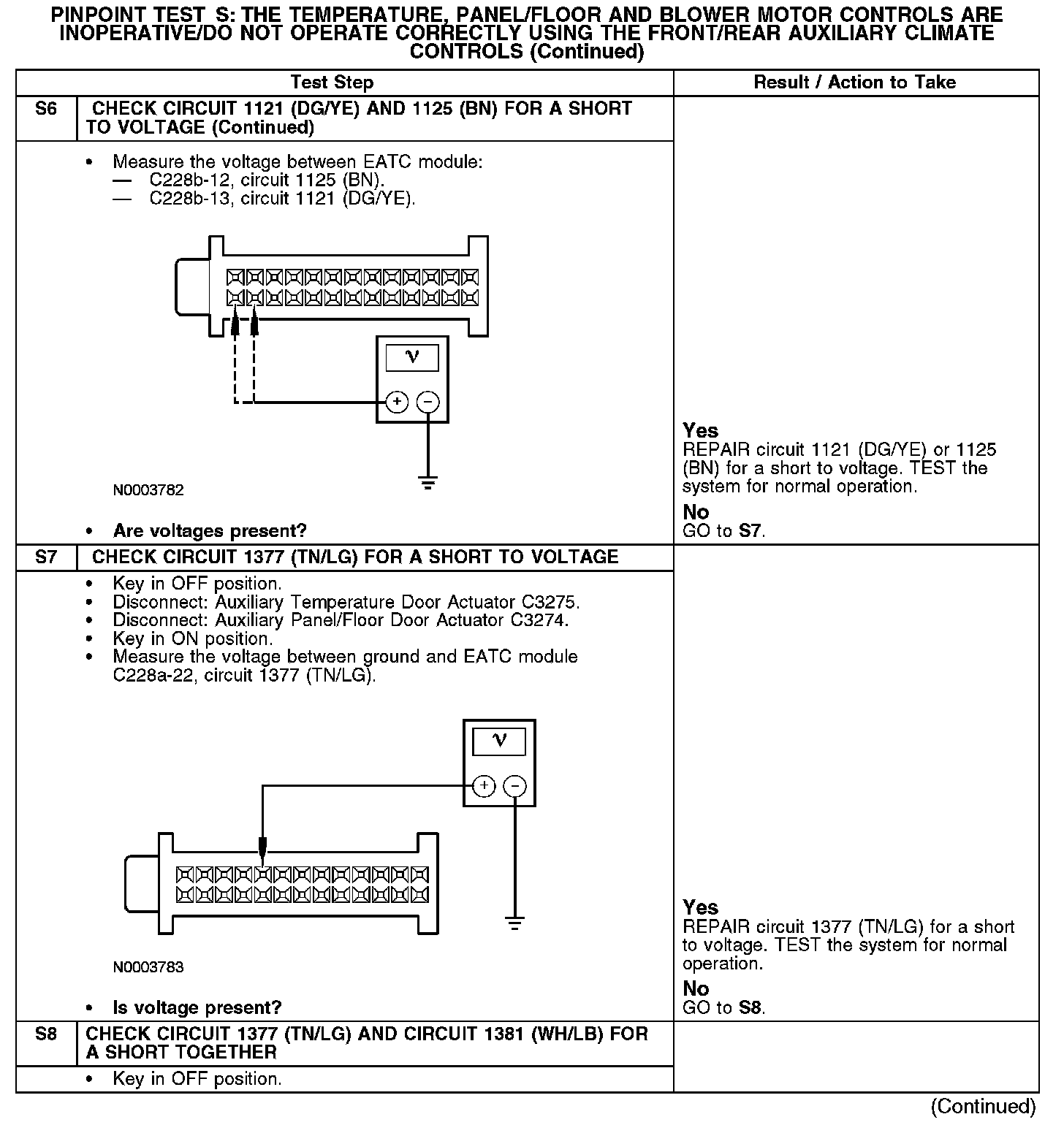 - A short to voltage in circuit 1121 (DG/YE), 1125 (BN) or 1377 (TN/LG)
