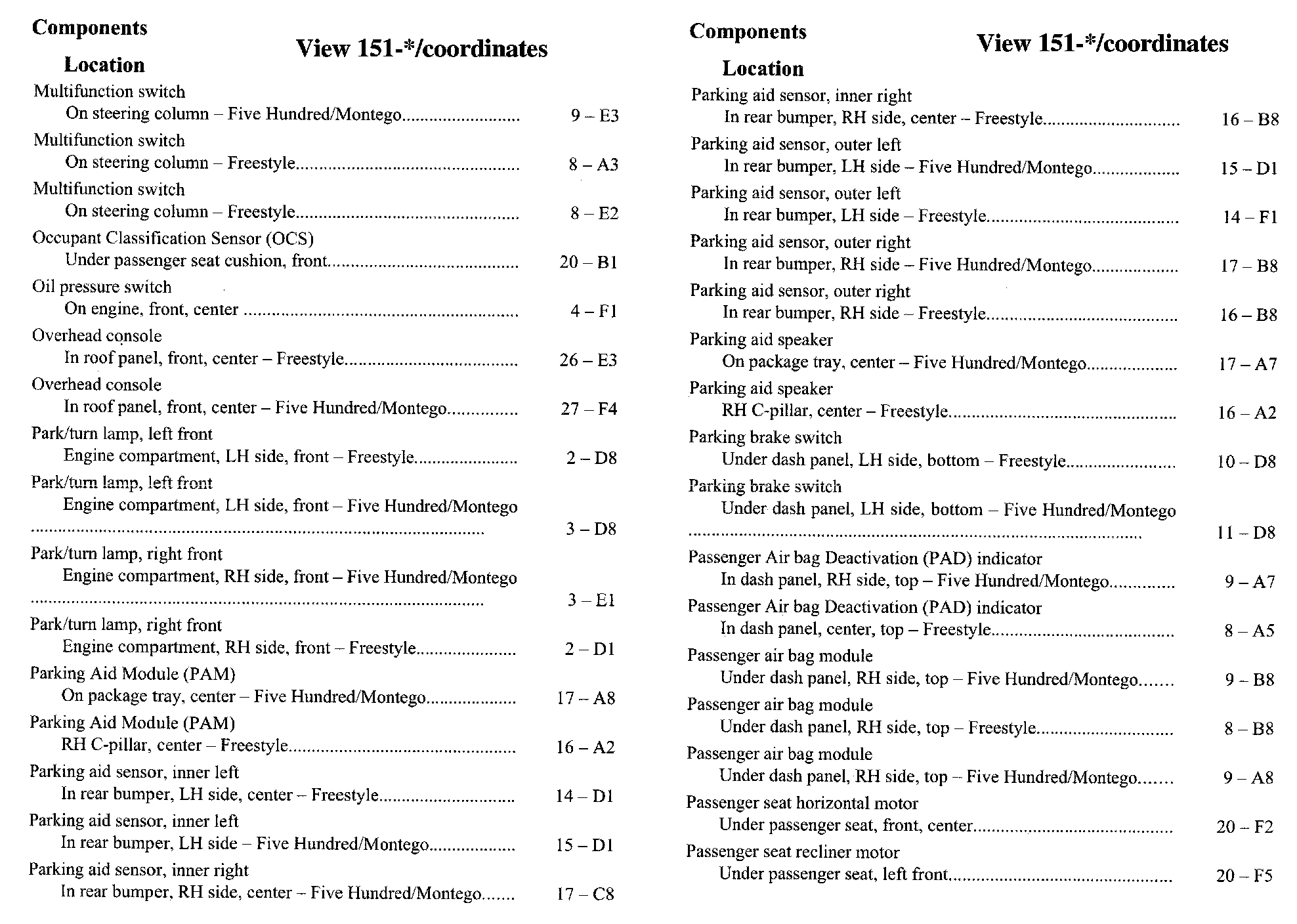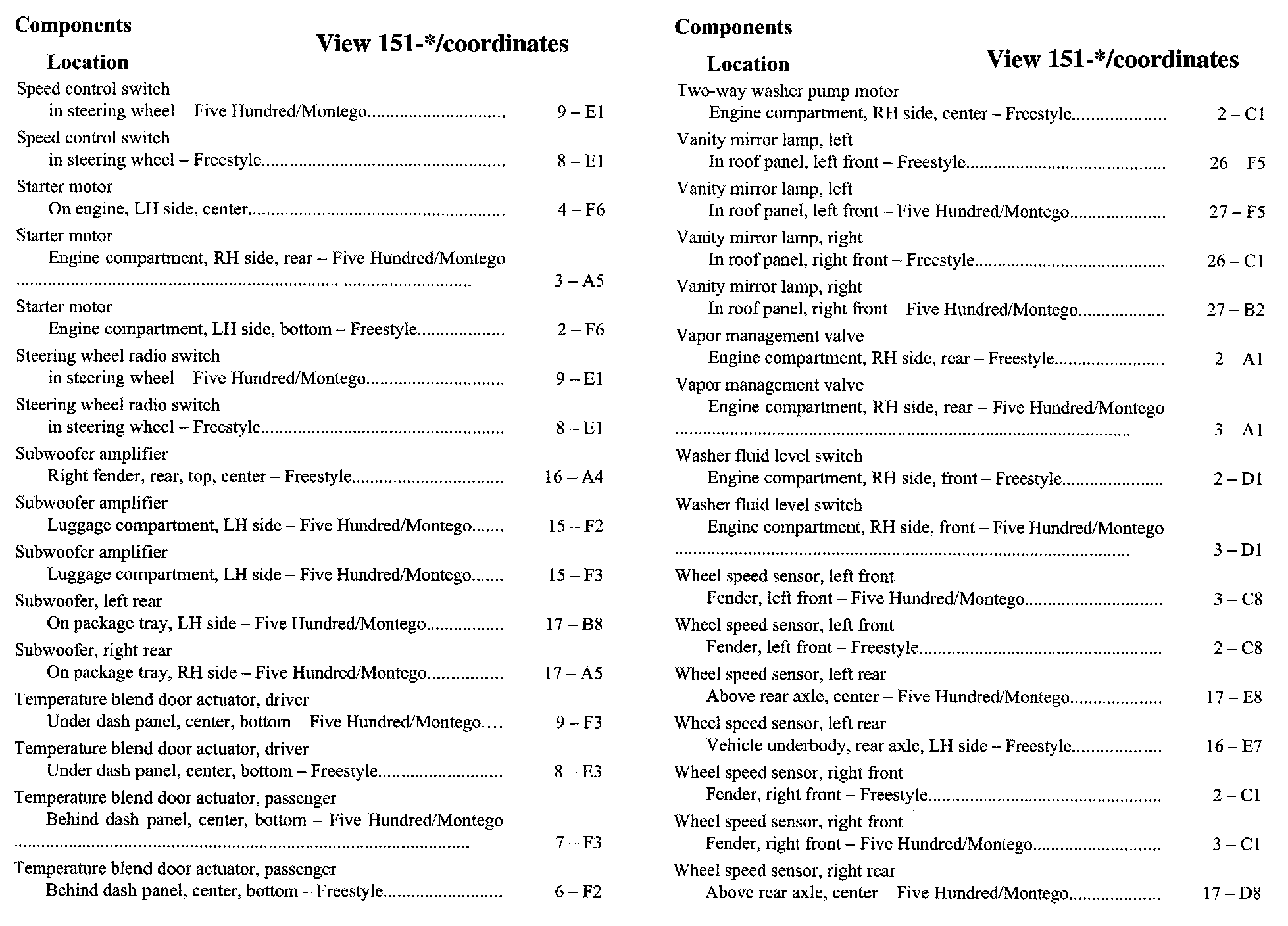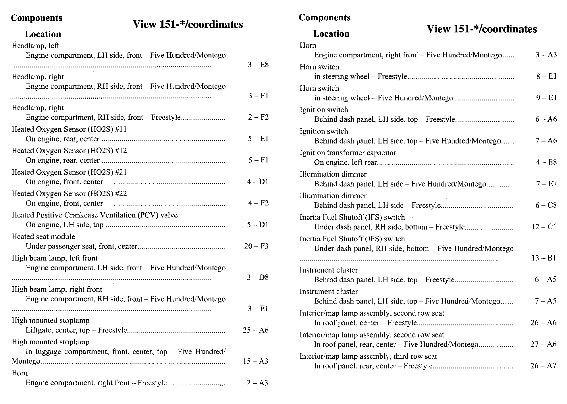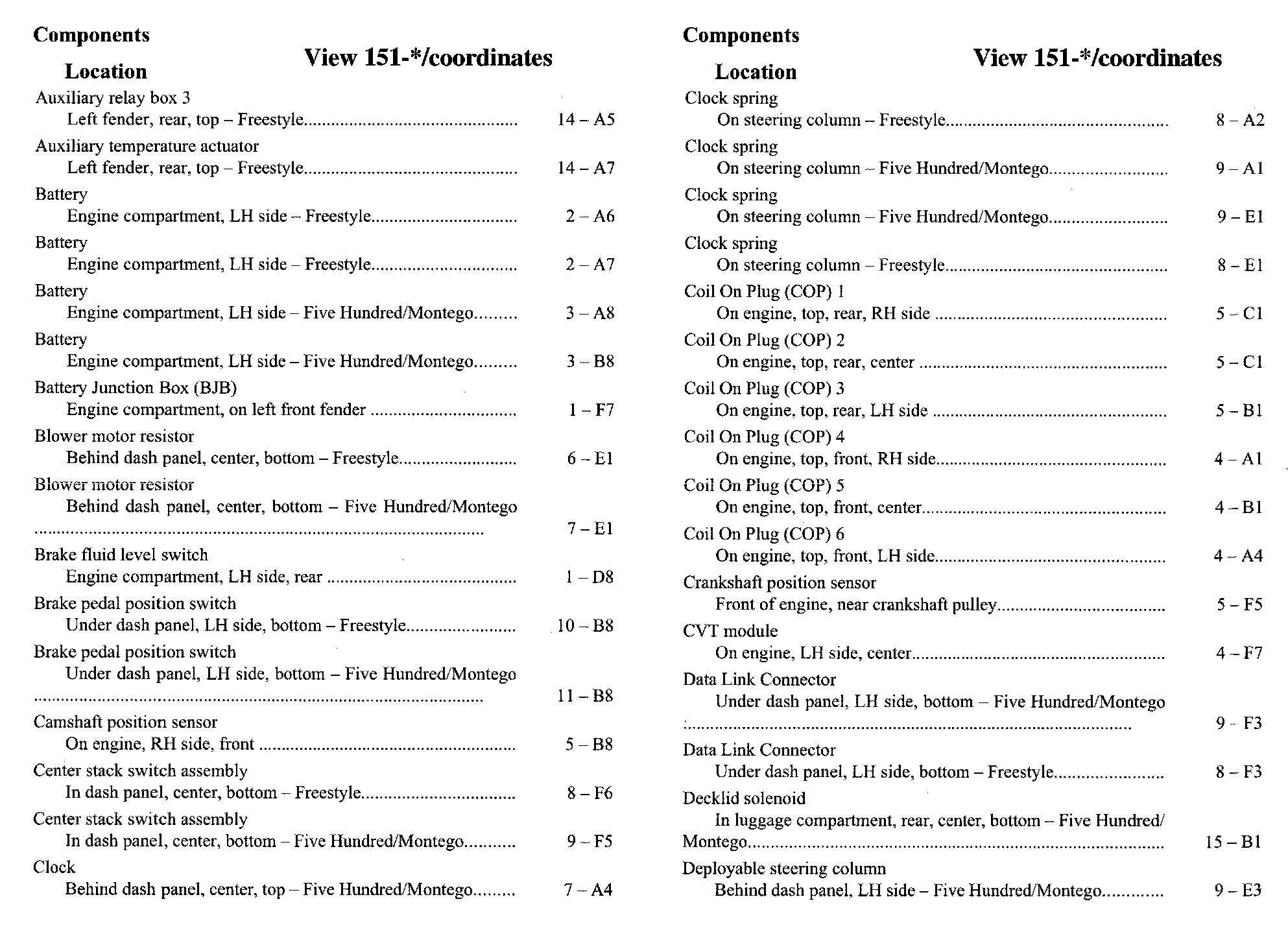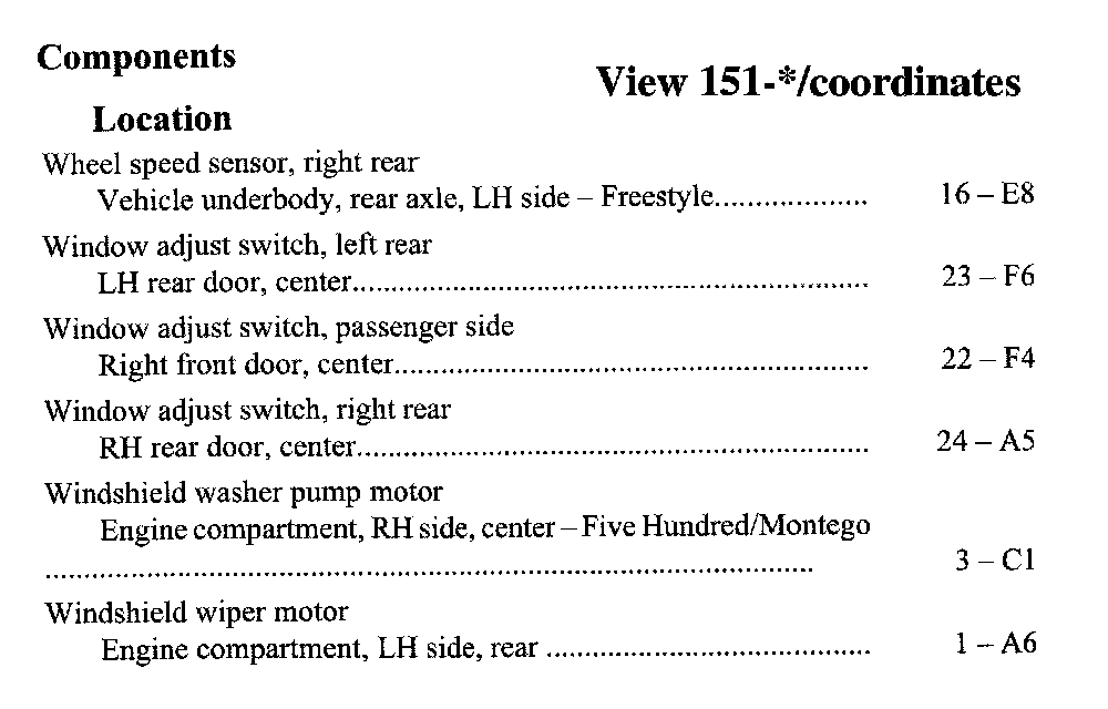 Component Location Index