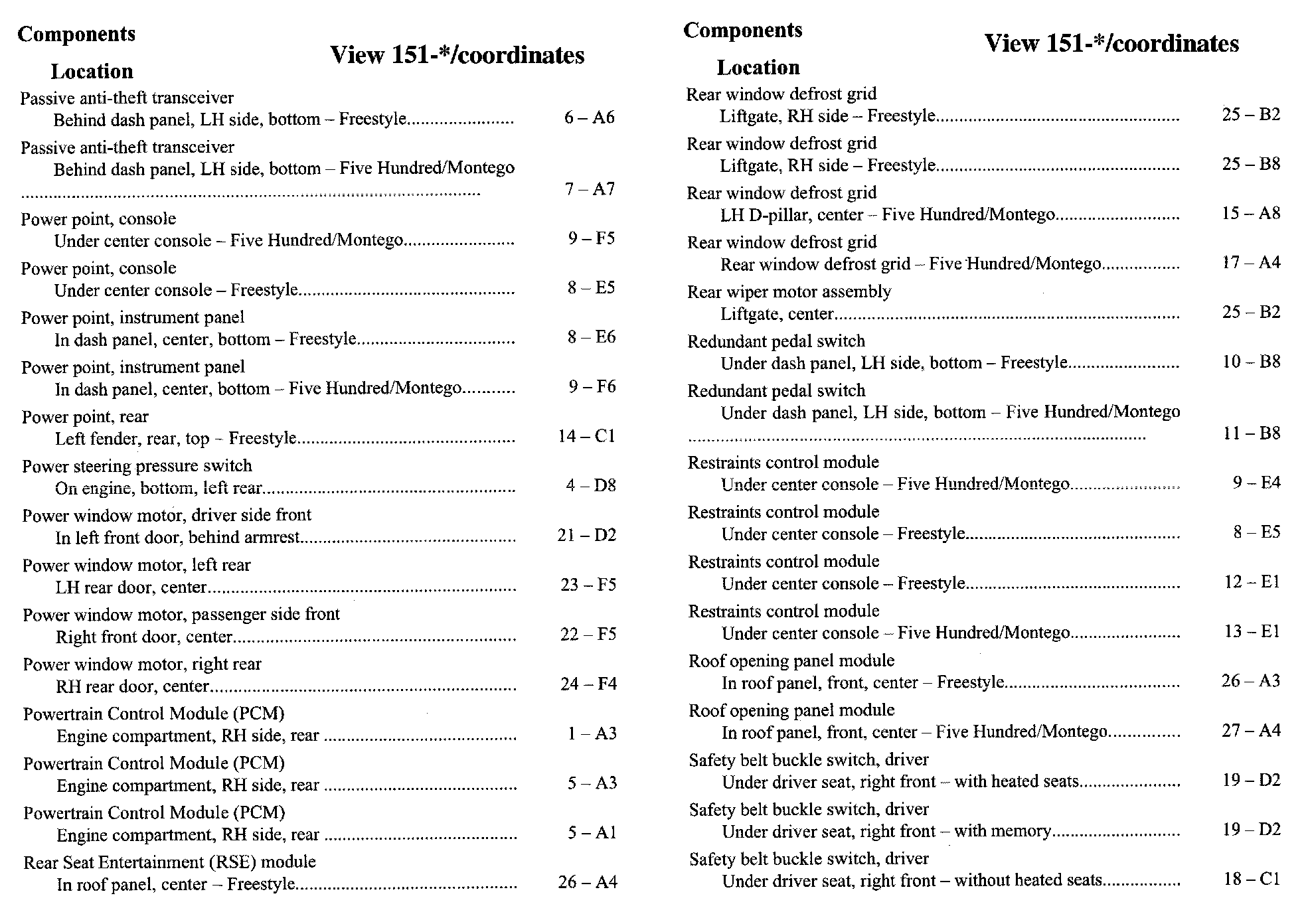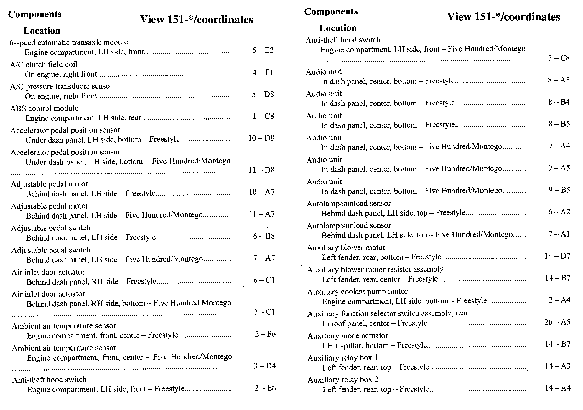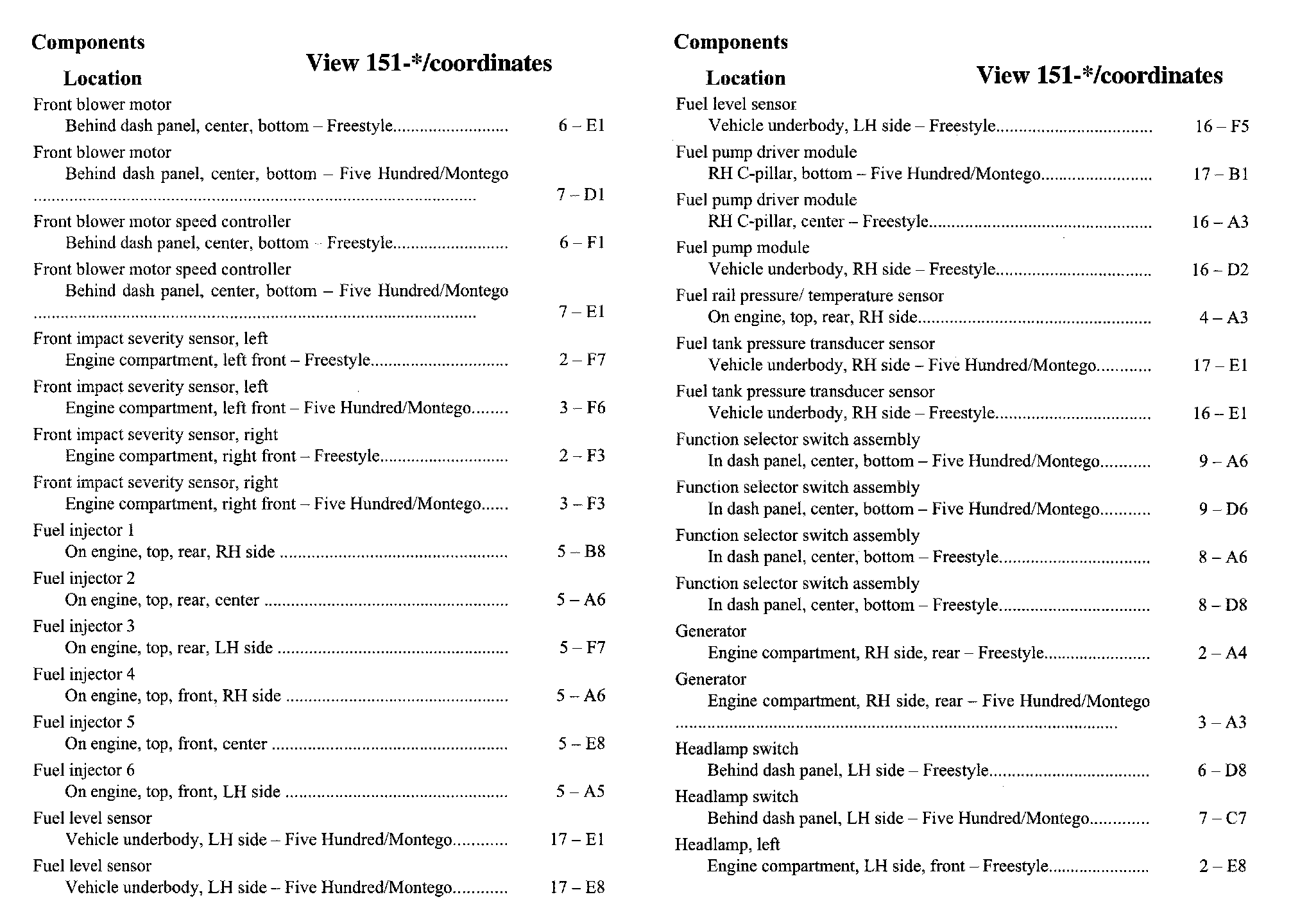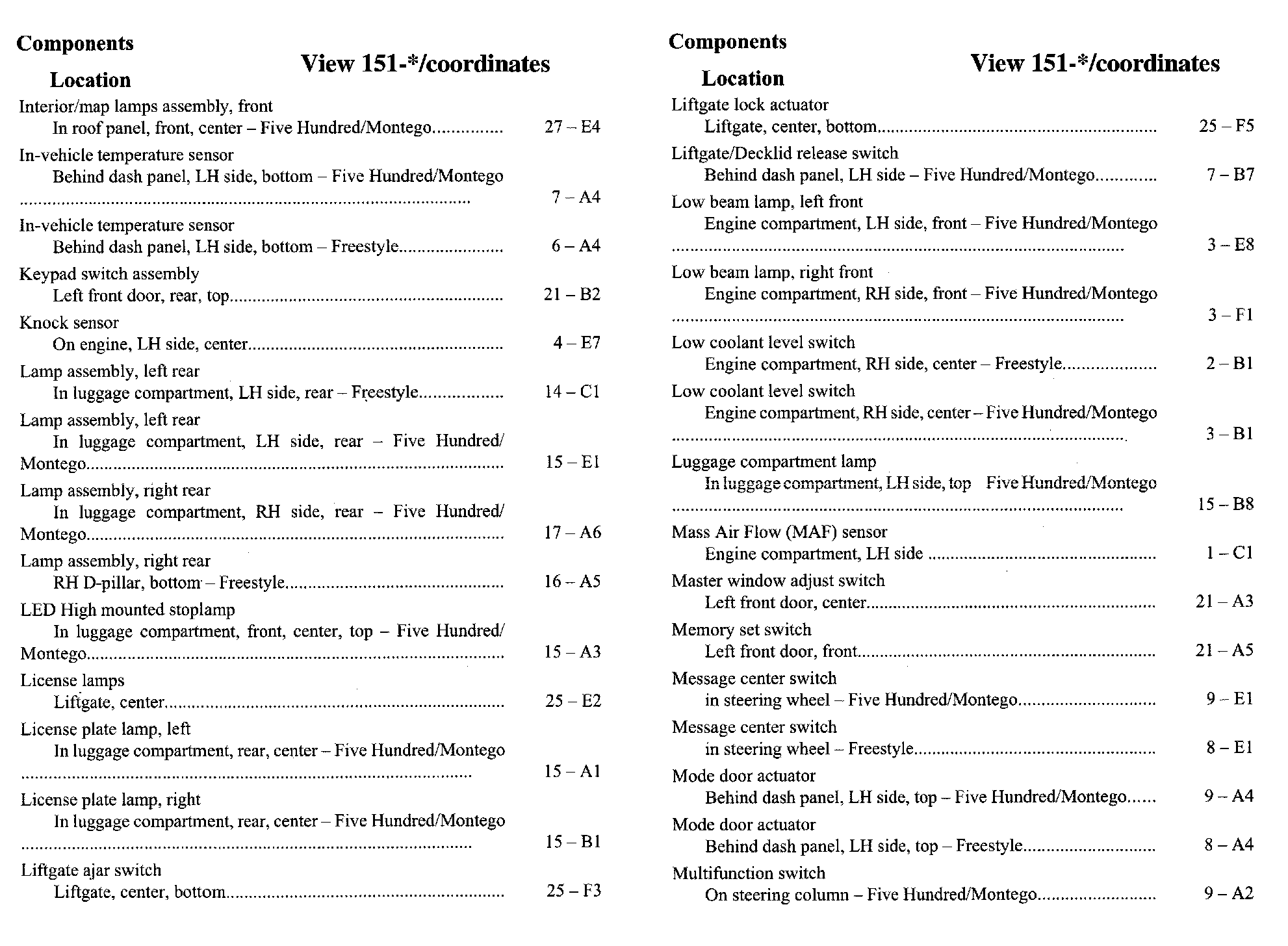 Component Location Index