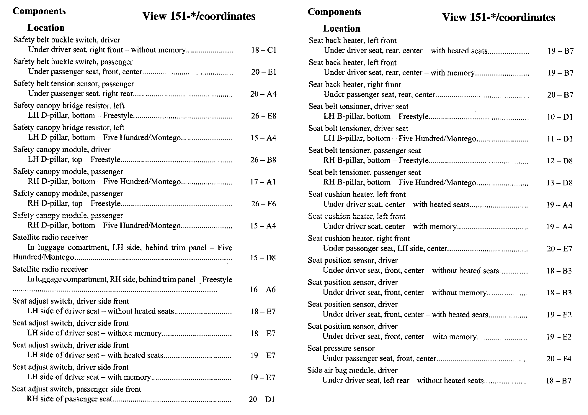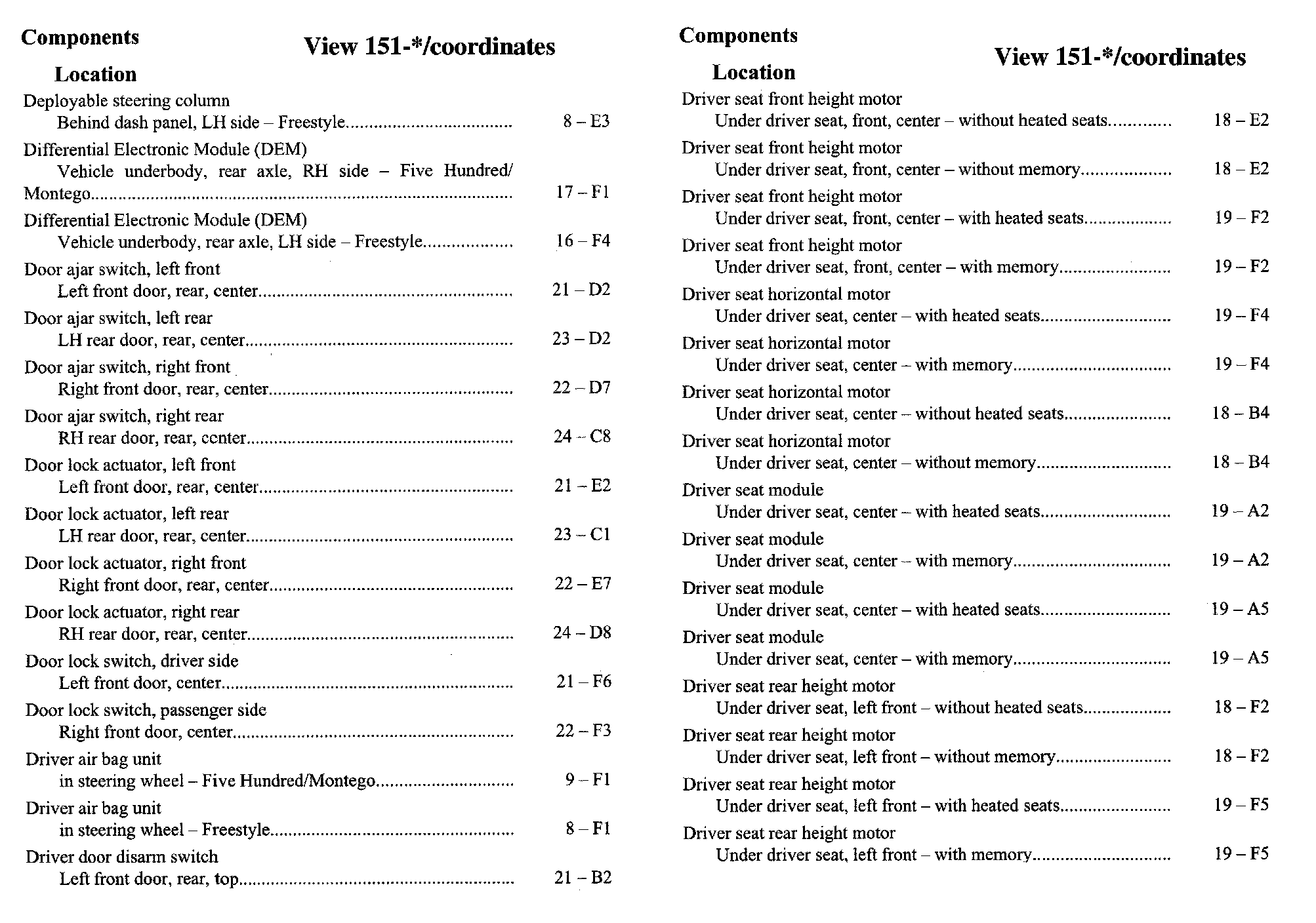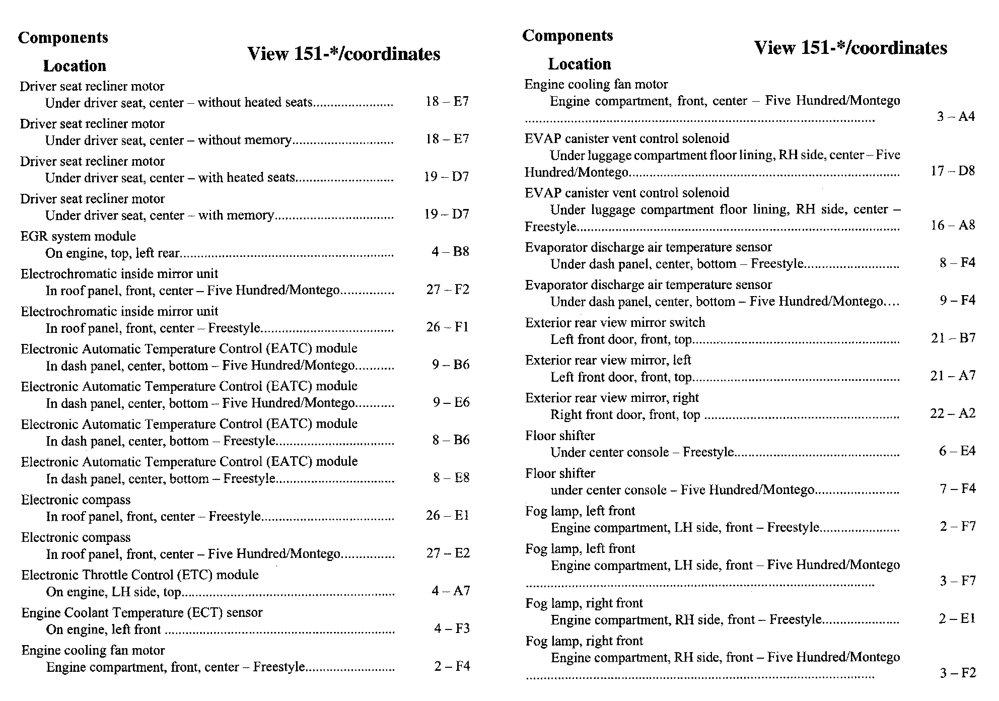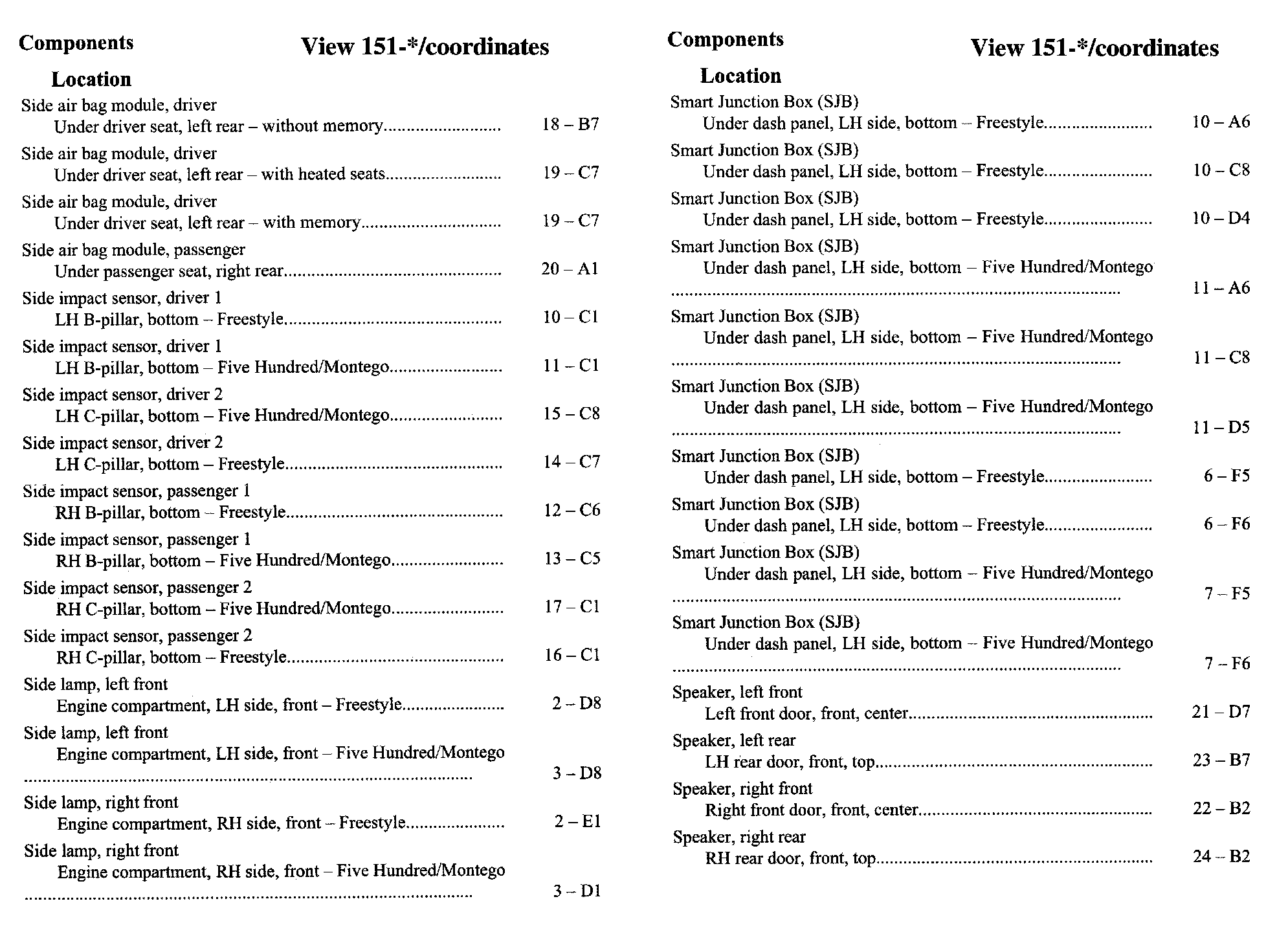 Component Location Index