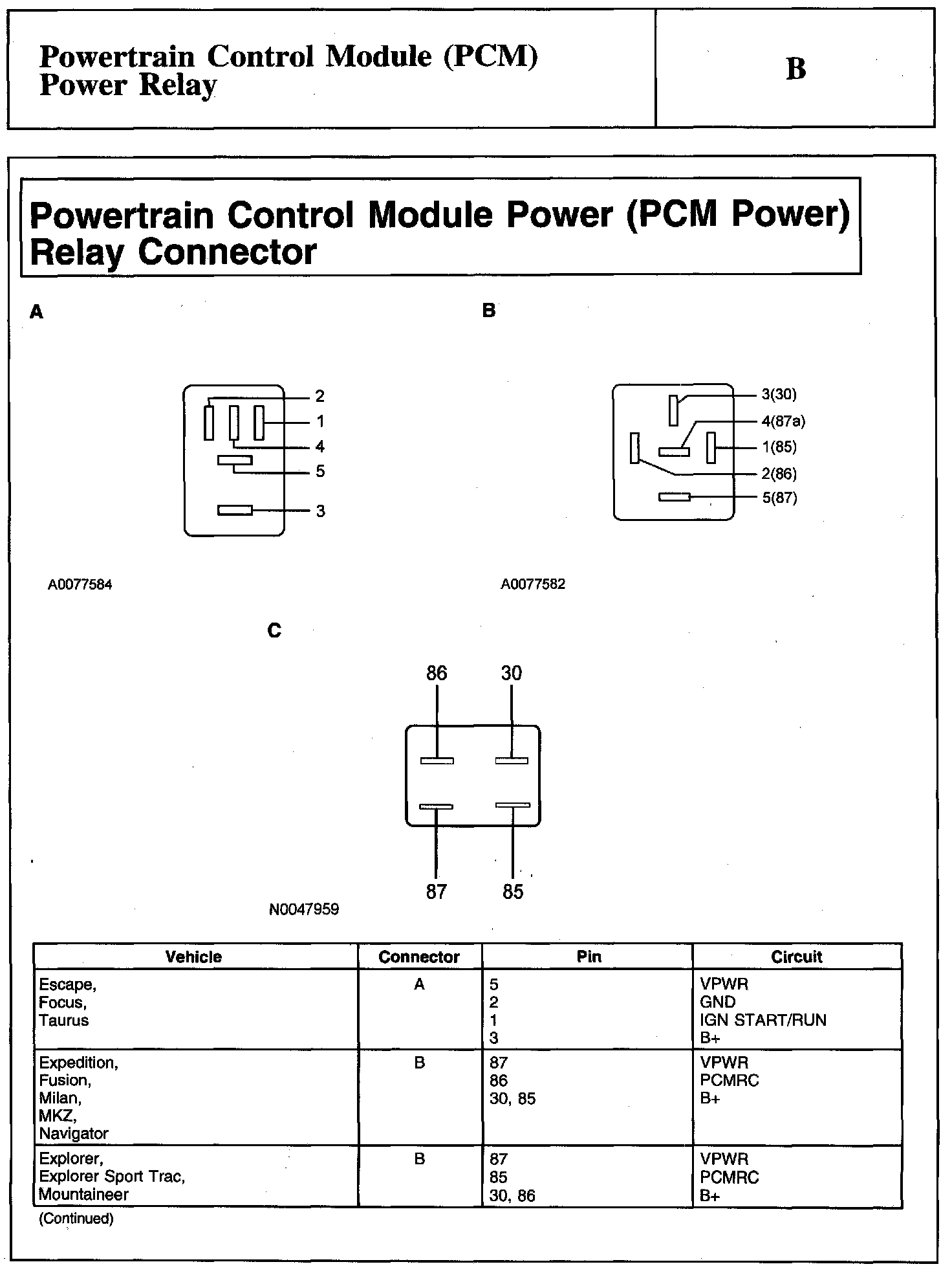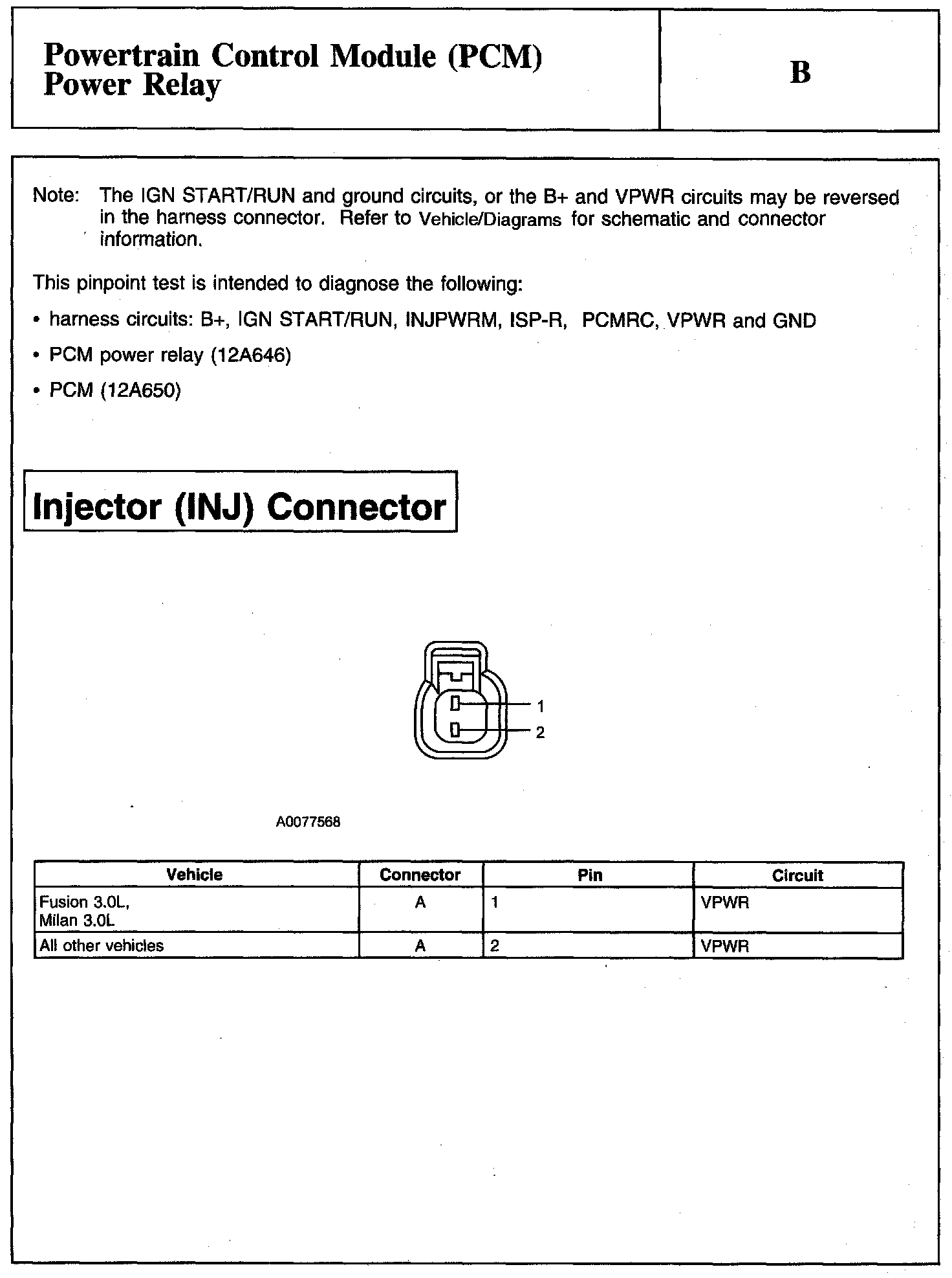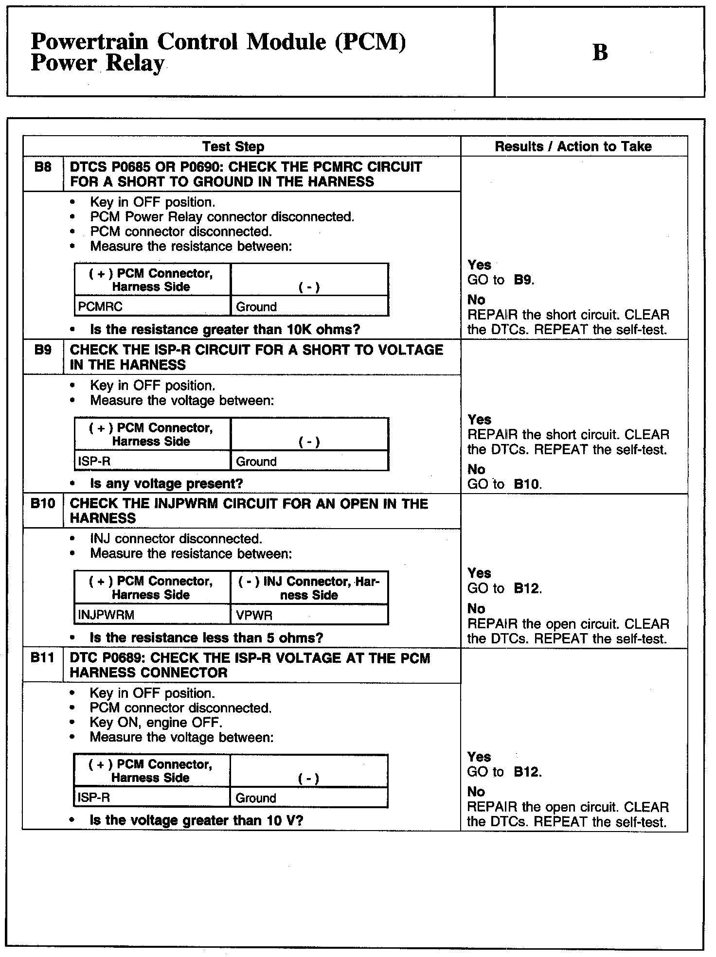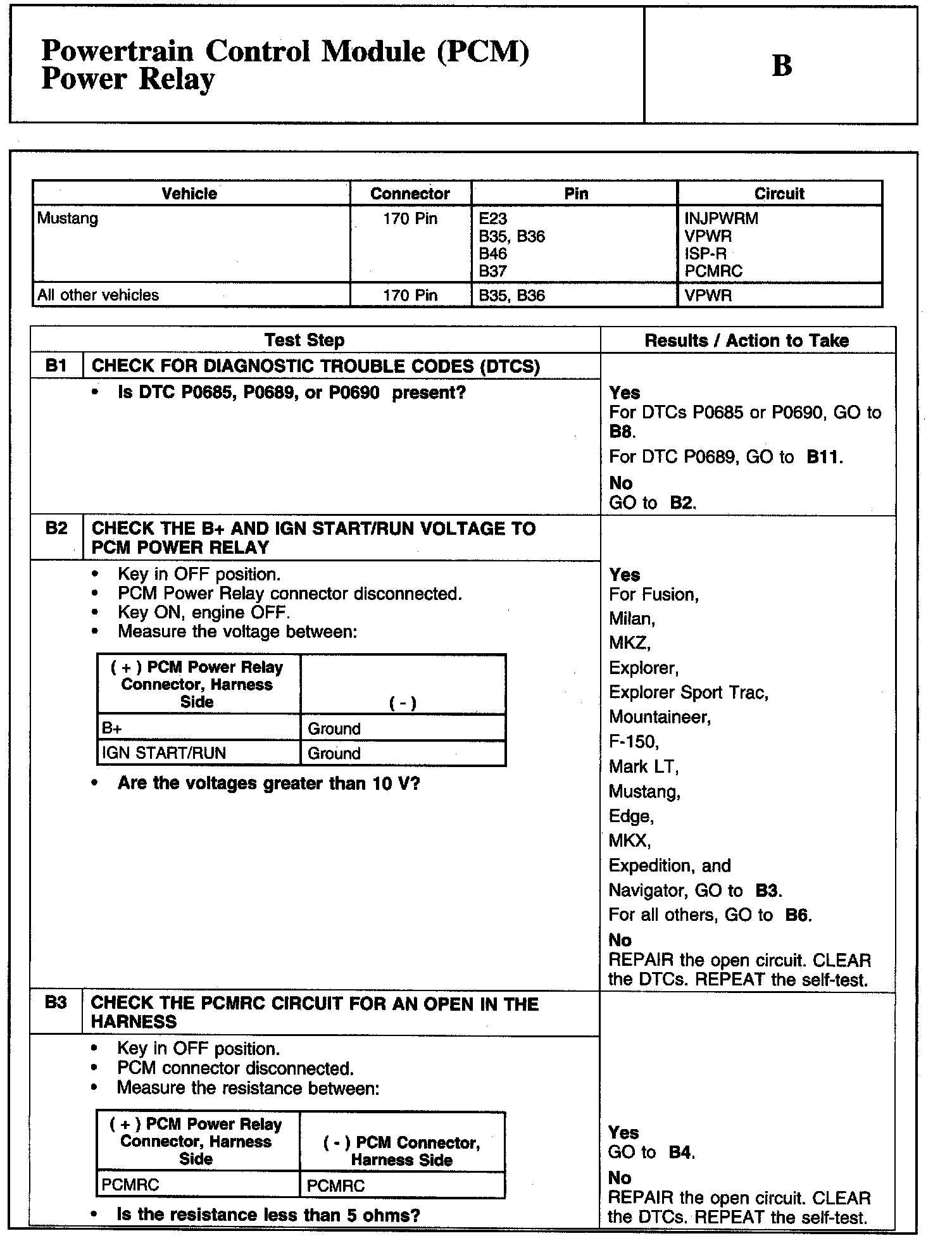Test B: Powertrain Control Module (PCM) Power Relay