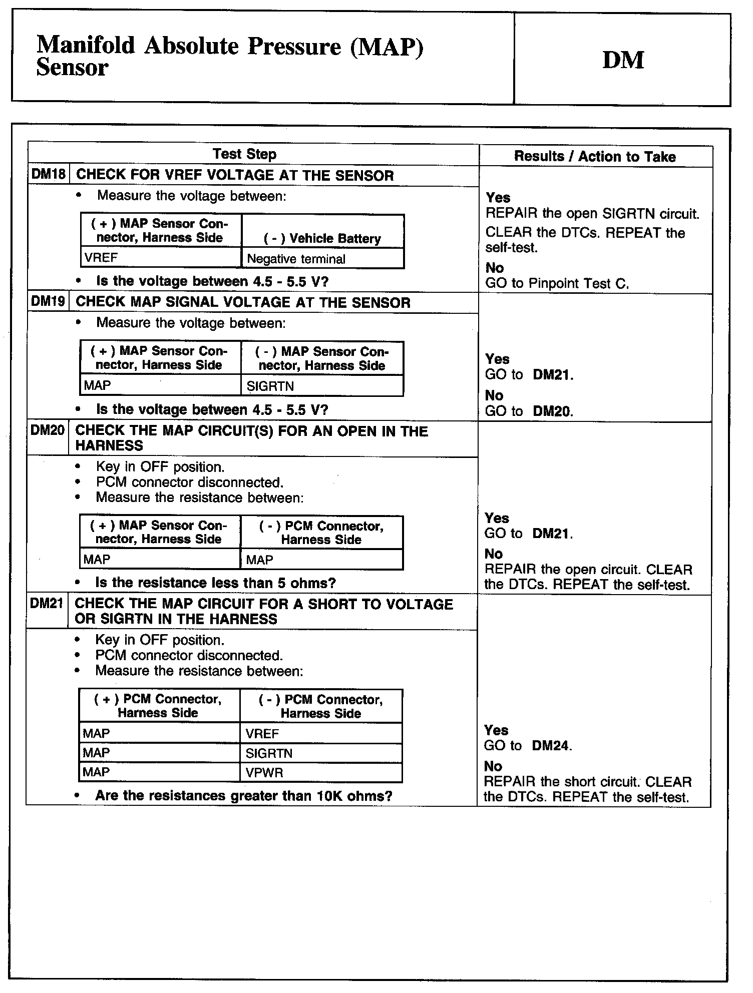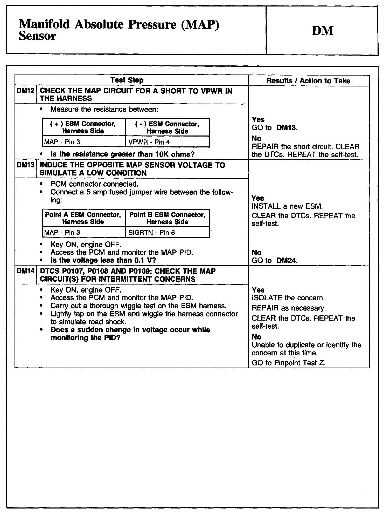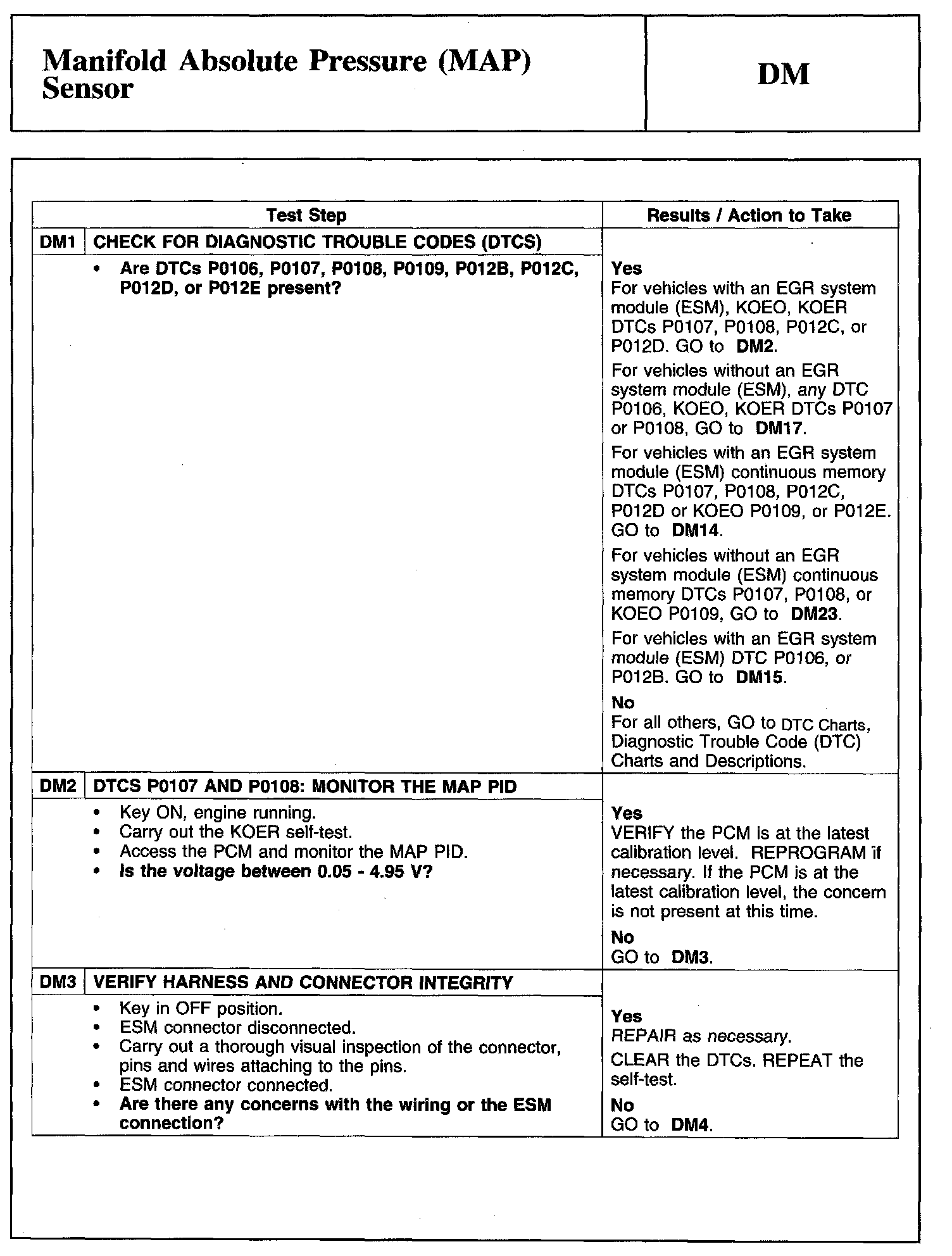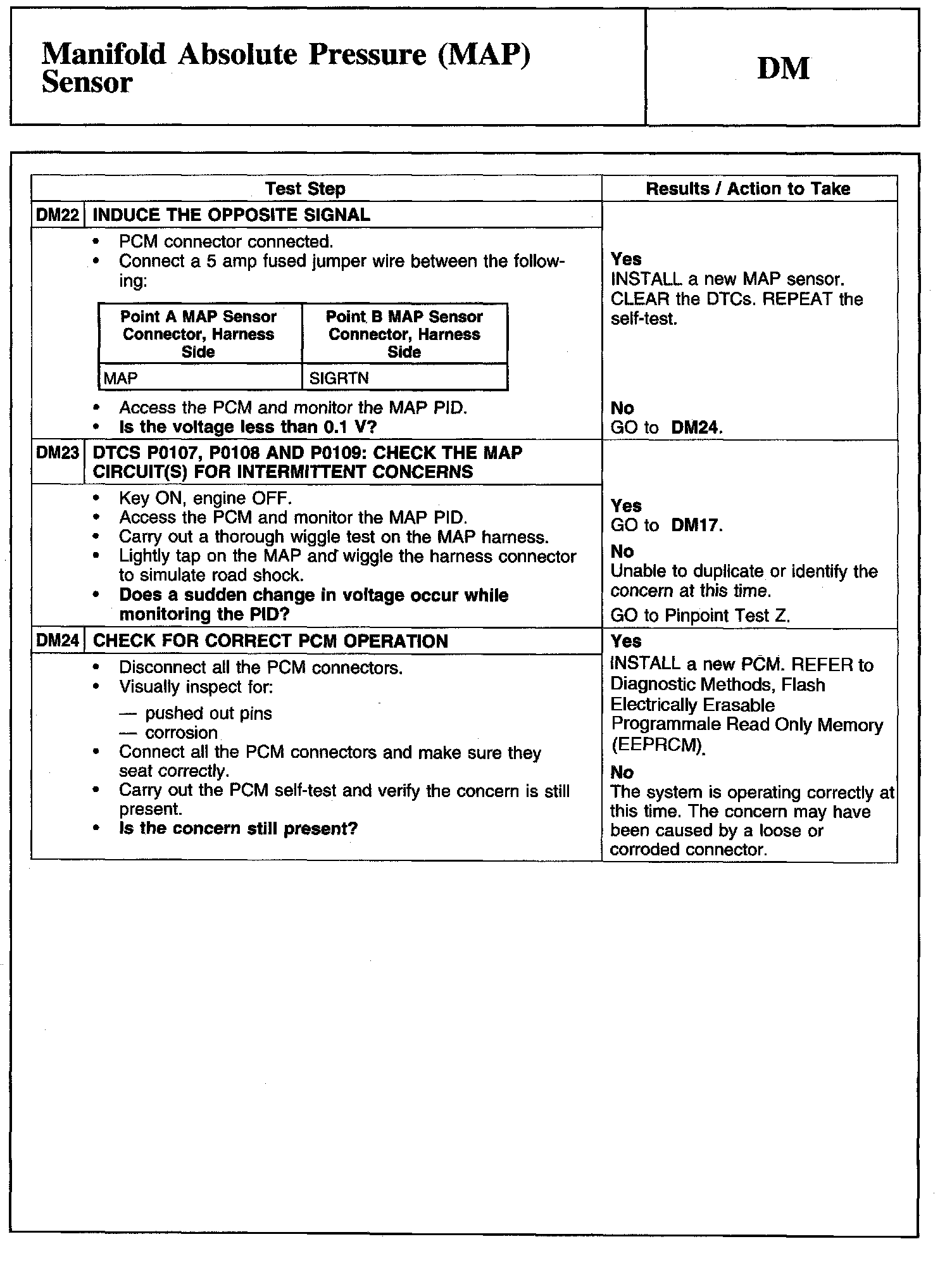 Tests DM: Manifold Absolute Pressure (MAP) Sensor