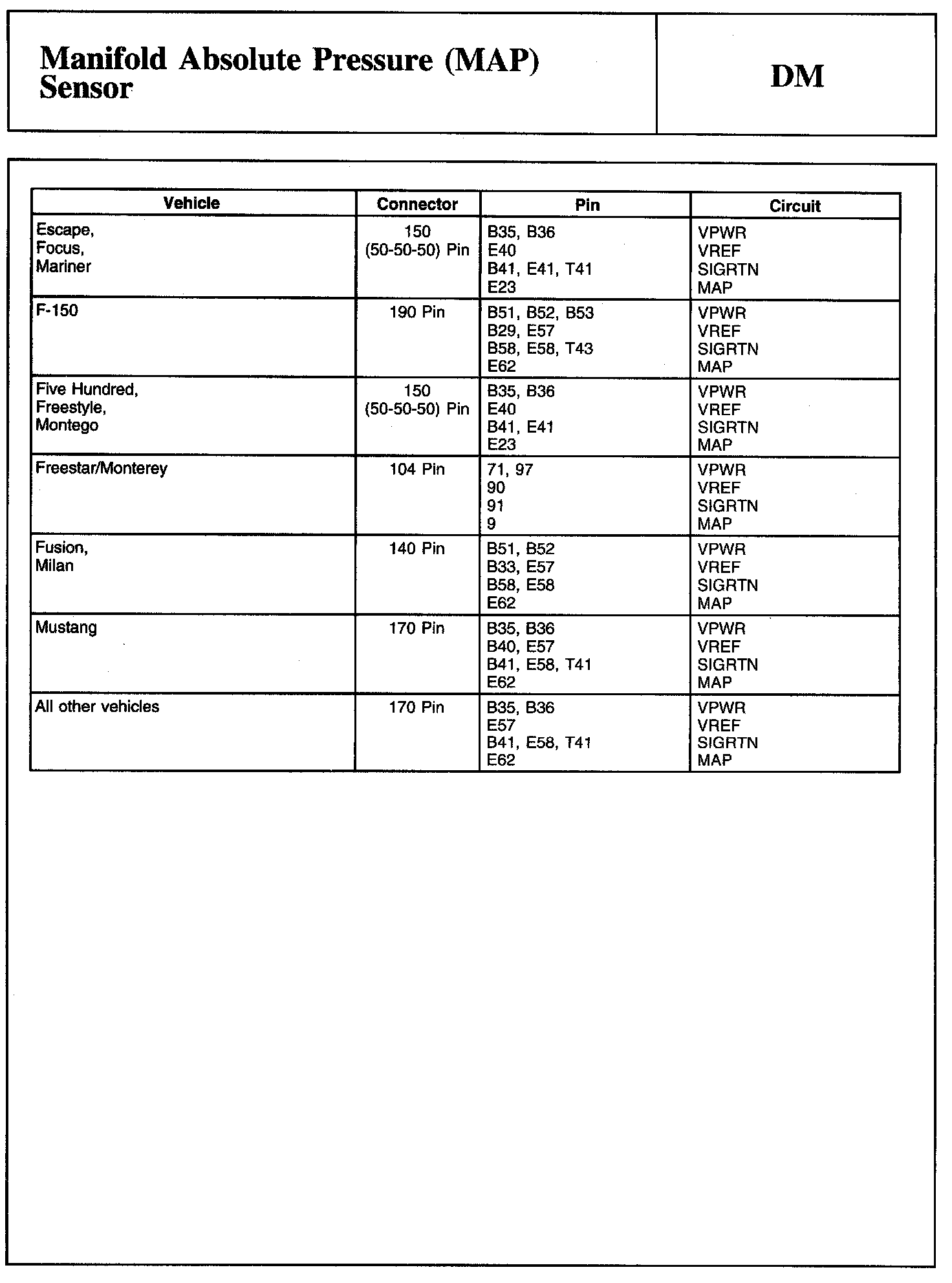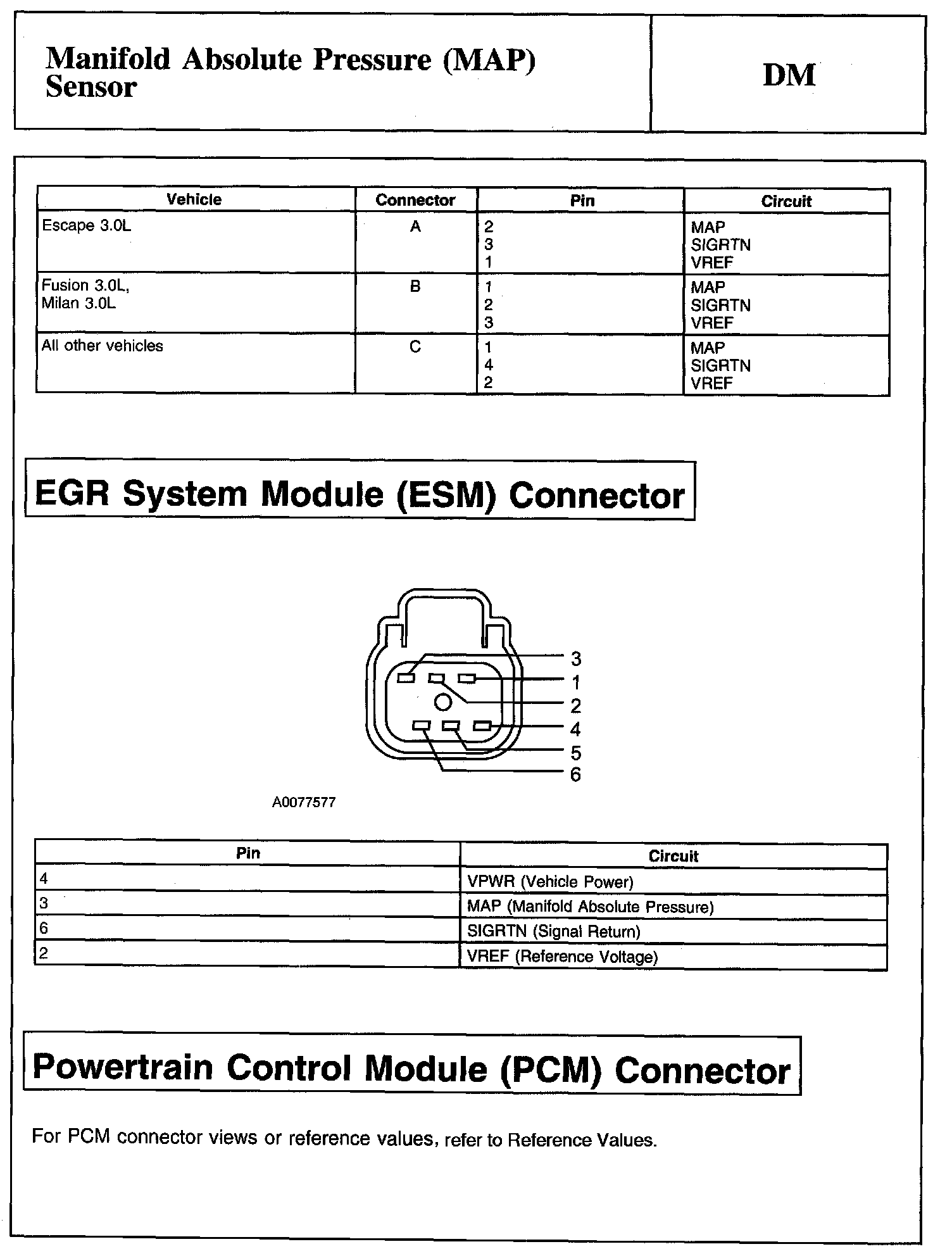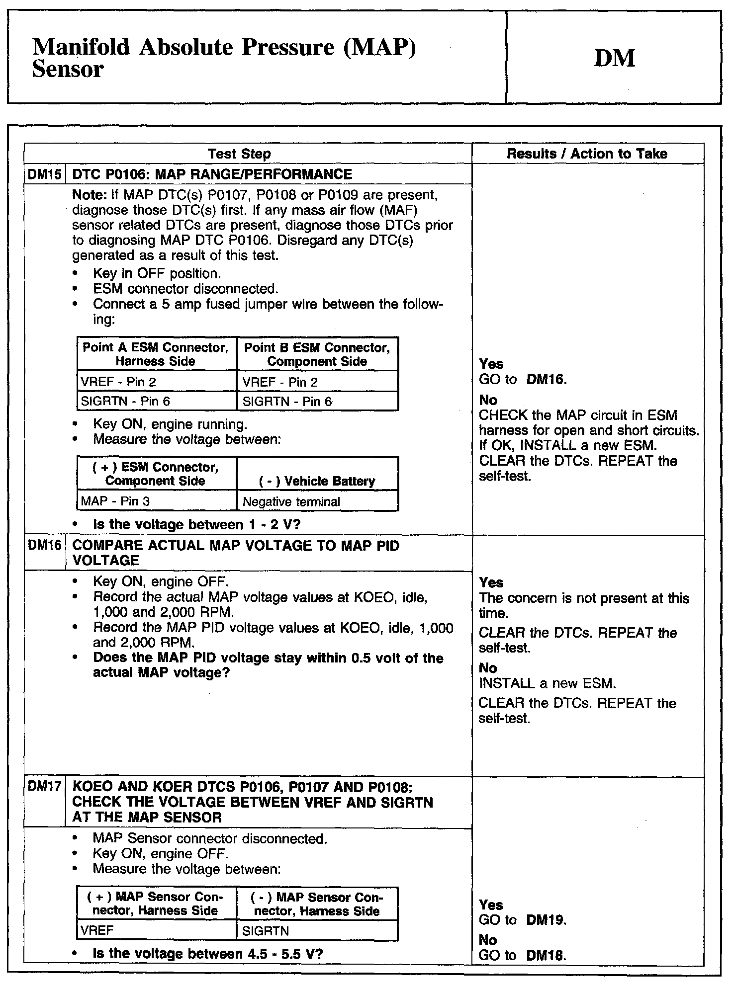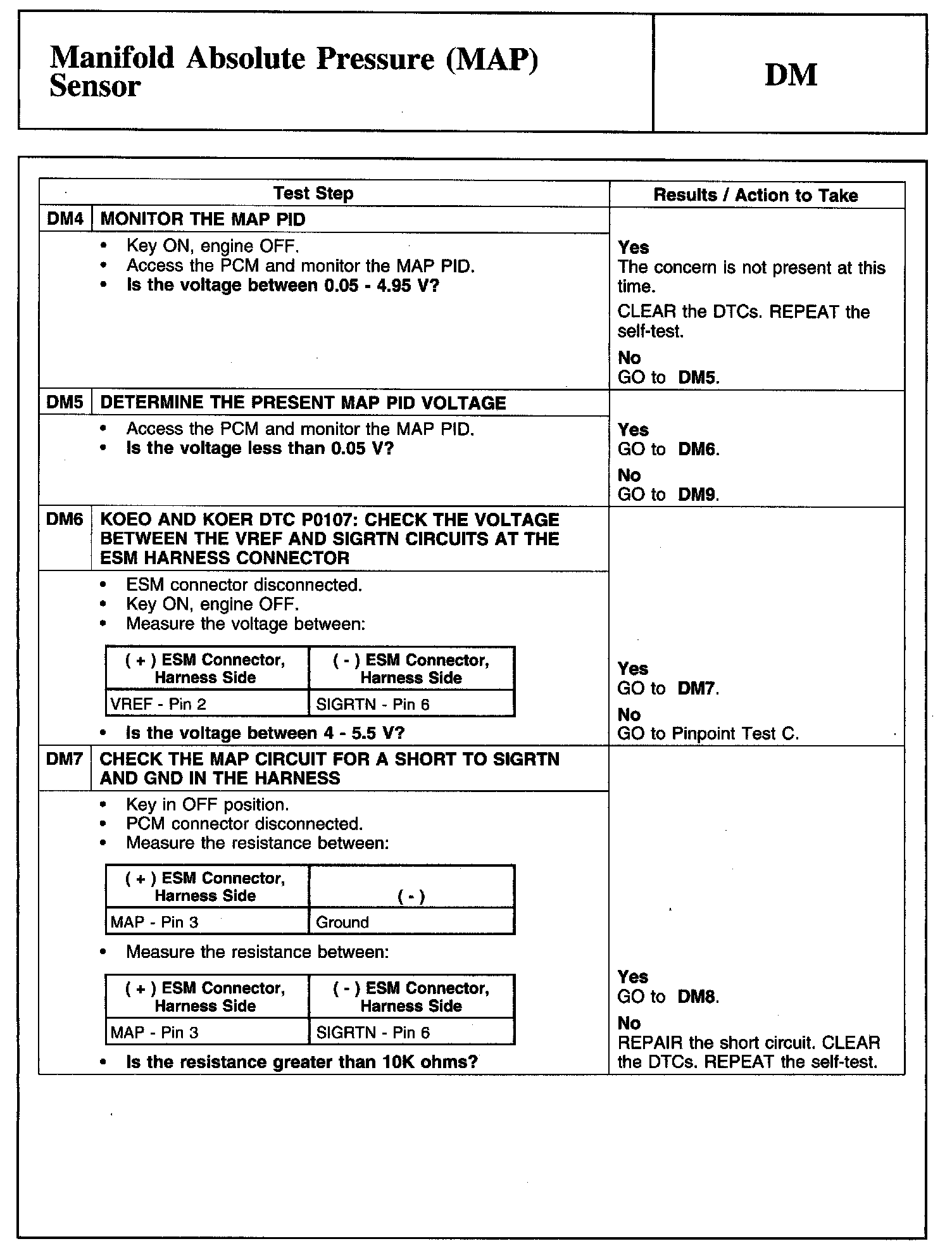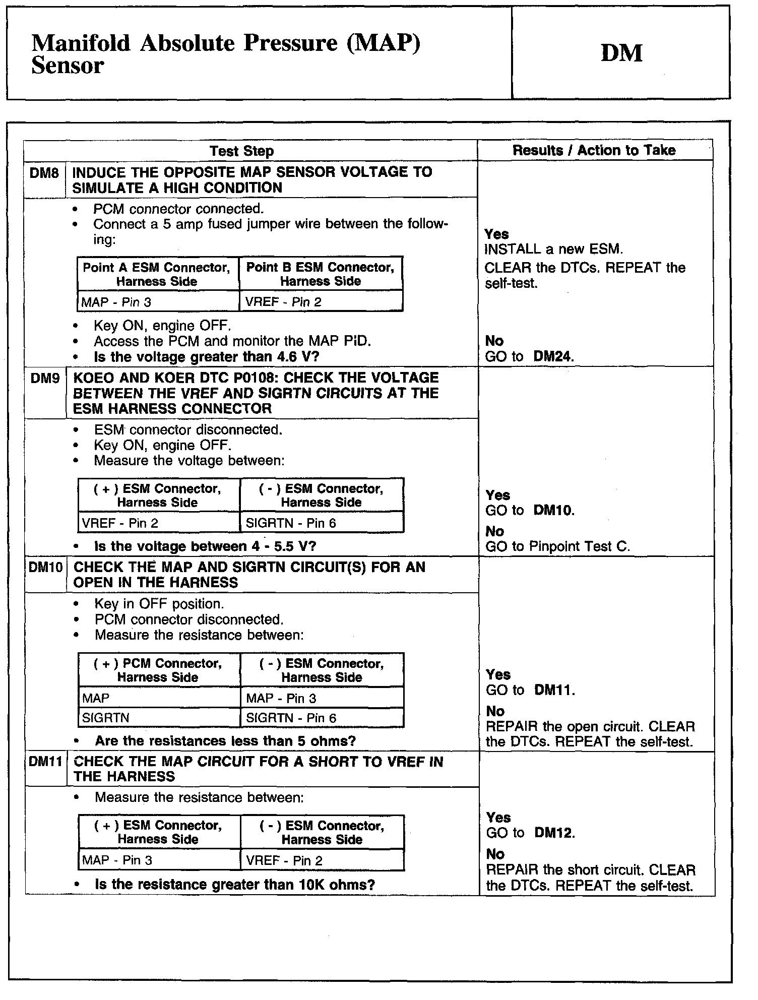 Tests DM: Manifold Absolute Pressure (MAP) Sensor