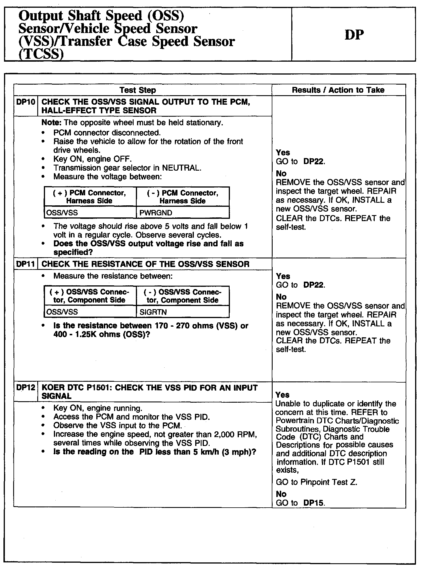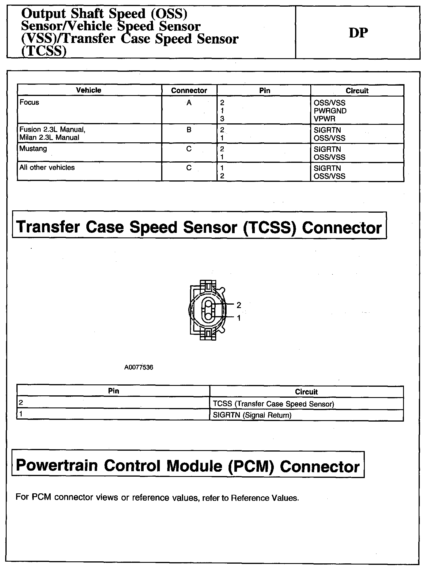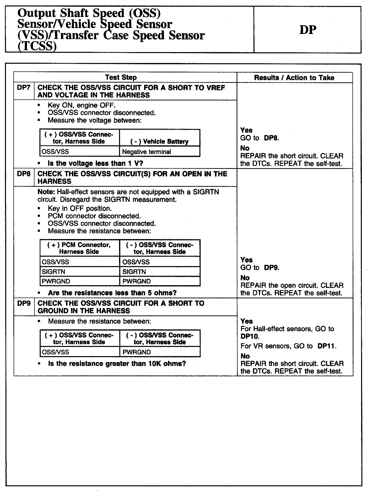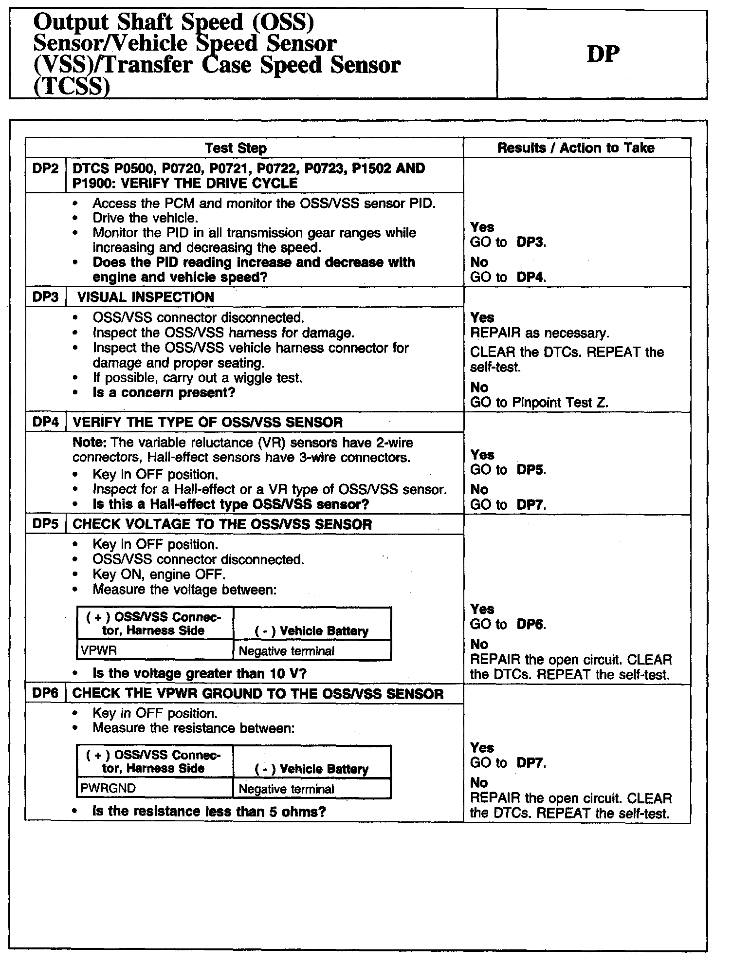 Tests DP: Output Shaft Speed (OSS) Sensor/Vehicle Speed Sensor (VSS)/Transfer Case Speed Sensor (TCSS)