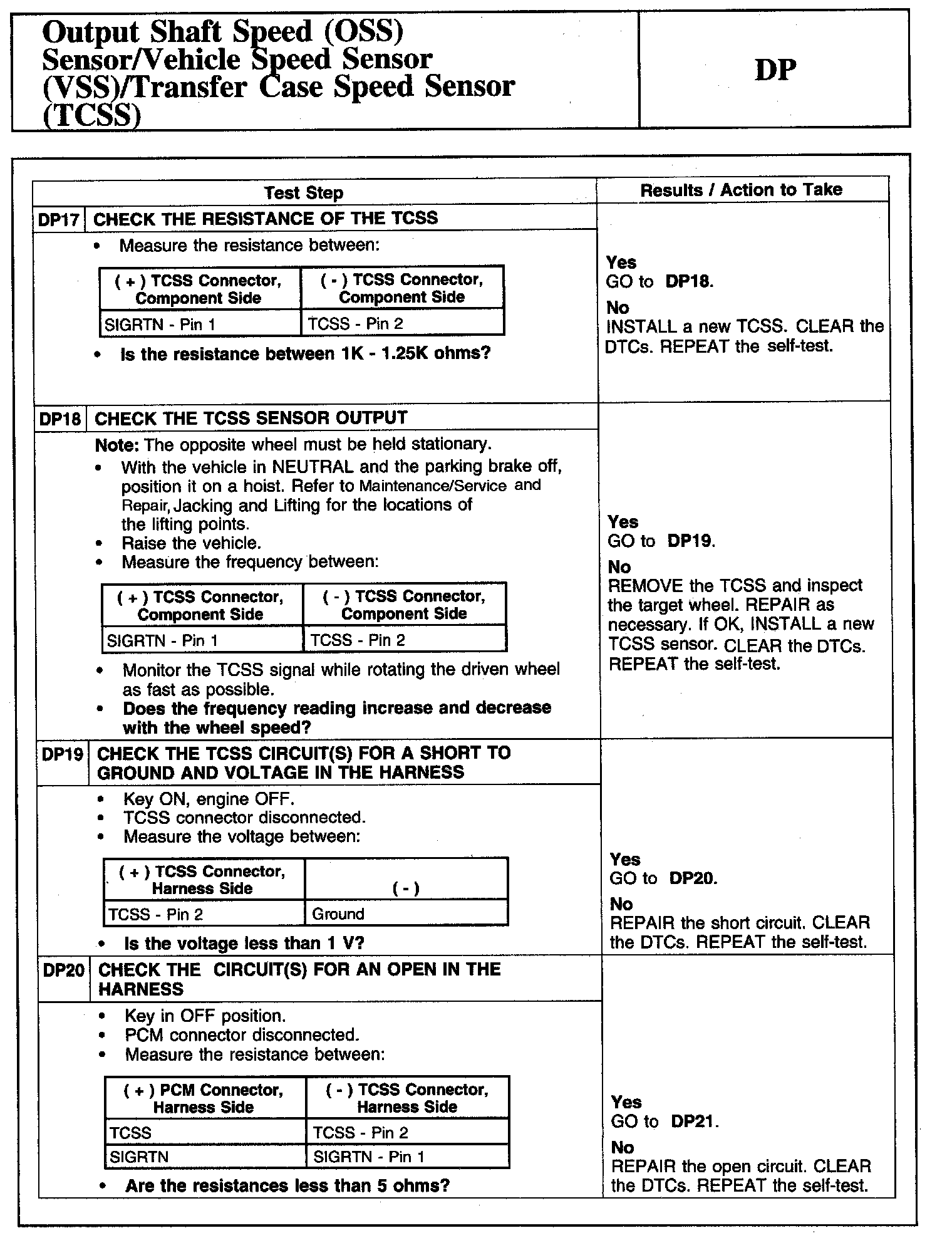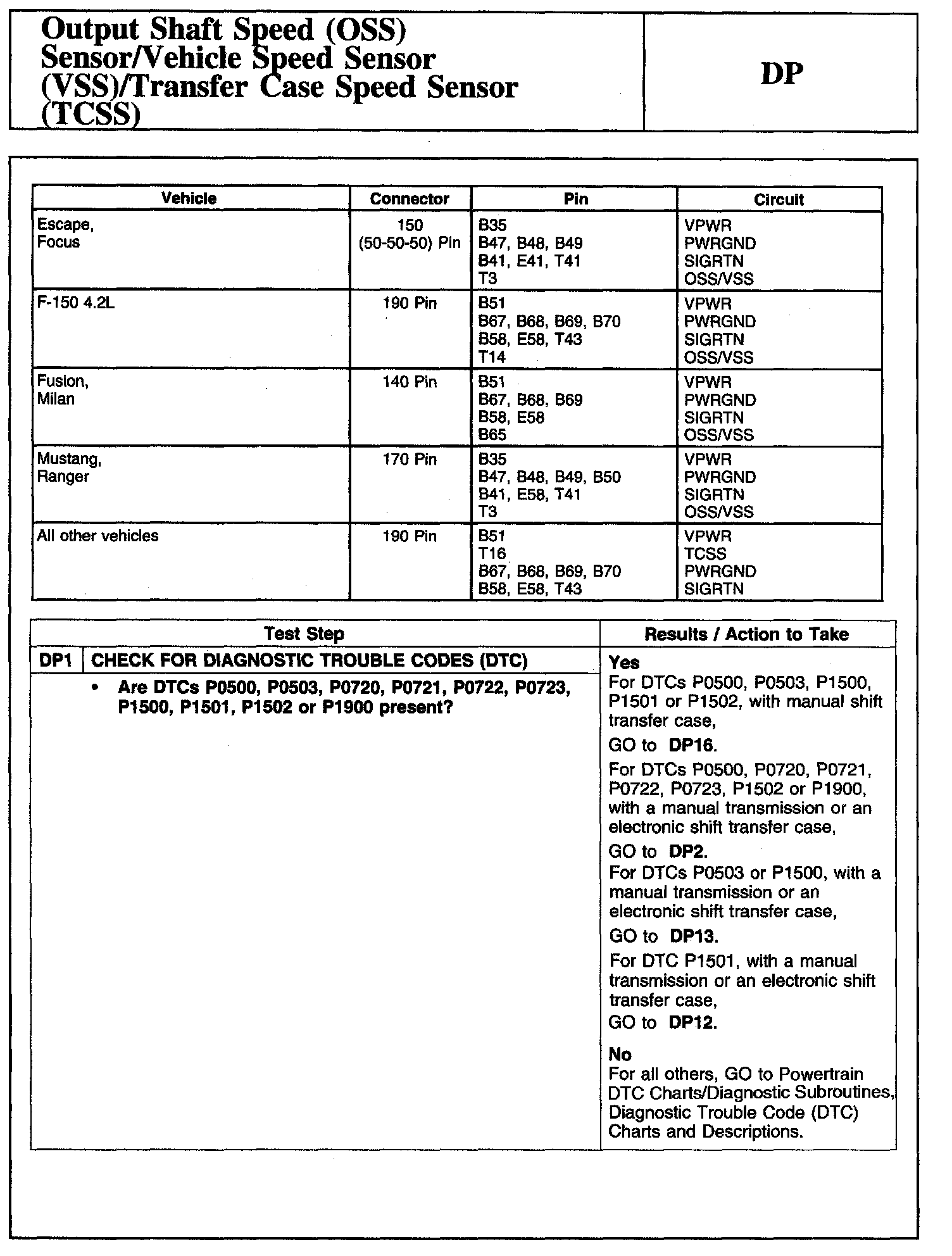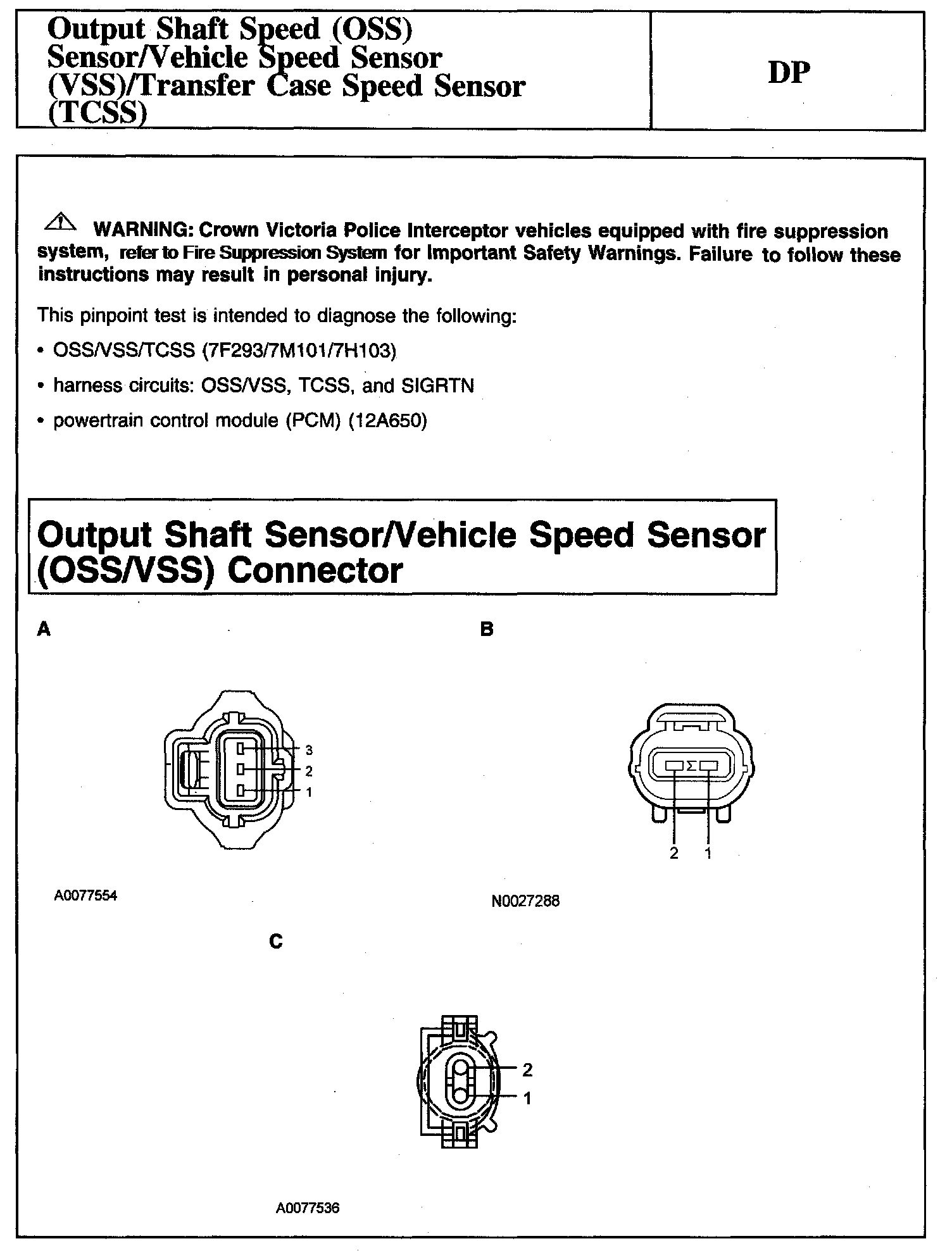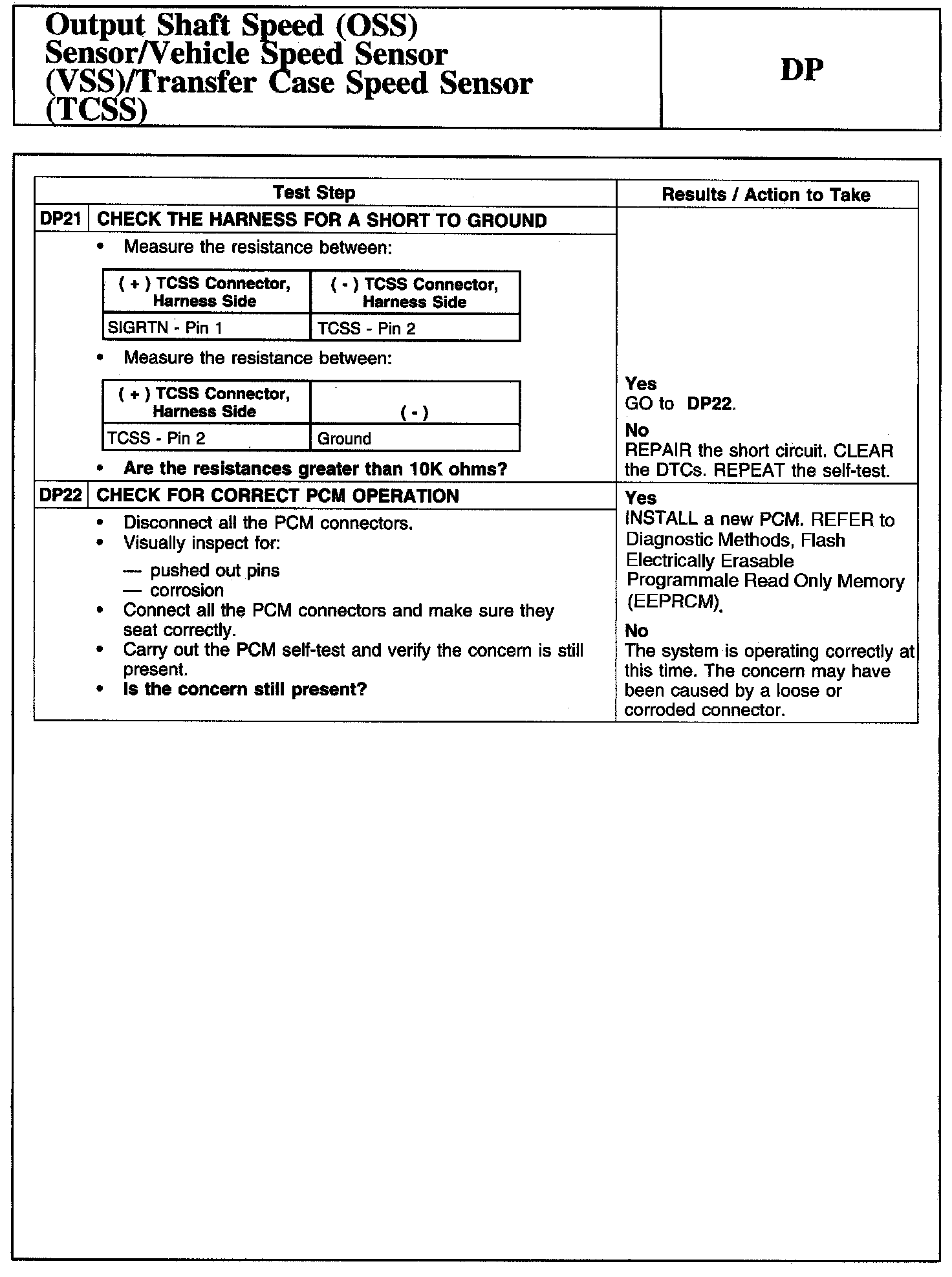 Tests DP: Output Shaft Speed (OSS) Sensor/Vehicle Speed Sensor (VSS)/Transfer Case Speed Sensor (TCSS)