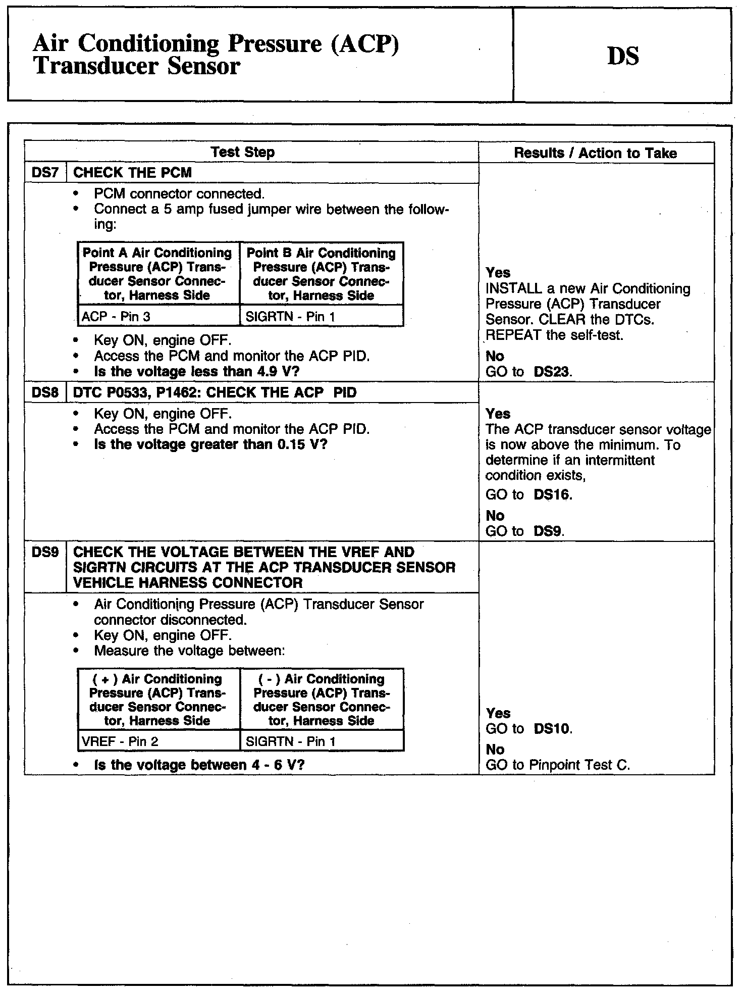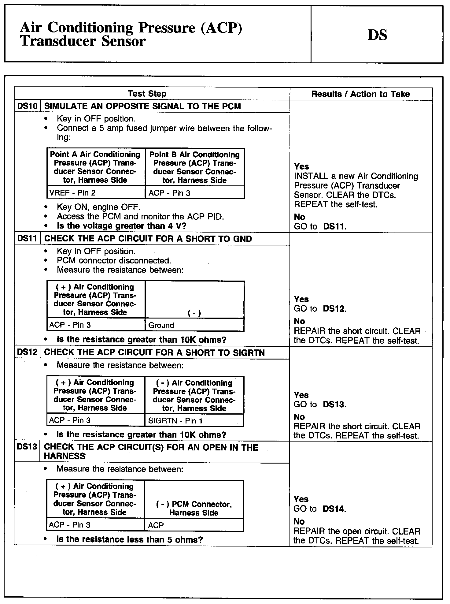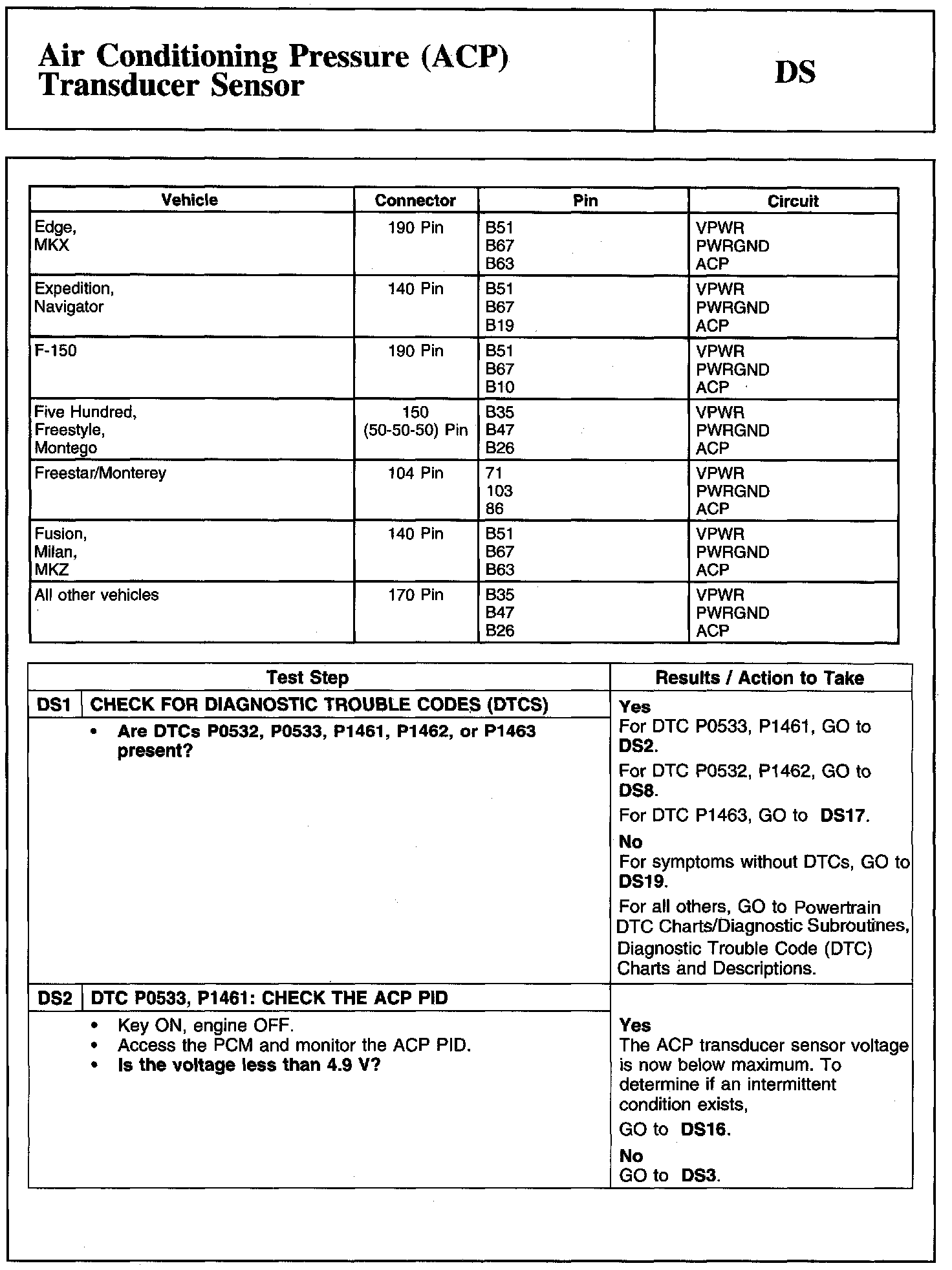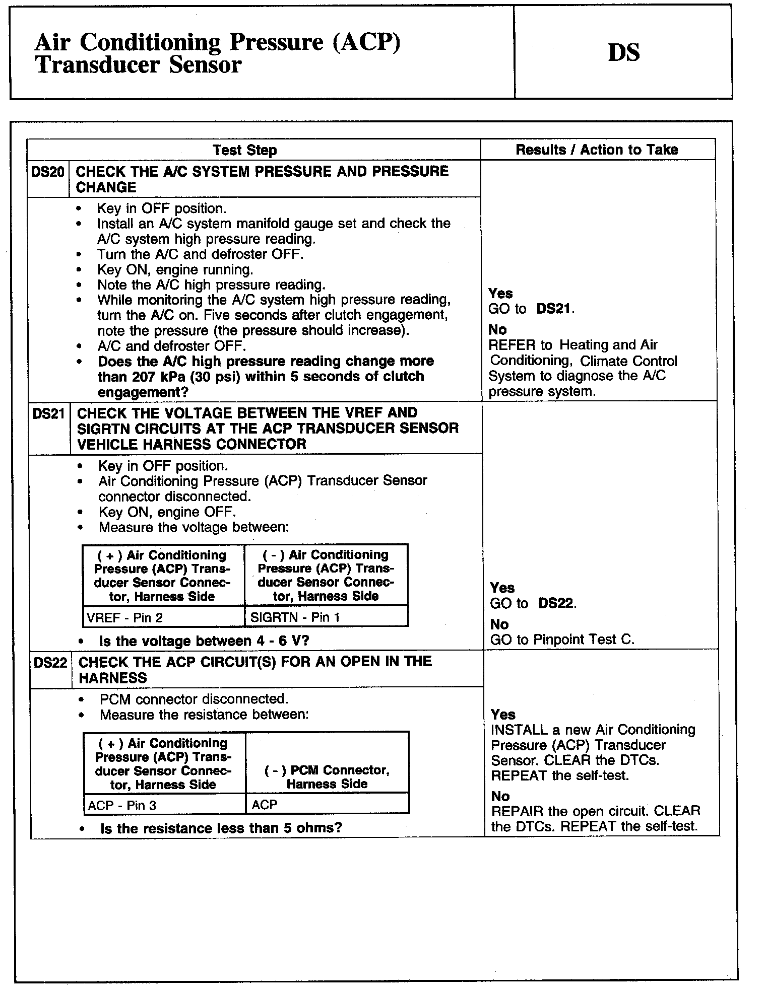 Tests DS: Air Conditioning Pressure (ACP) Transducer Sensor