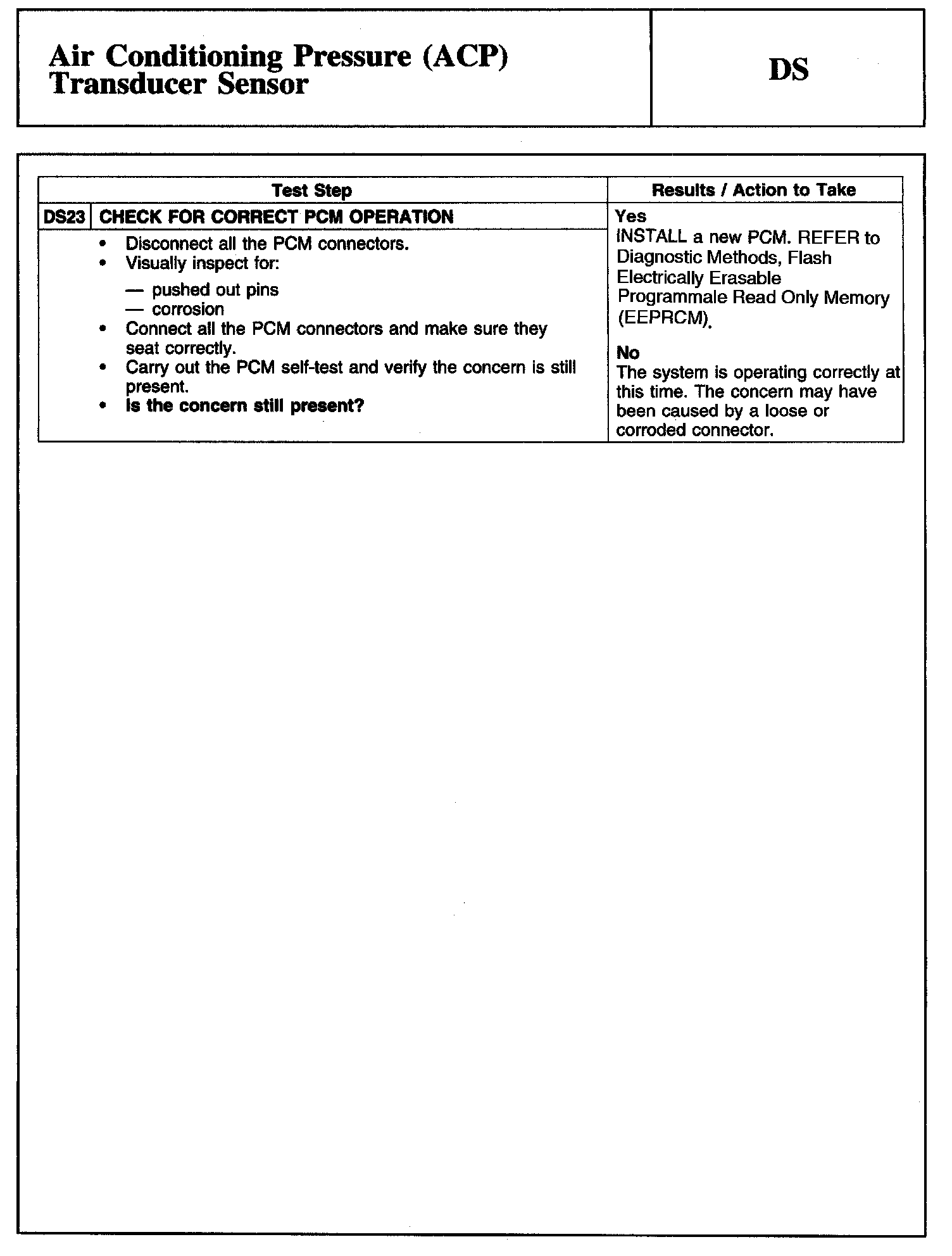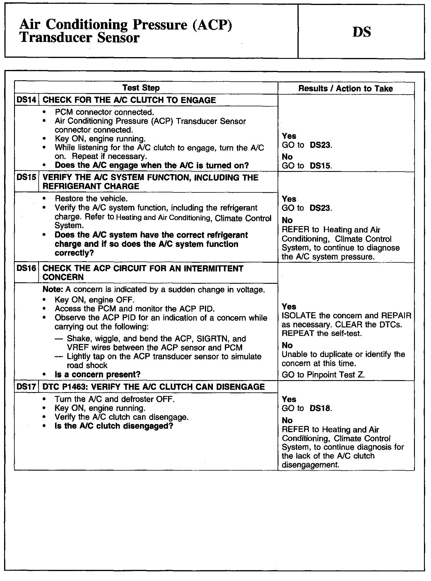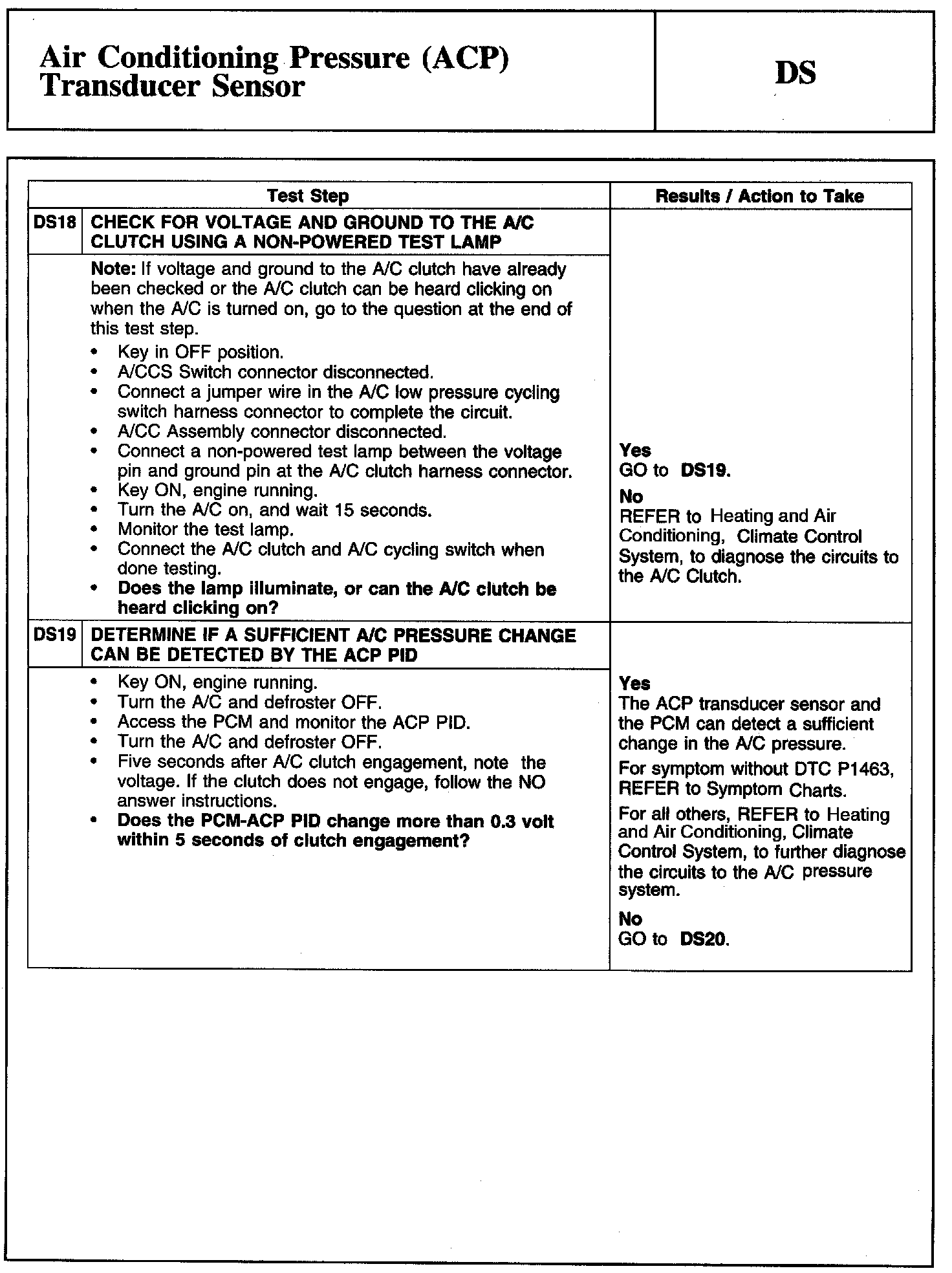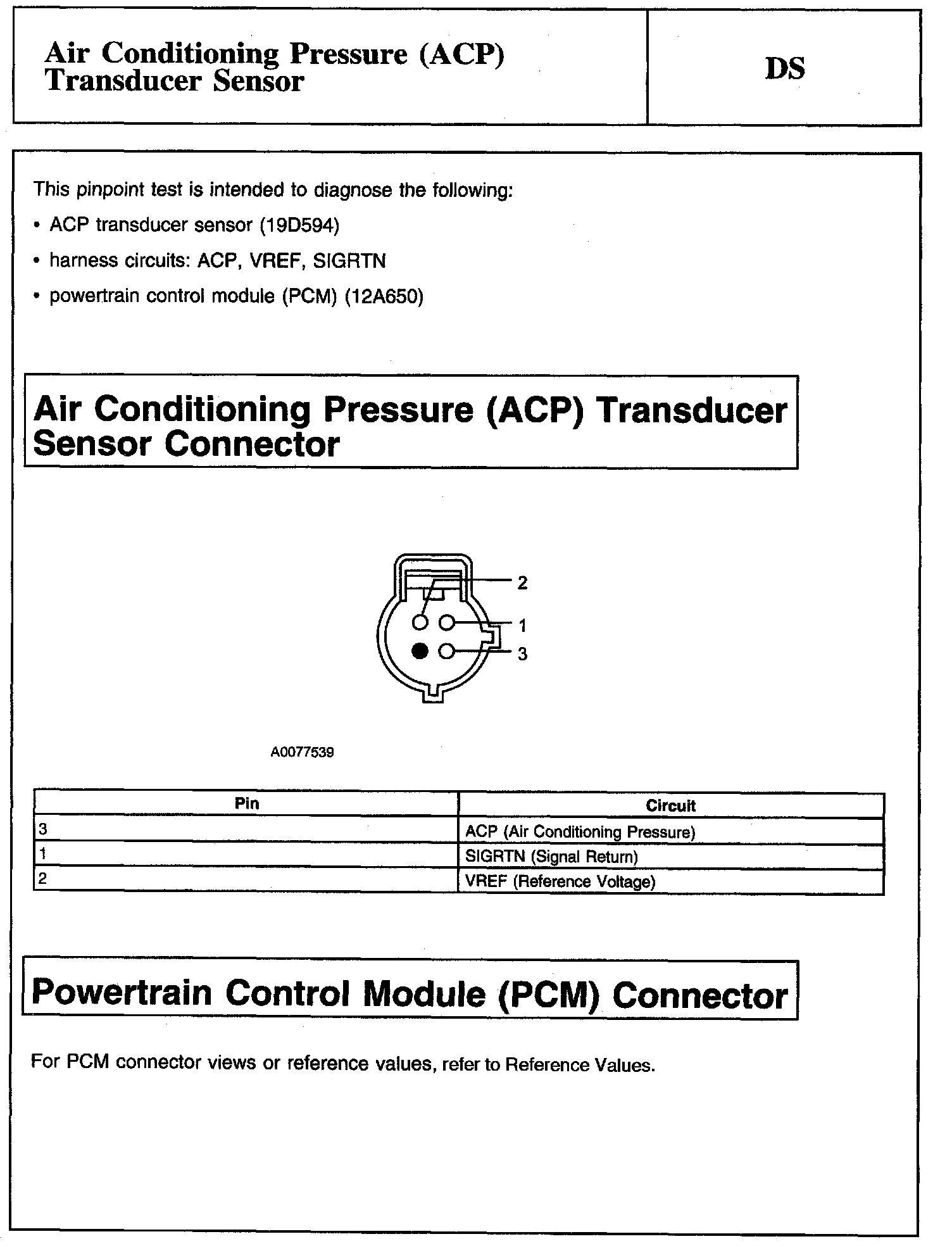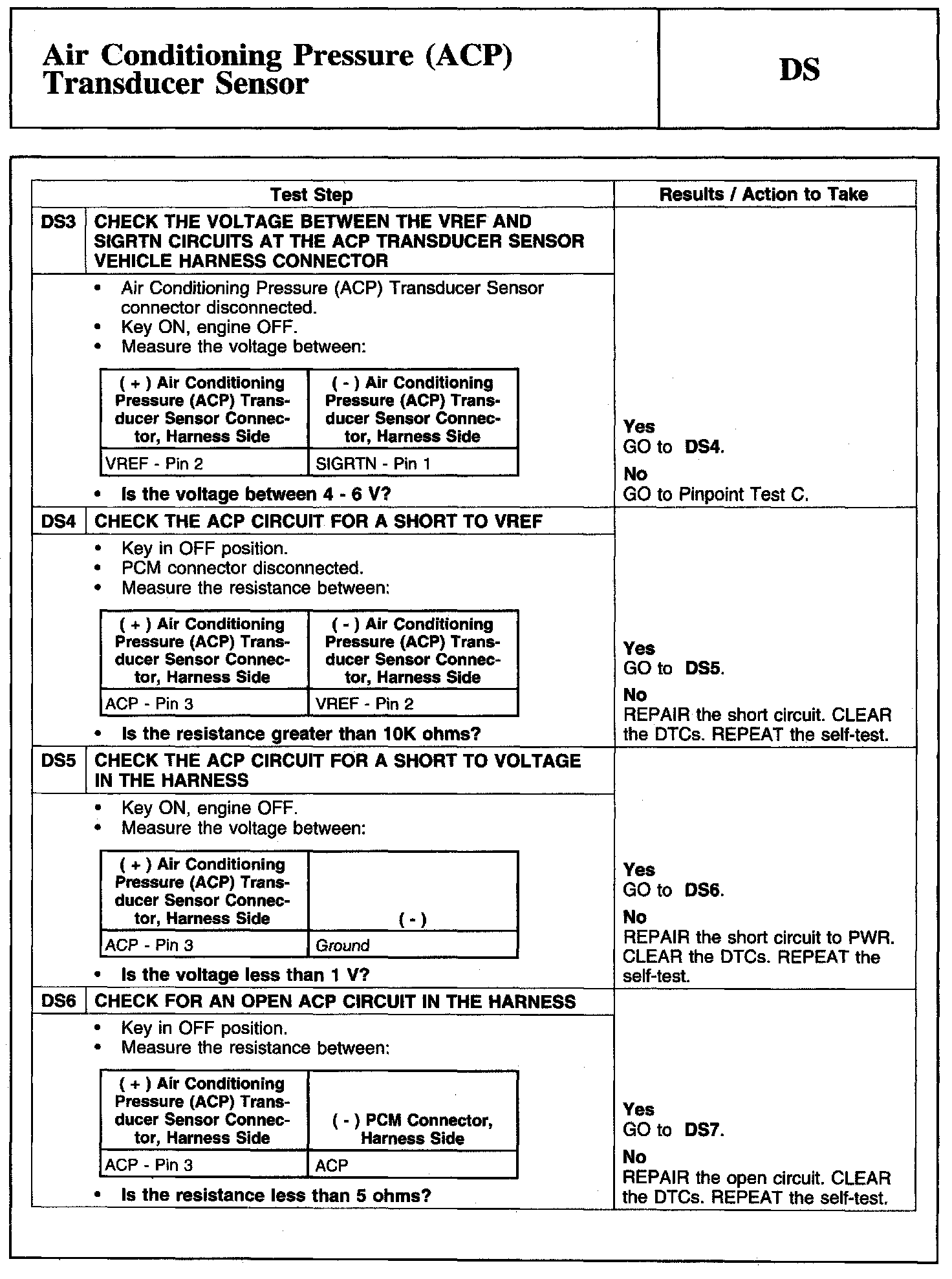 Tests DS: Air Conditioning Pressure (ACP) Transducer Sensor