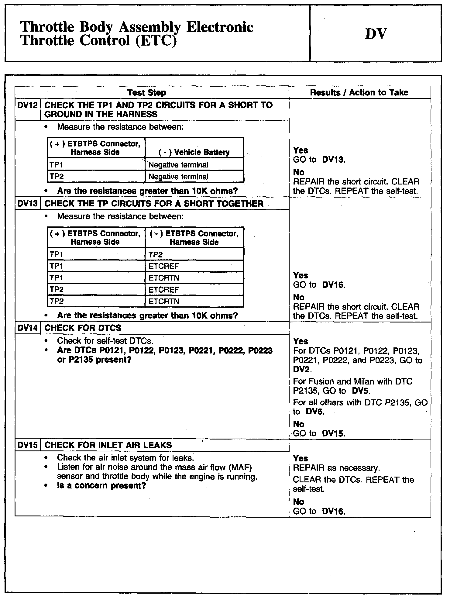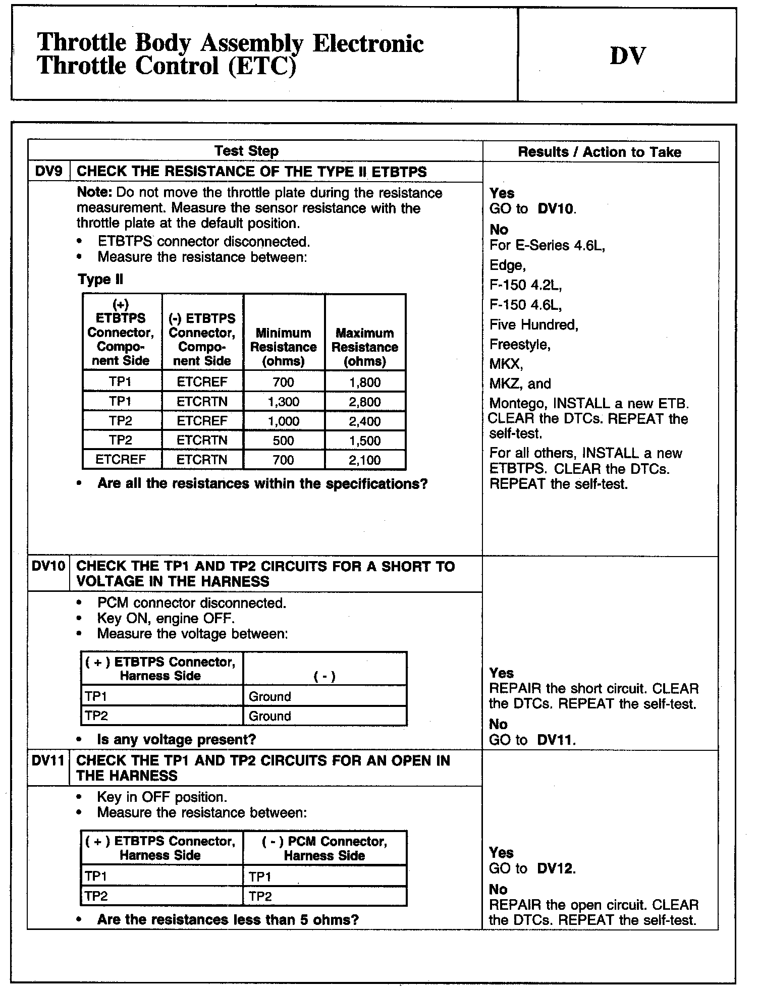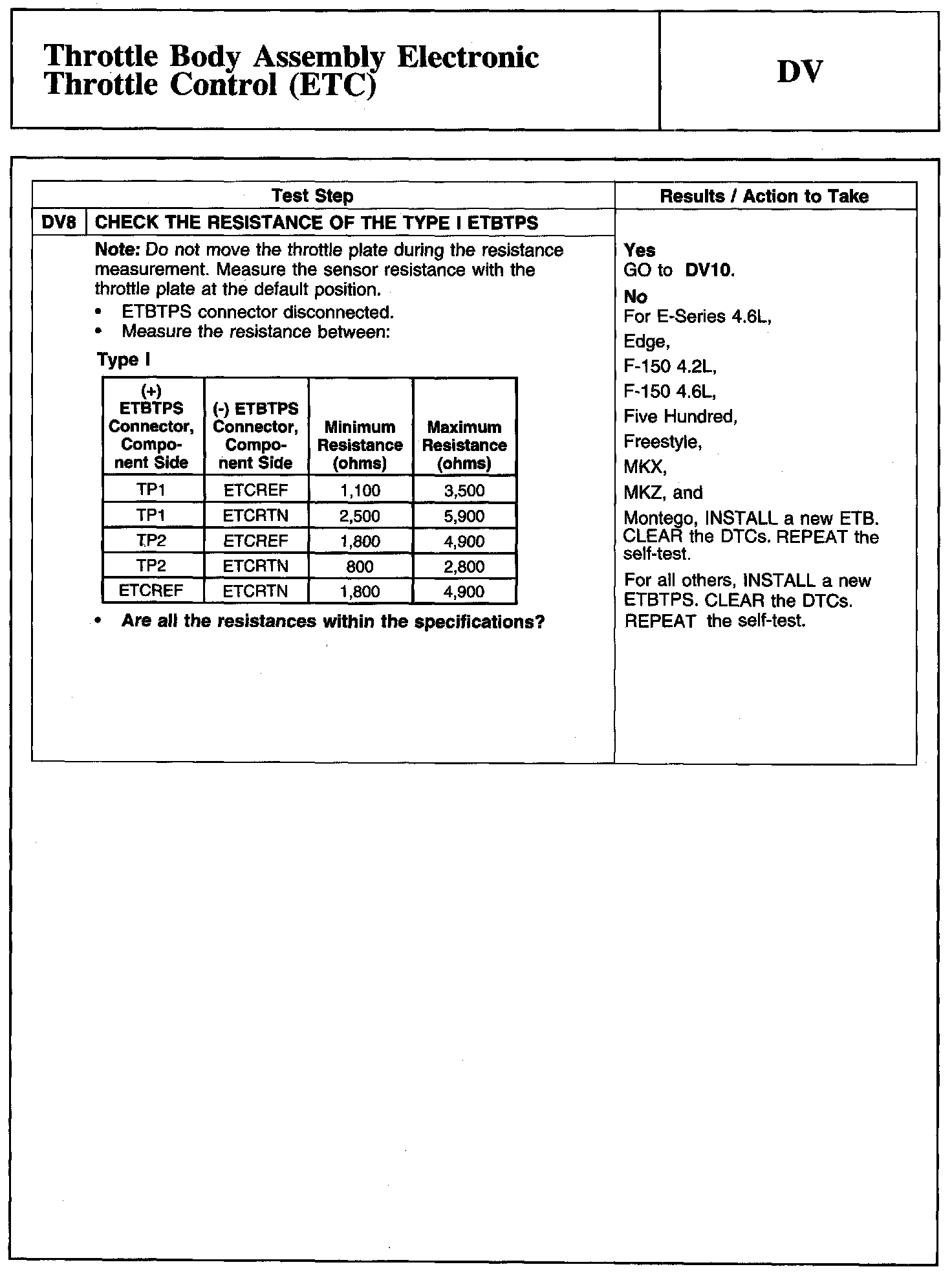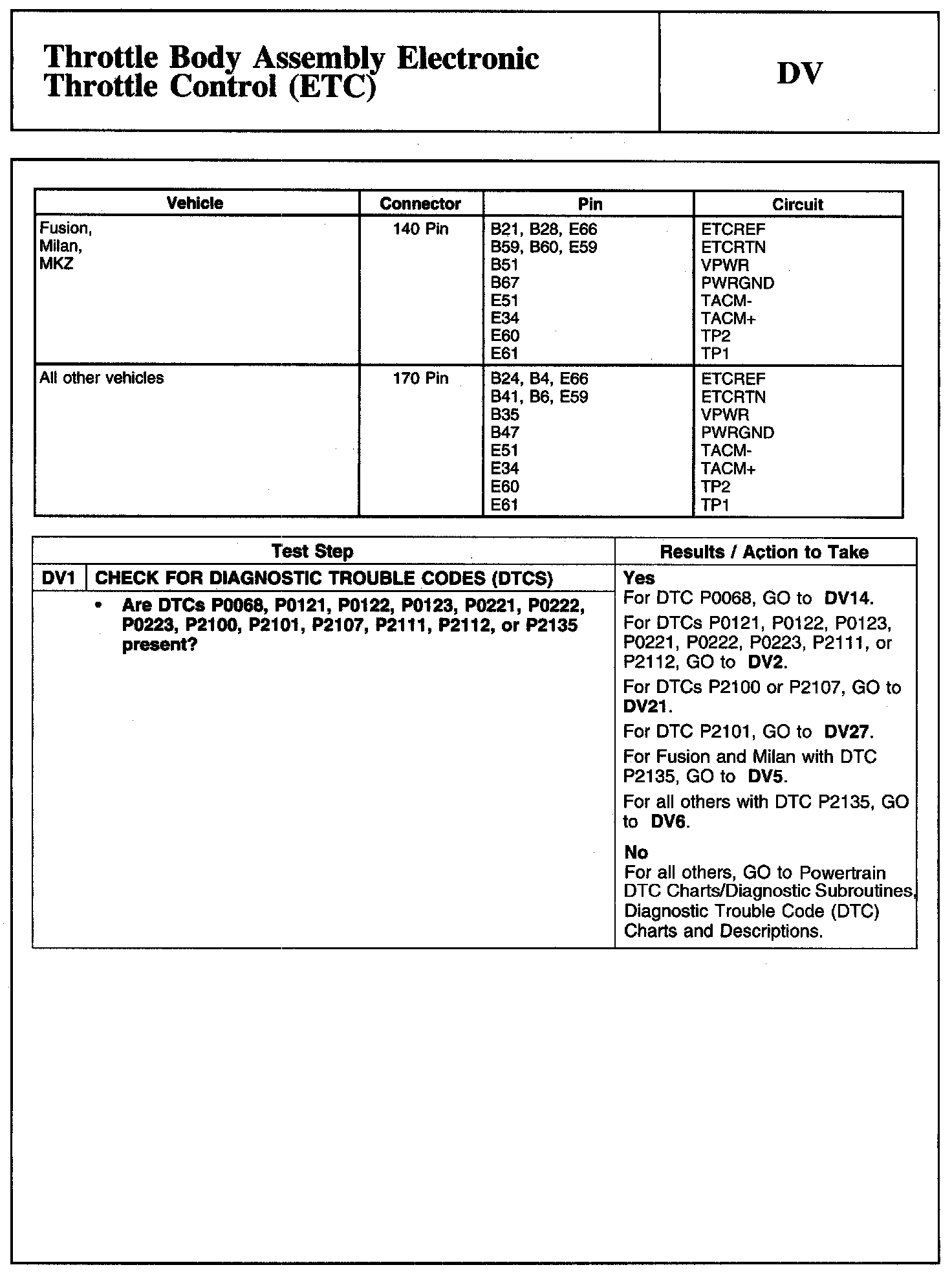 Tests DV: Throttle Body Assembly Electronic Throttle Control (ETC)