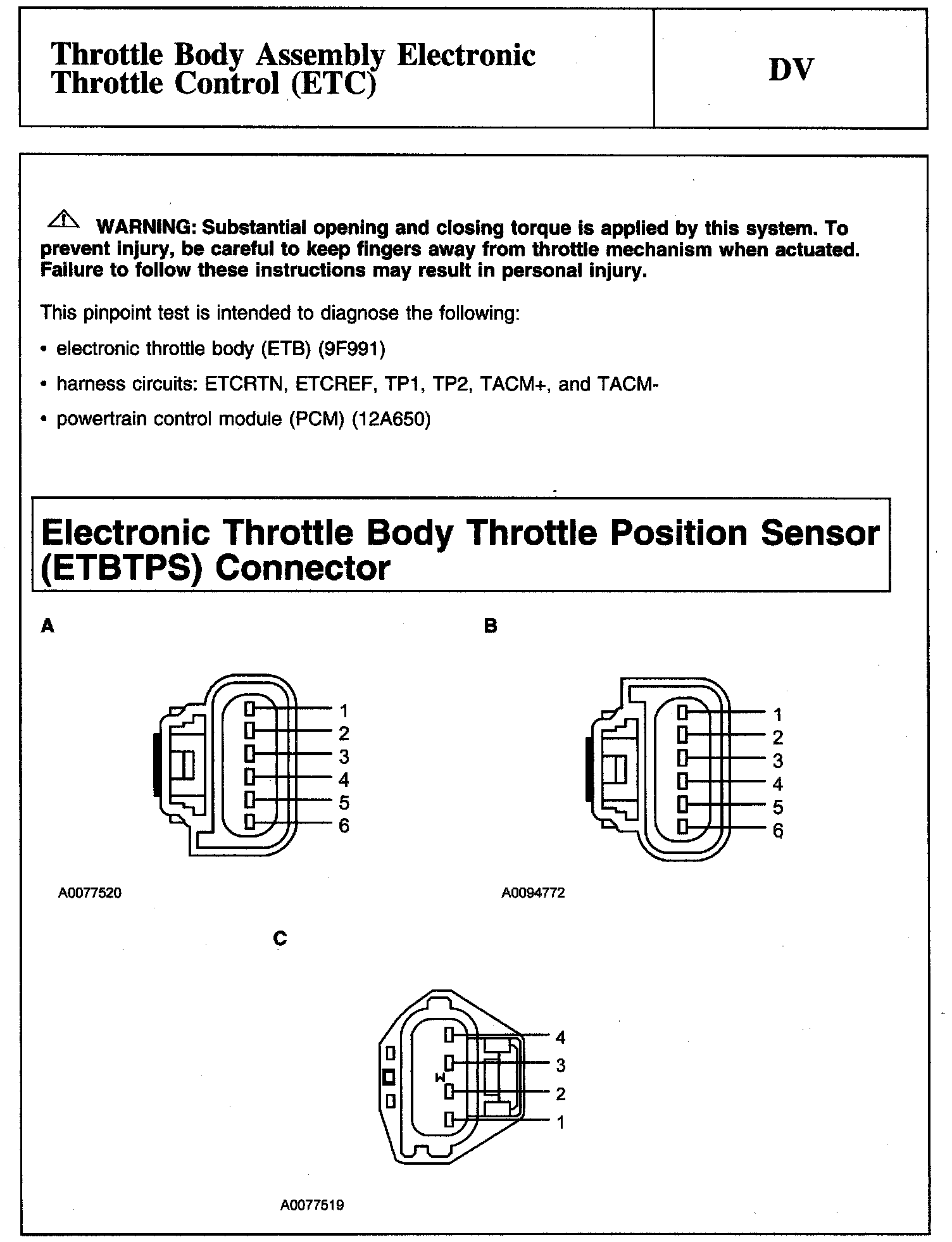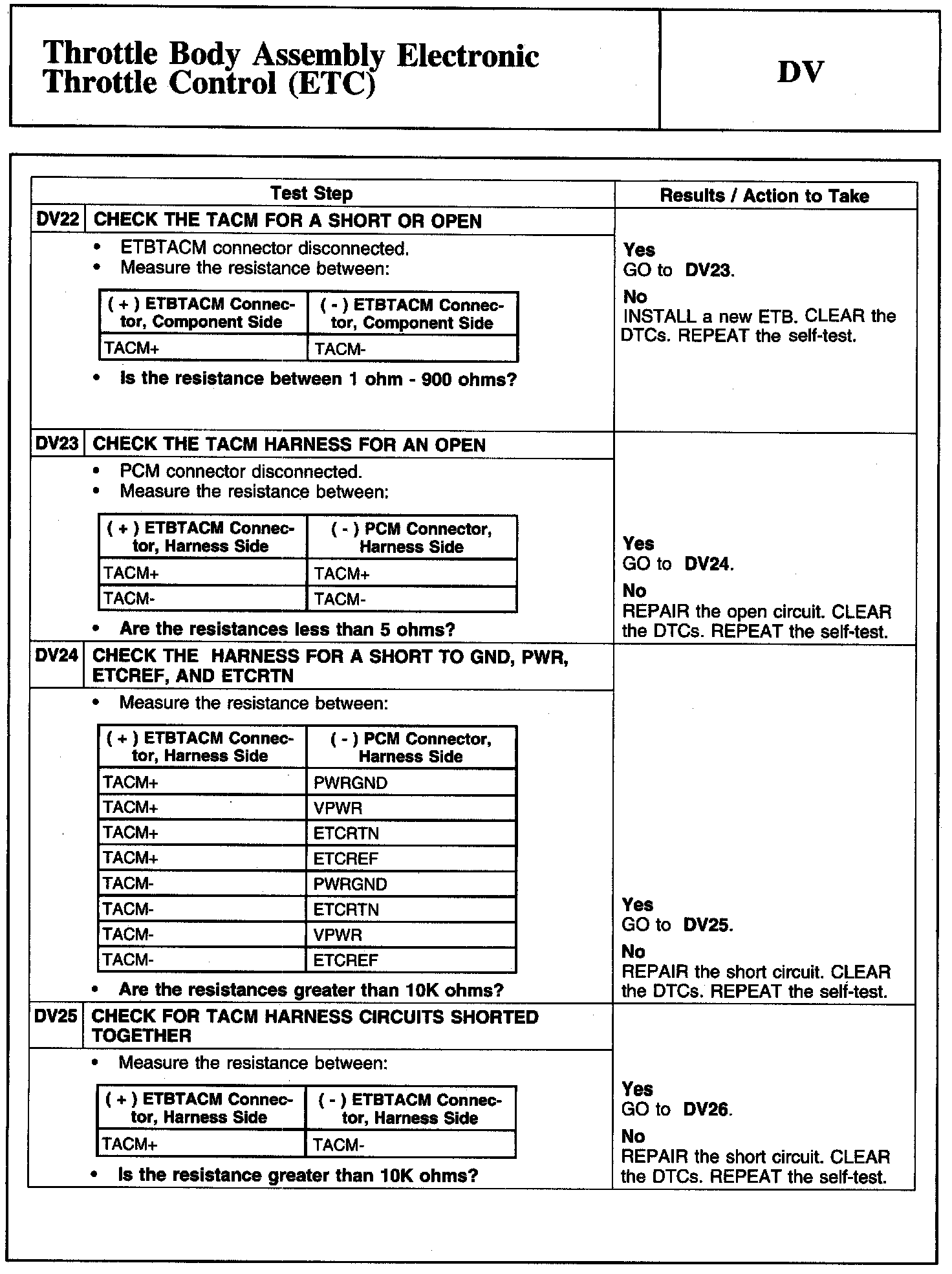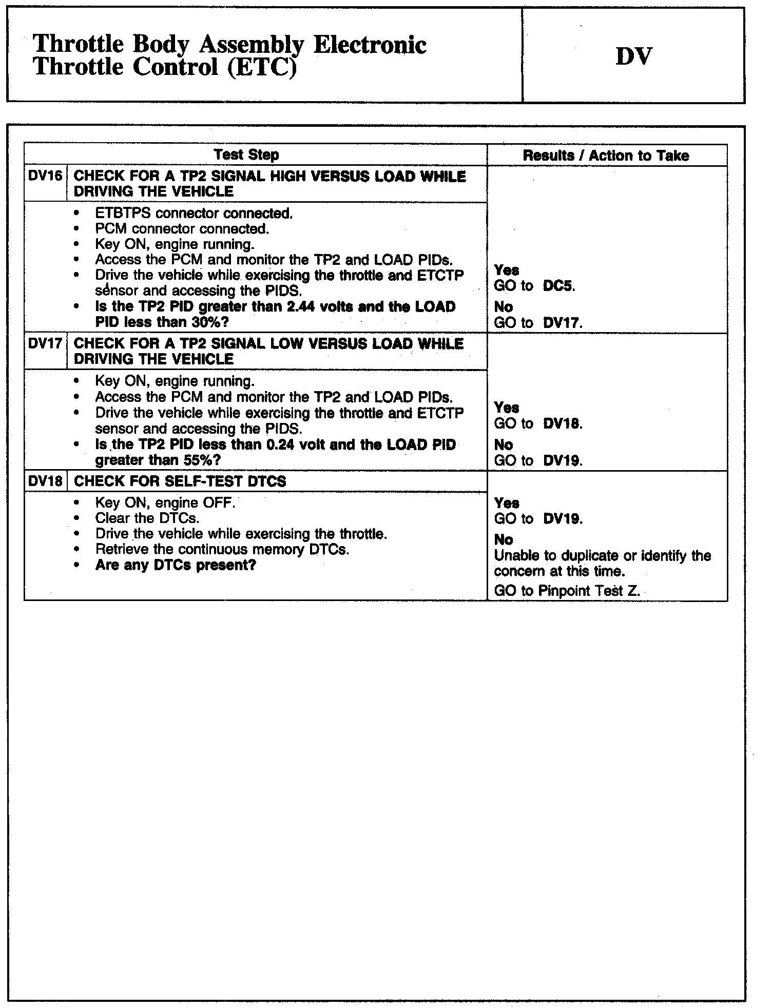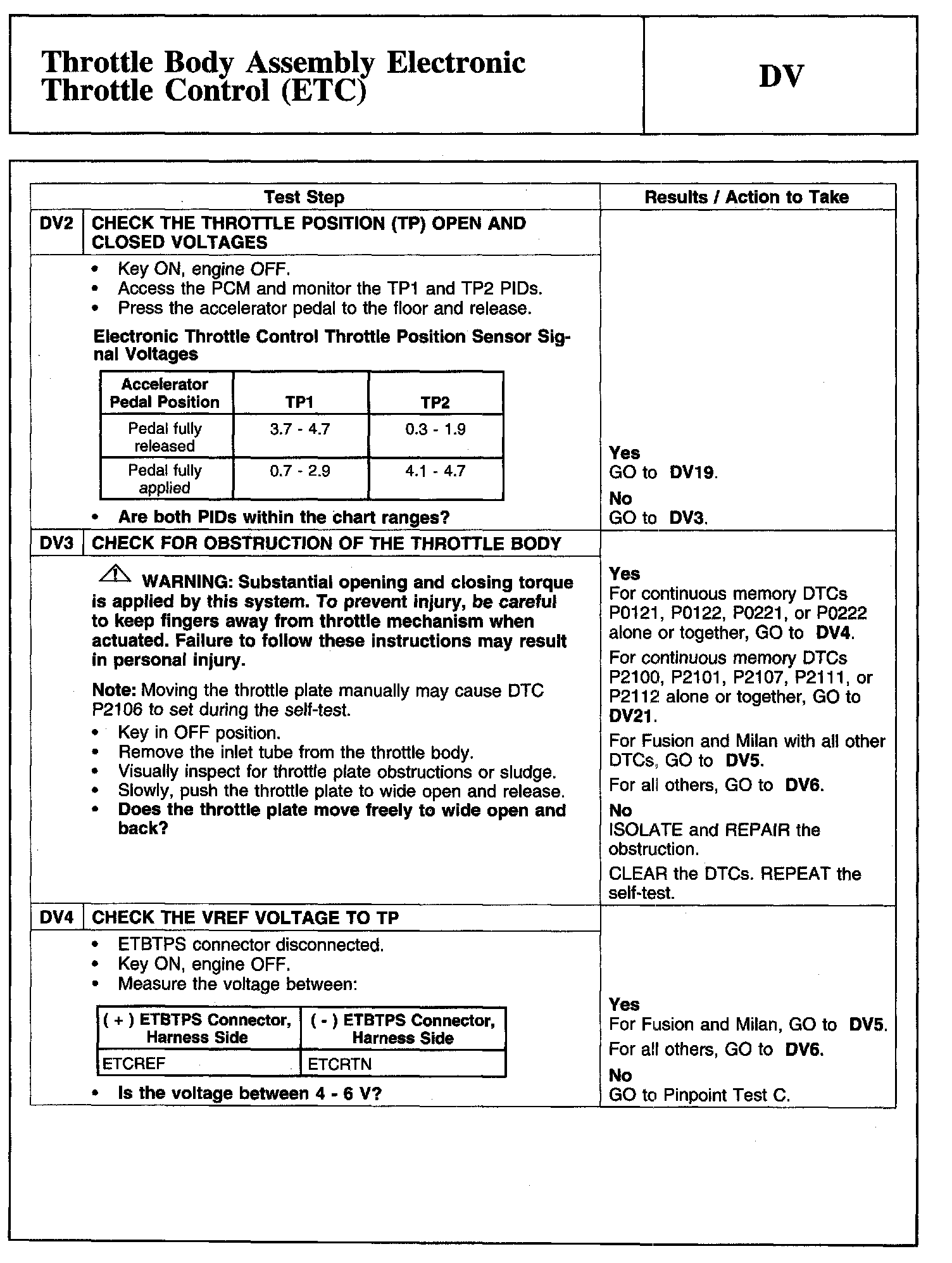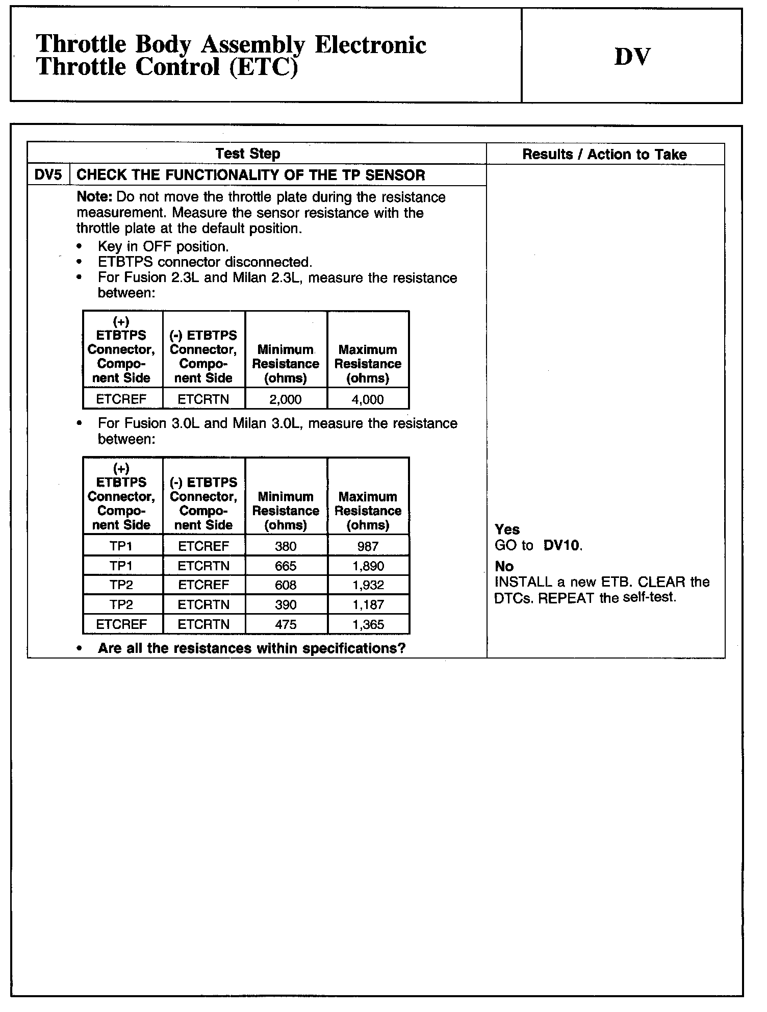 Tests DV: Throttle Body Assembly Electronic Throttle Control (ETC)