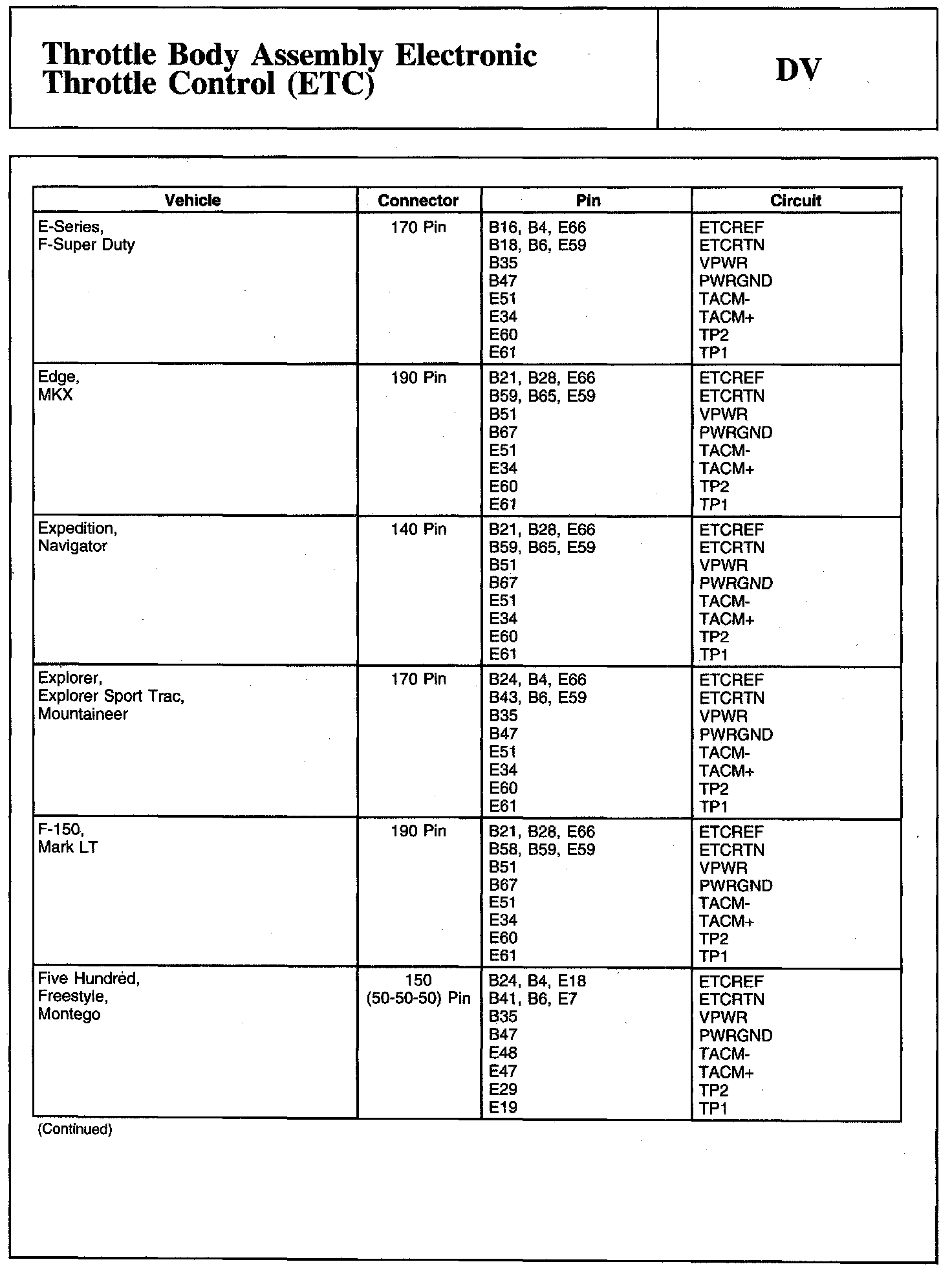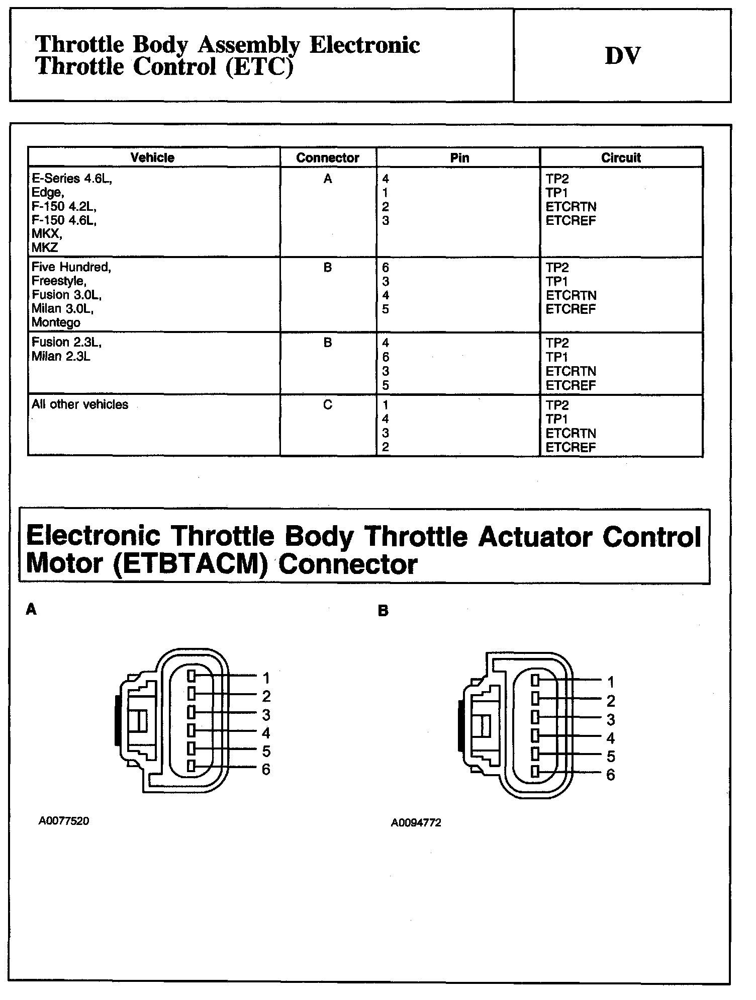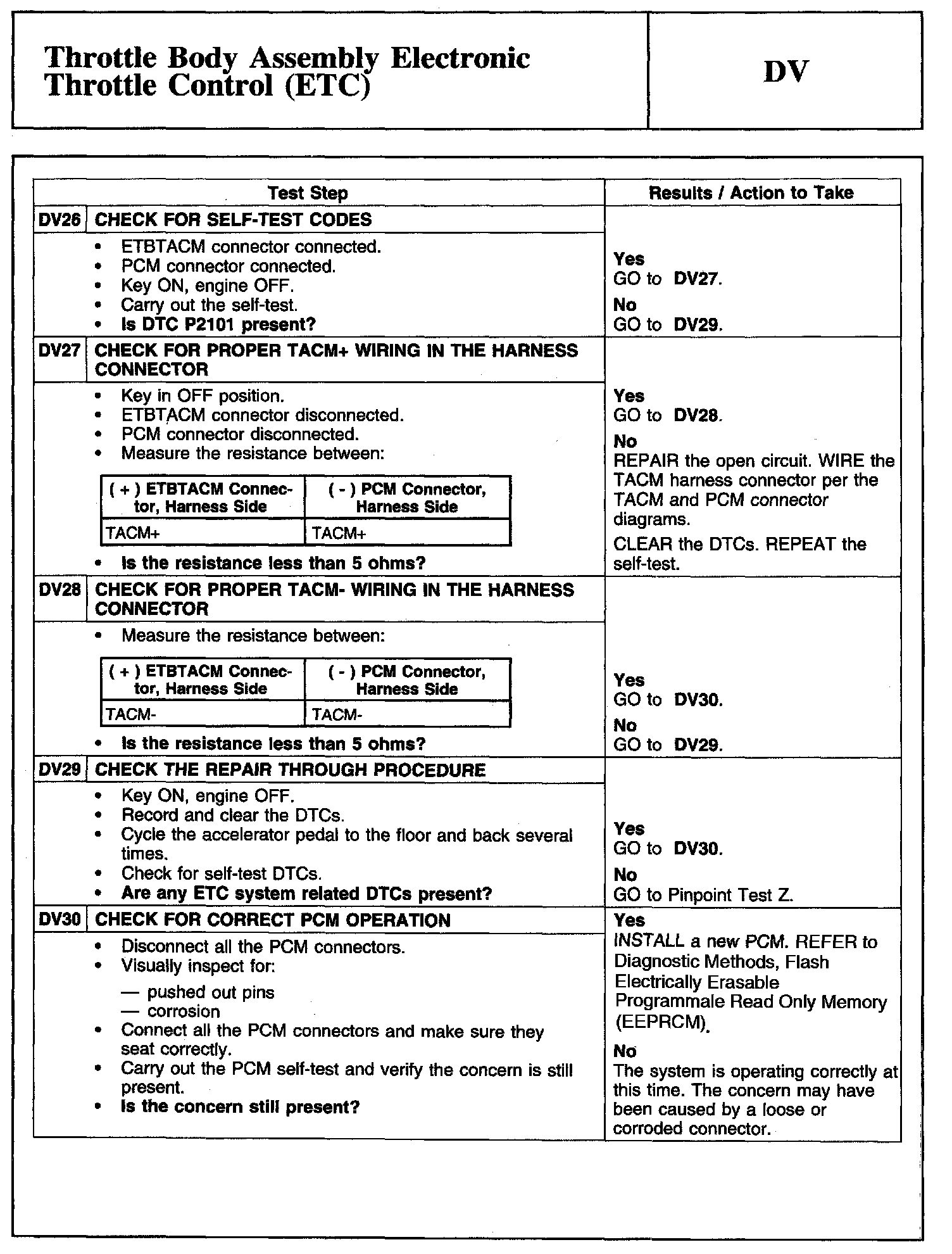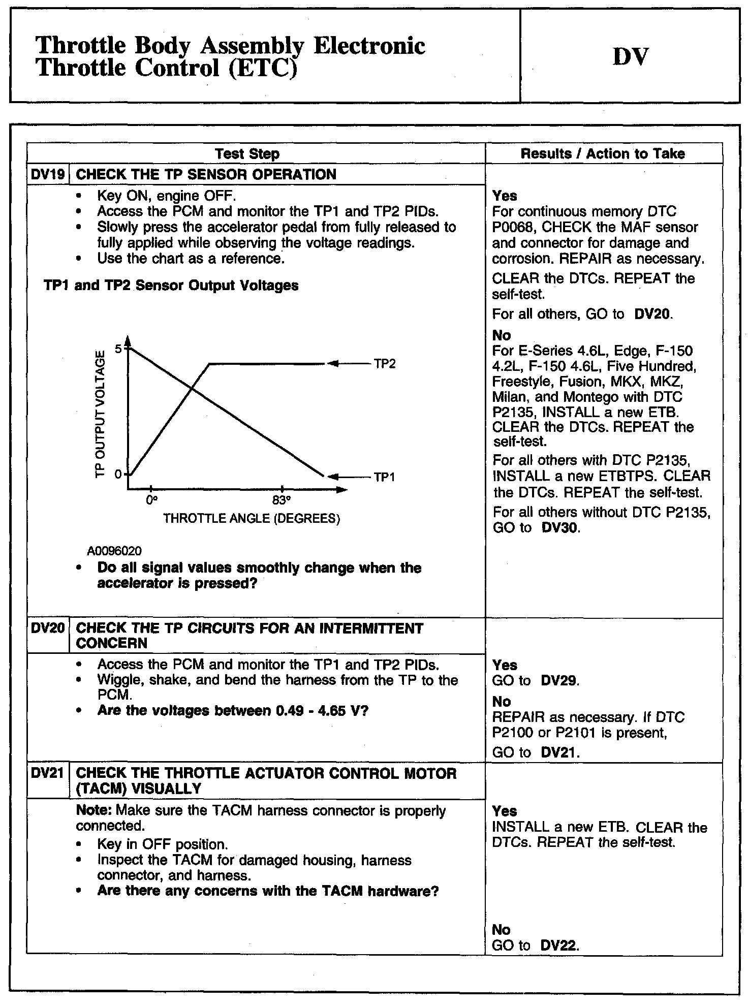 Tests DV: Throttle Body Assembly Electronic Throttle Control (ETC)