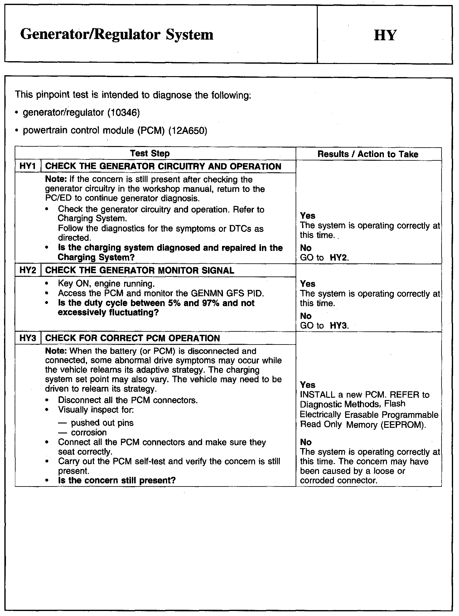 Tests HY: Generator/Regulator System