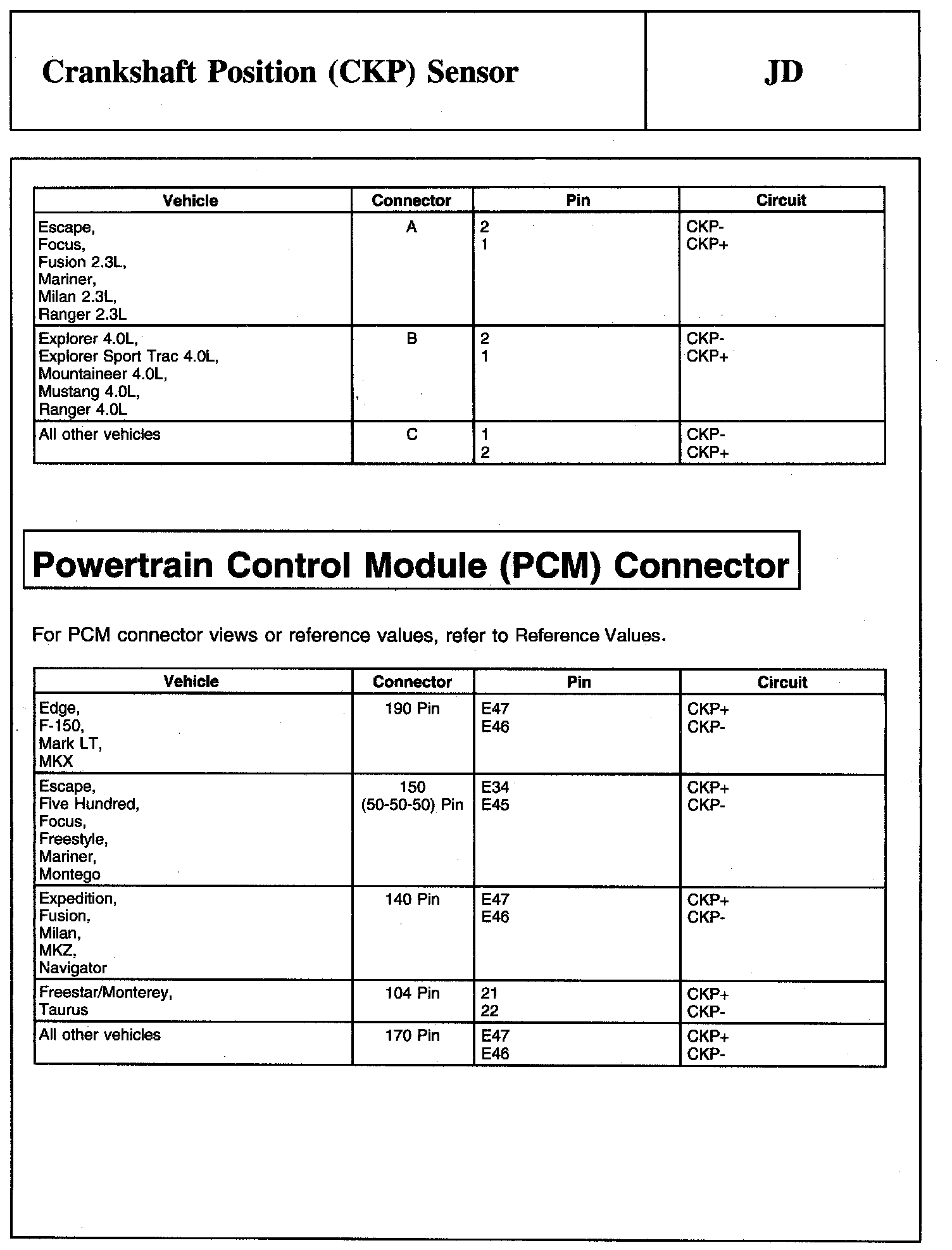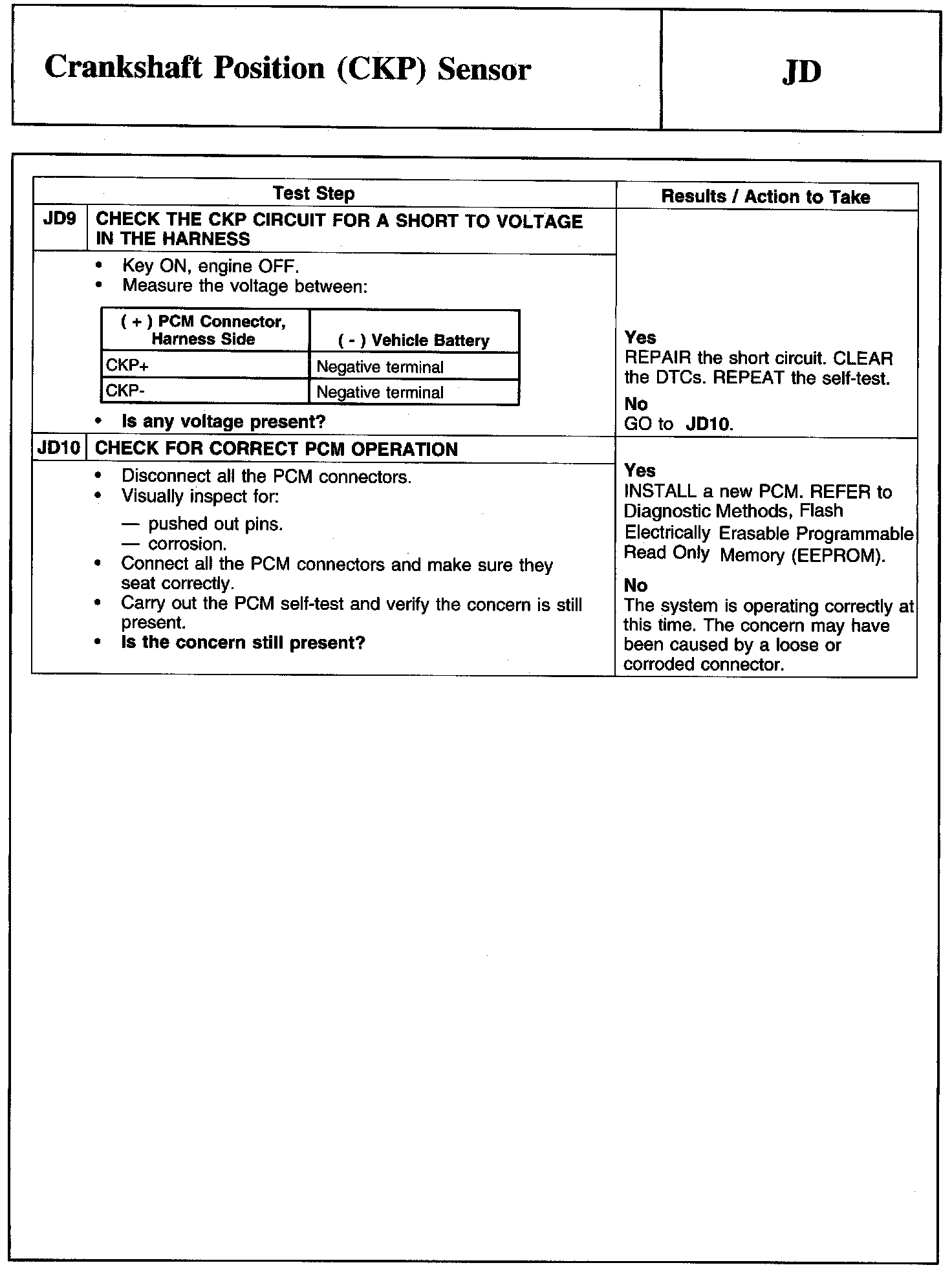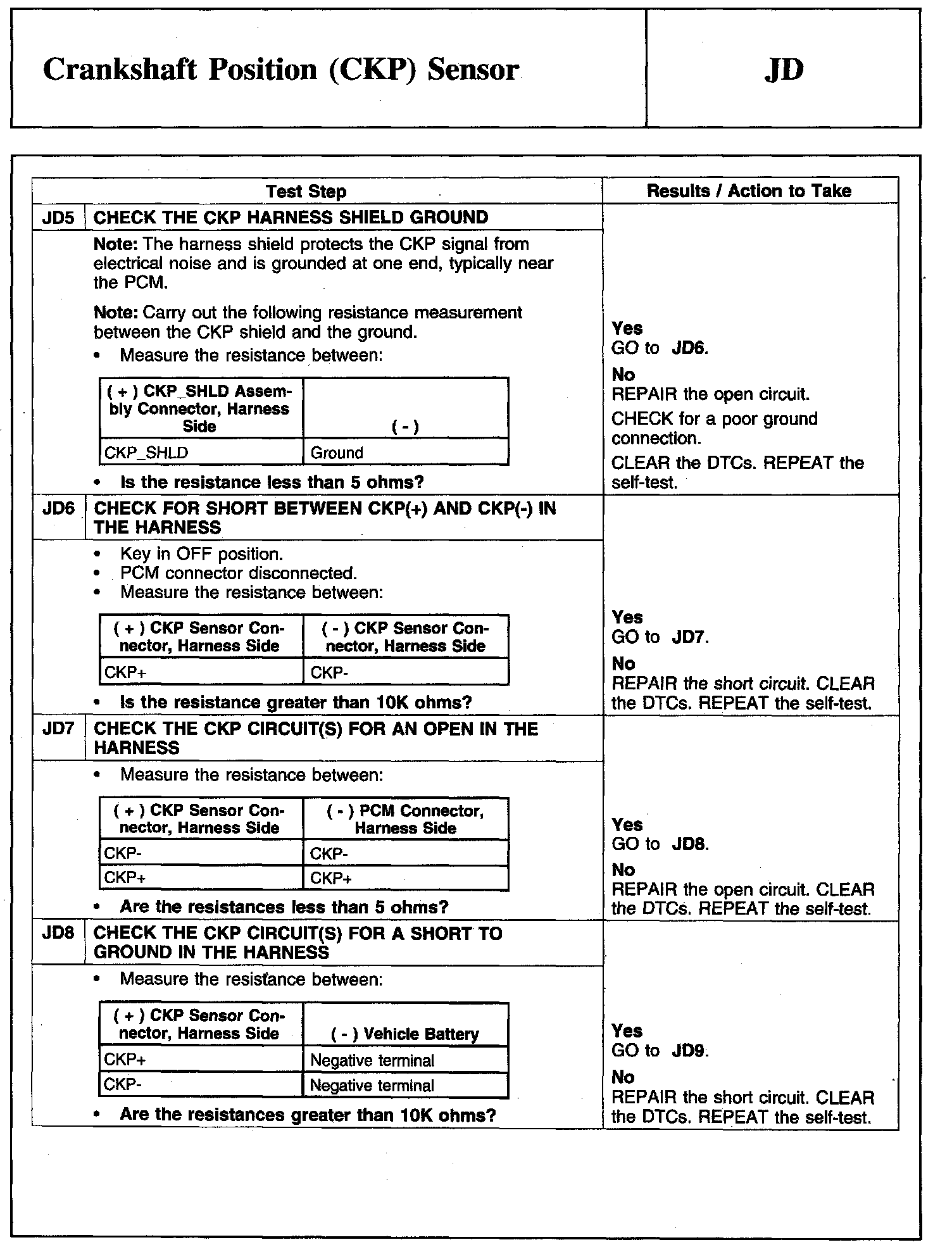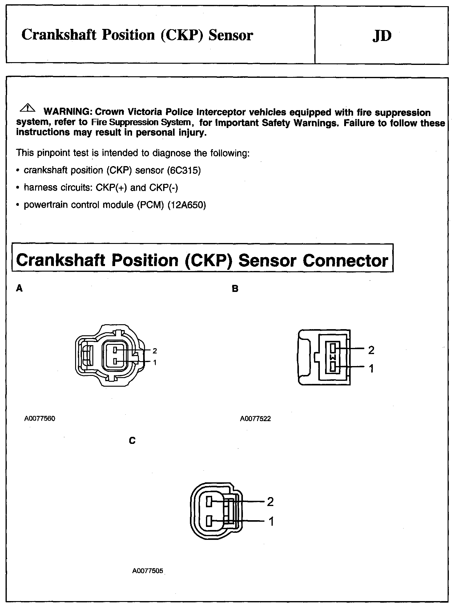 Tests JD: Crankshaft Position (CKP) Sensor