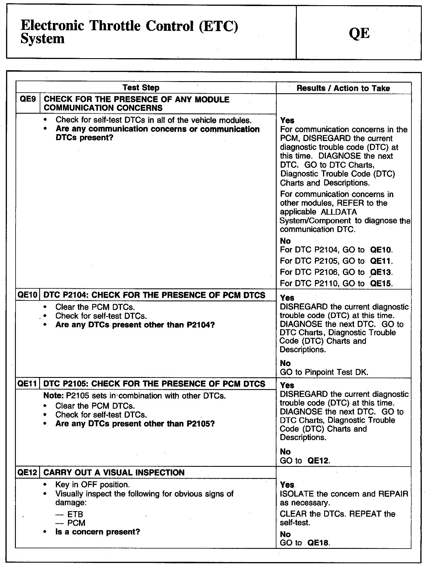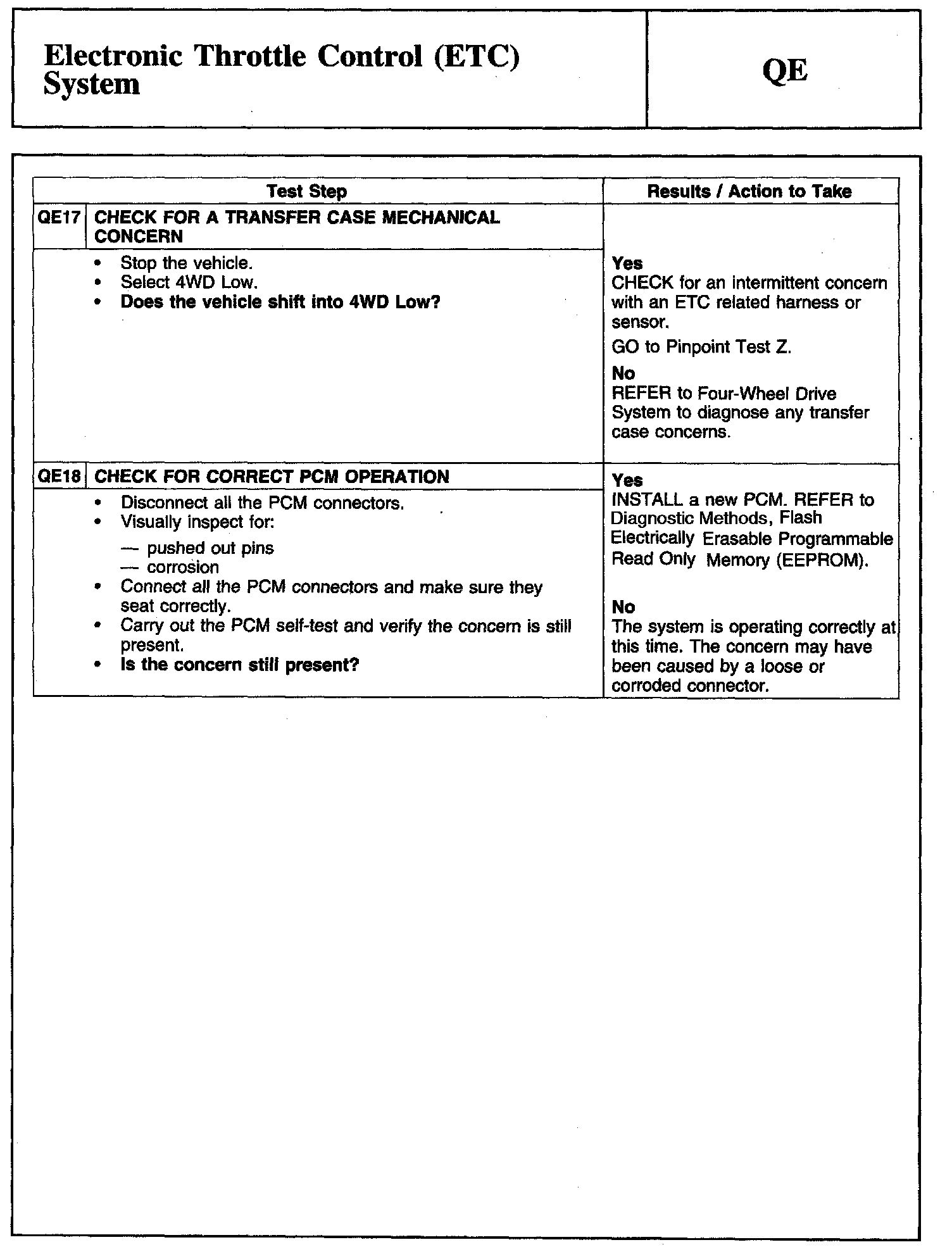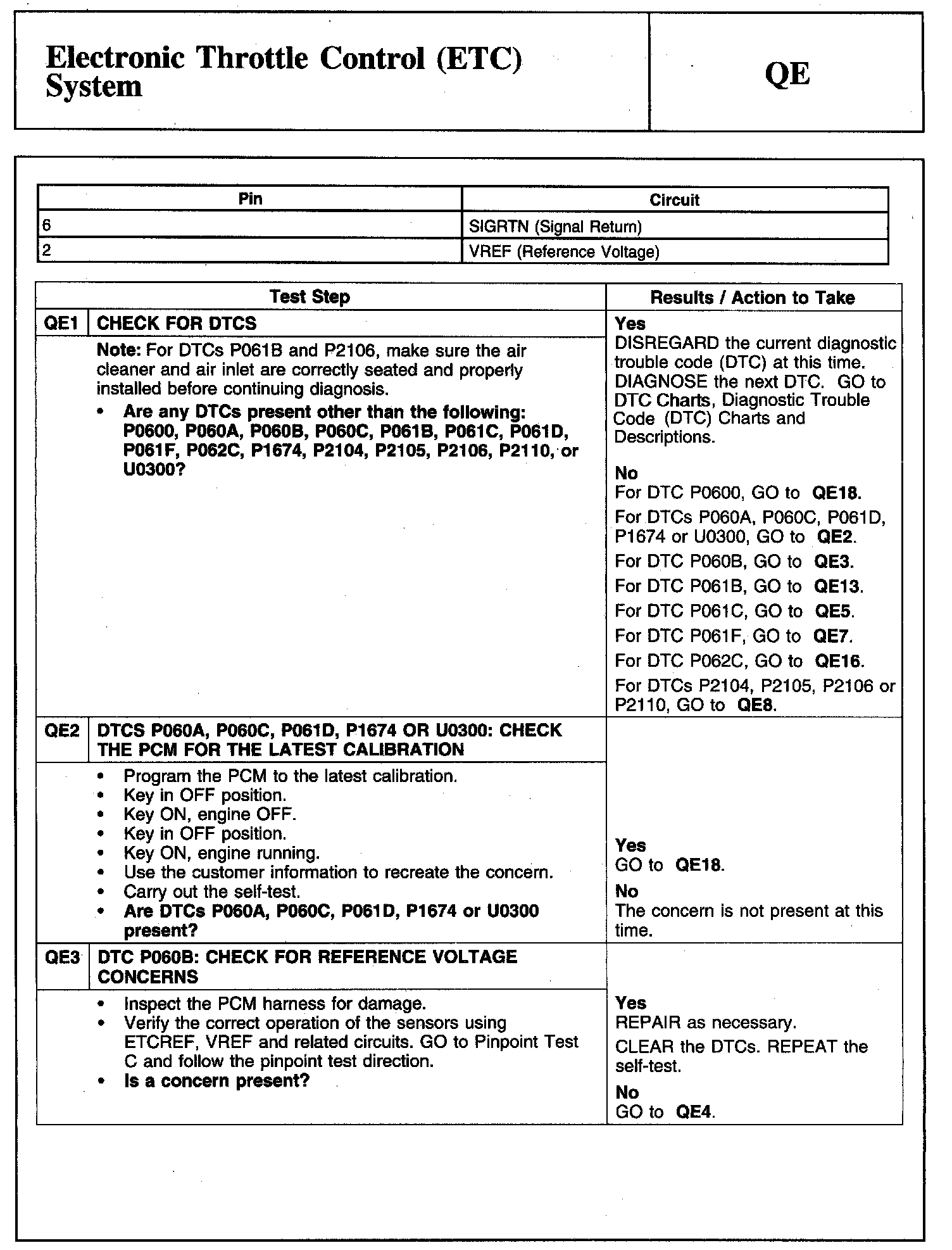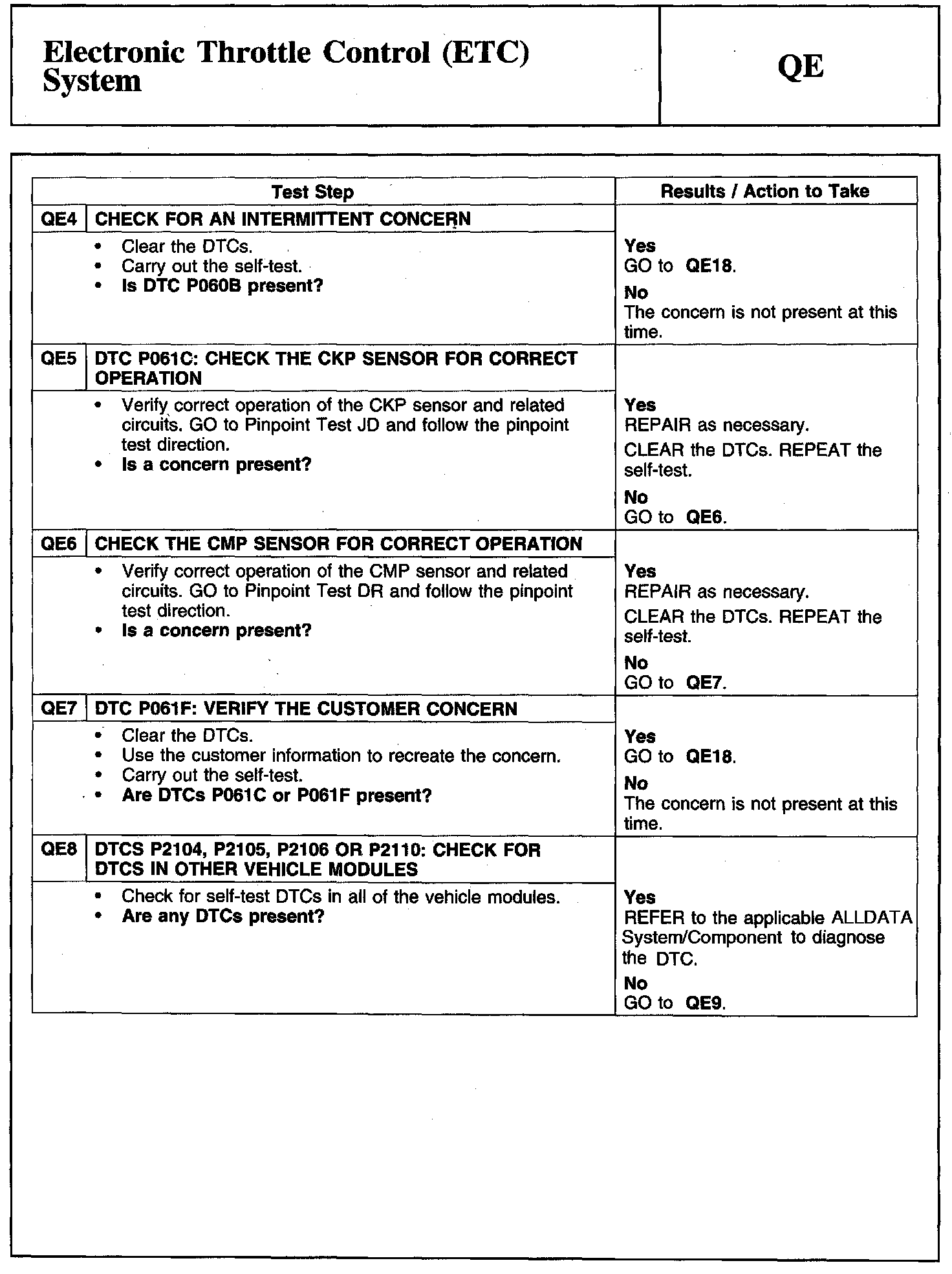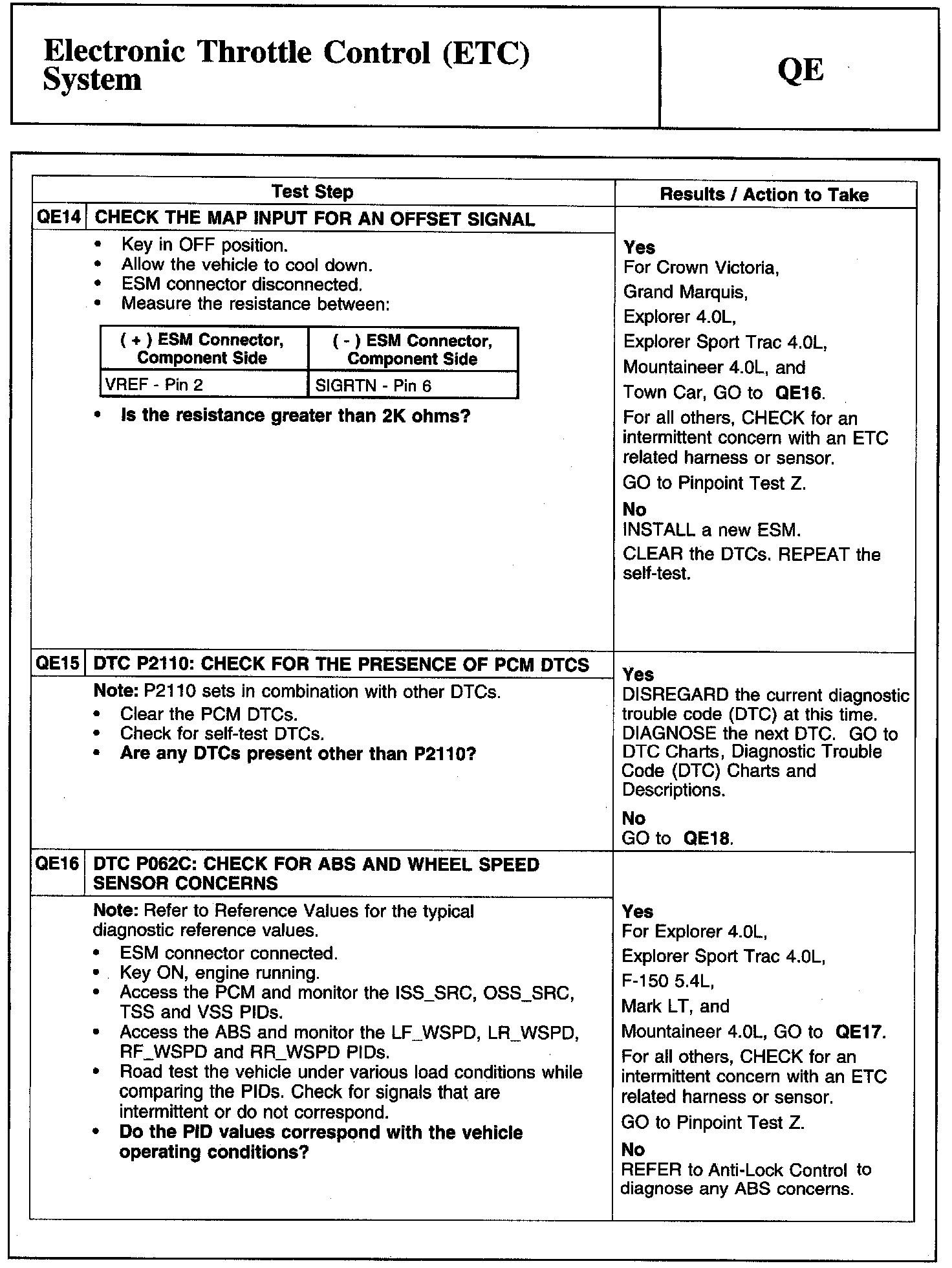 Tests QE: Electronic Throttle Control (ETC) System