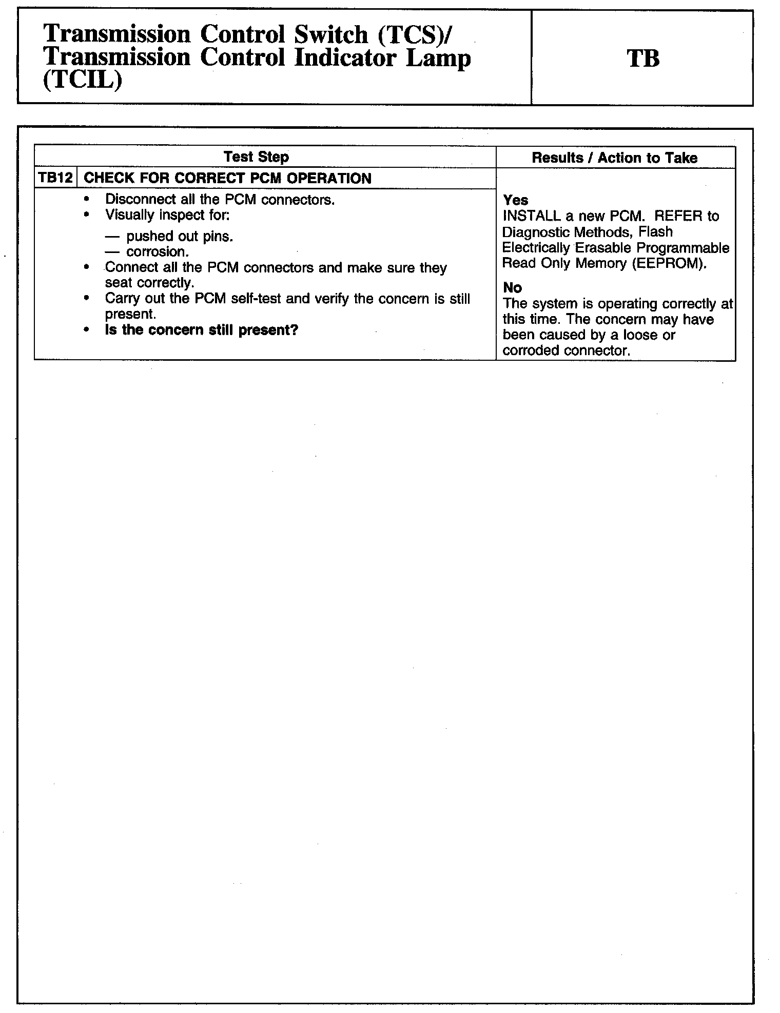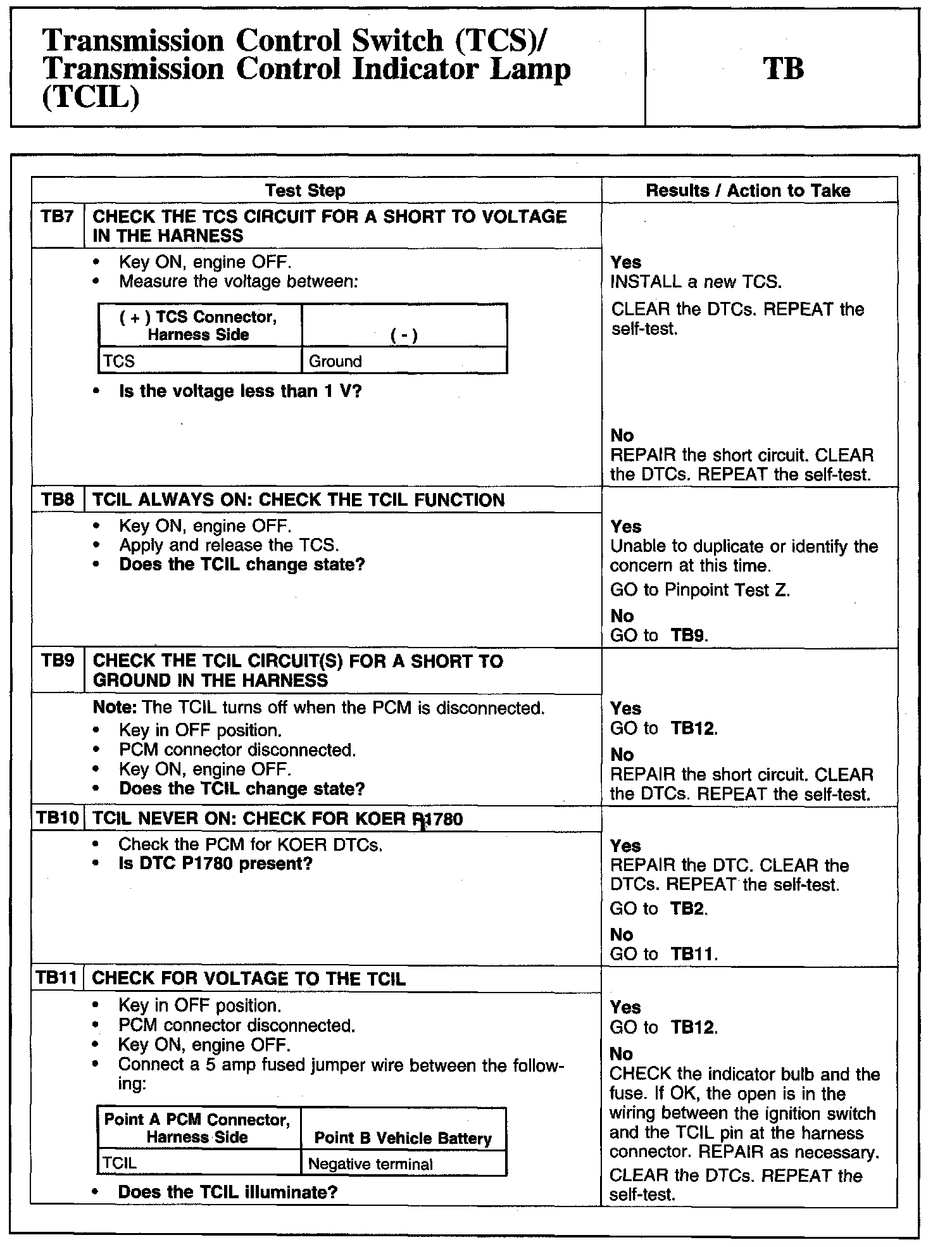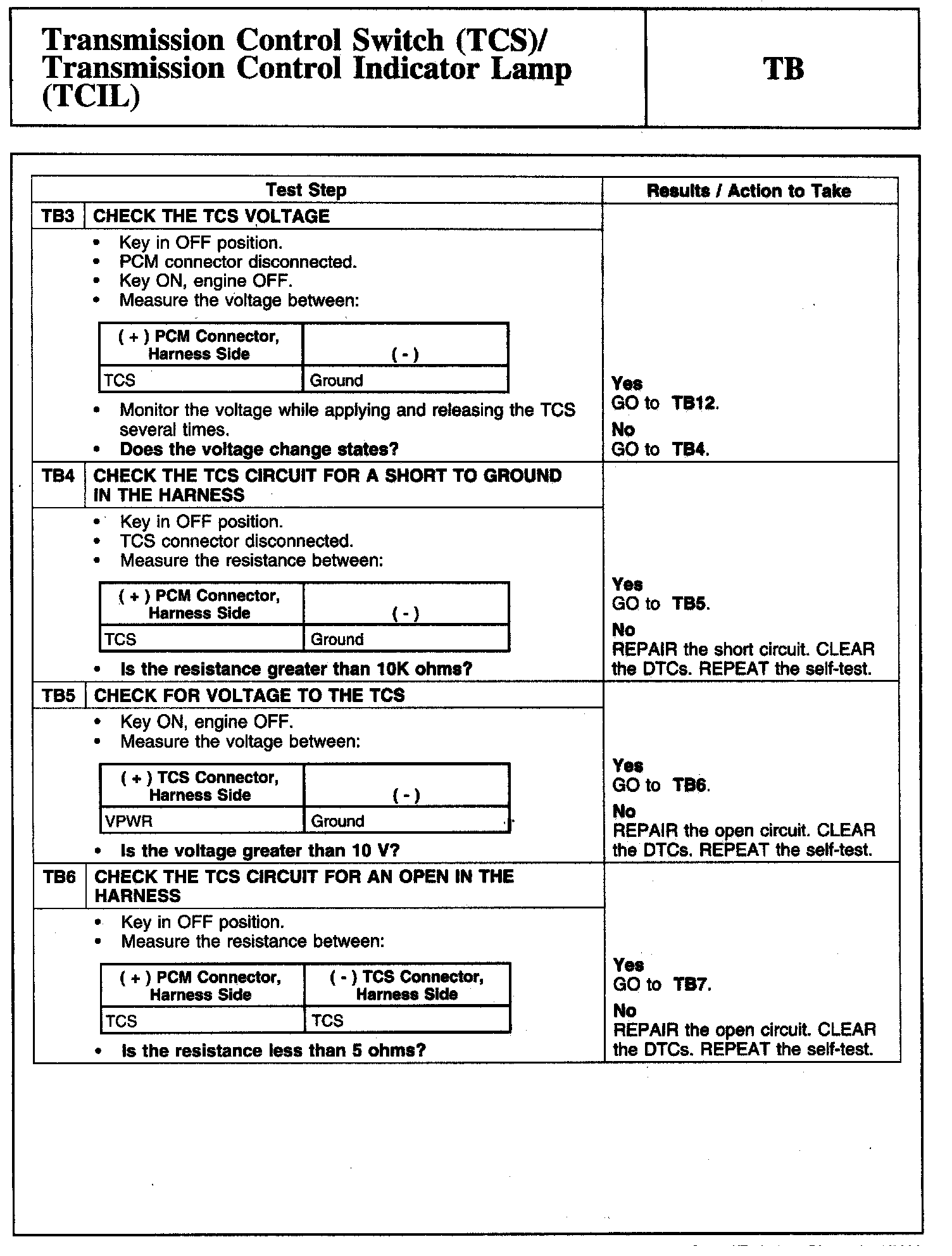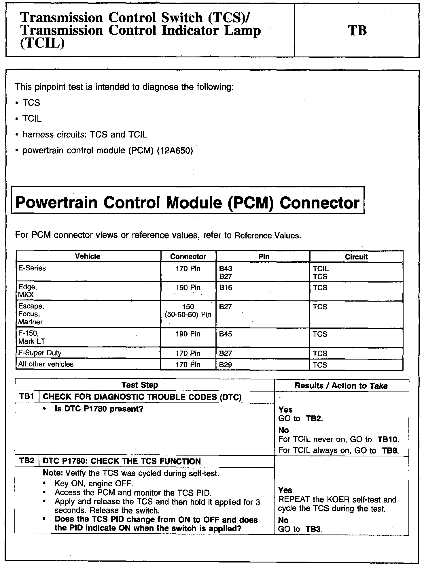Tests TB: Transmission Control Switch (TCS)/Transmission Control Indicator Lamp (TCIL)