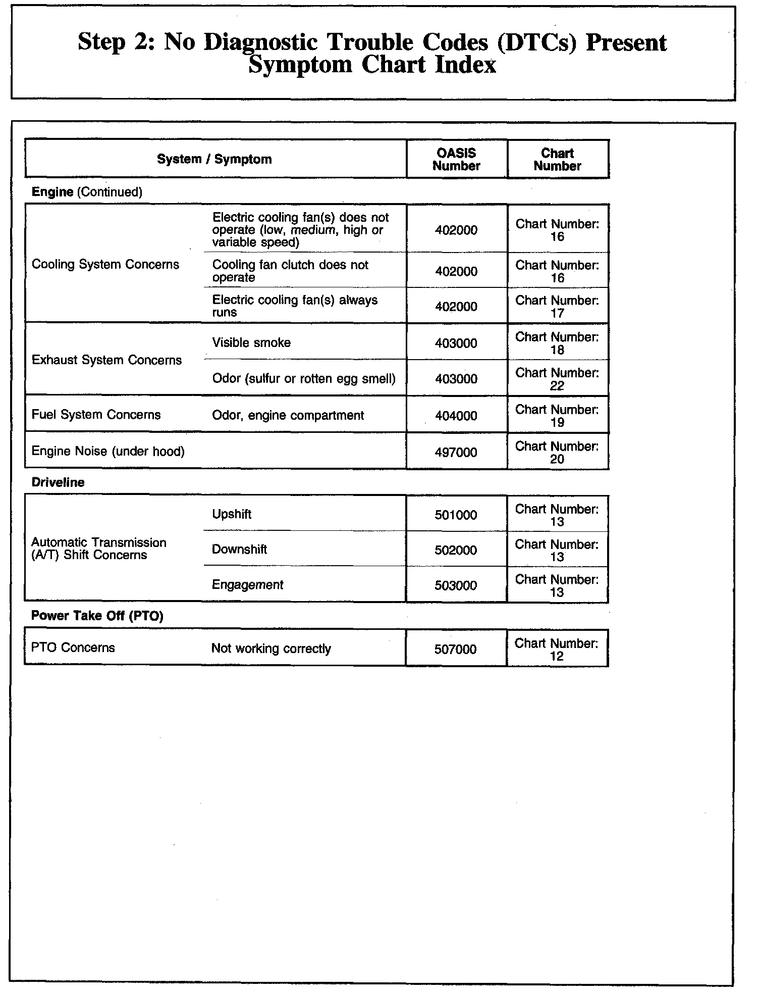 Step 2: No Diagnostic Trouble Codes (DTCs) Present Symptom Chart Index