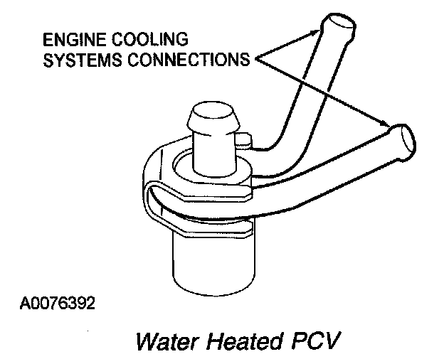 Currently, both heated and non-heated PCV systems are used. The heated systems use either a water heated valve, an electrically heated valve, or an electrically heated tube. Engine coolant flows around the water heated valve to prevent it from freezing. Electrically heated systems use a heating element enclosed in the PCV valve, PCV fitting or the PCV tube to prevent the valve or tube from freezing. The valve or the tube heater can be controlled by either the PCM or the thermal harness.
