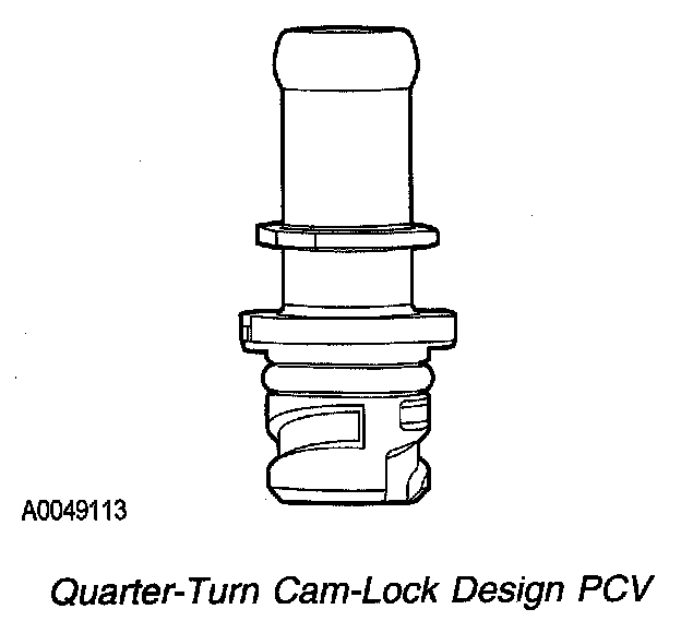 PCV systems that comply with OBD PCV monitoring requirements use a quarter-turn cam-lock thread design at one end to prevent accidental disconnection from the valve cover. For more information about the PCV monitor refer to Positive Crankcase Ventilation (PCV) System Monitor. Positive Crankcase Ventilation (PCV) System Monitor