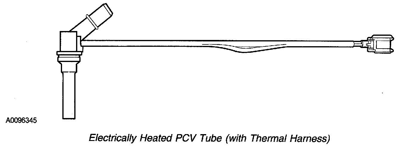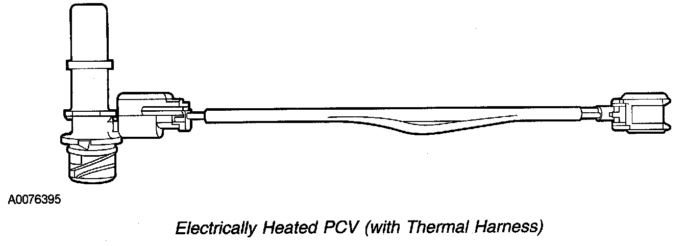 - Thermal harness controlled heater - On vehicle applications that are equipped with a thermal harness to the PCV valve or tube. The thermal harness only provides electrical continuity to the heating element when temperatures are less than 5°C +/- 4°C (40°F +/- 7°F). Typically this harness is located close to the PCV valve or tube.
