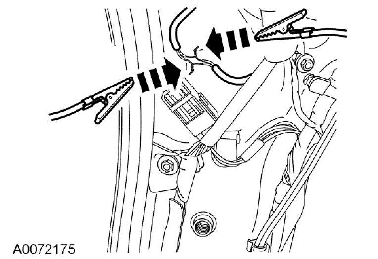 9. Deploy the safety belt buckle or retractor by touching the ends of the 2 wires of the jumper harness to the terminals of a 12-volt battery.