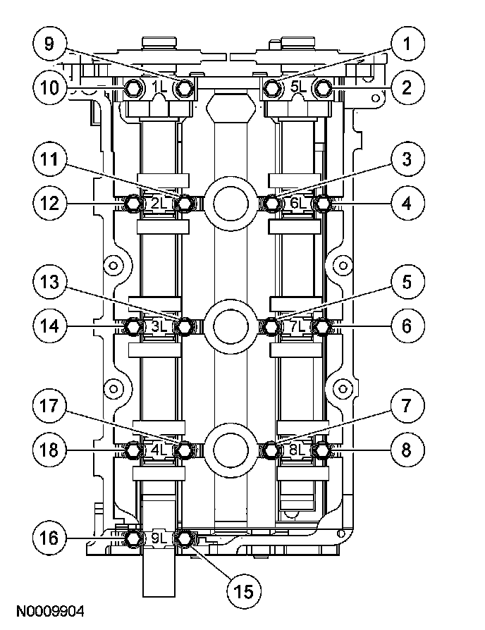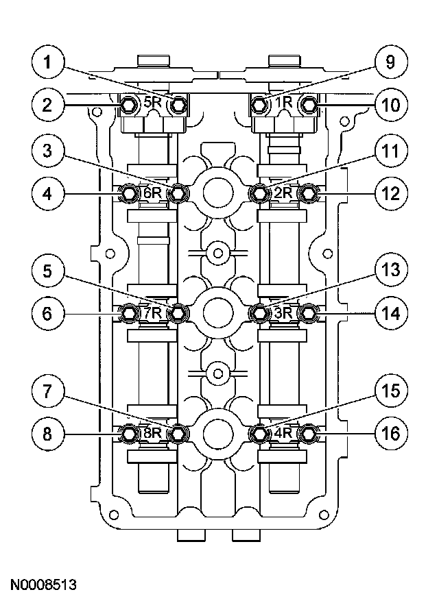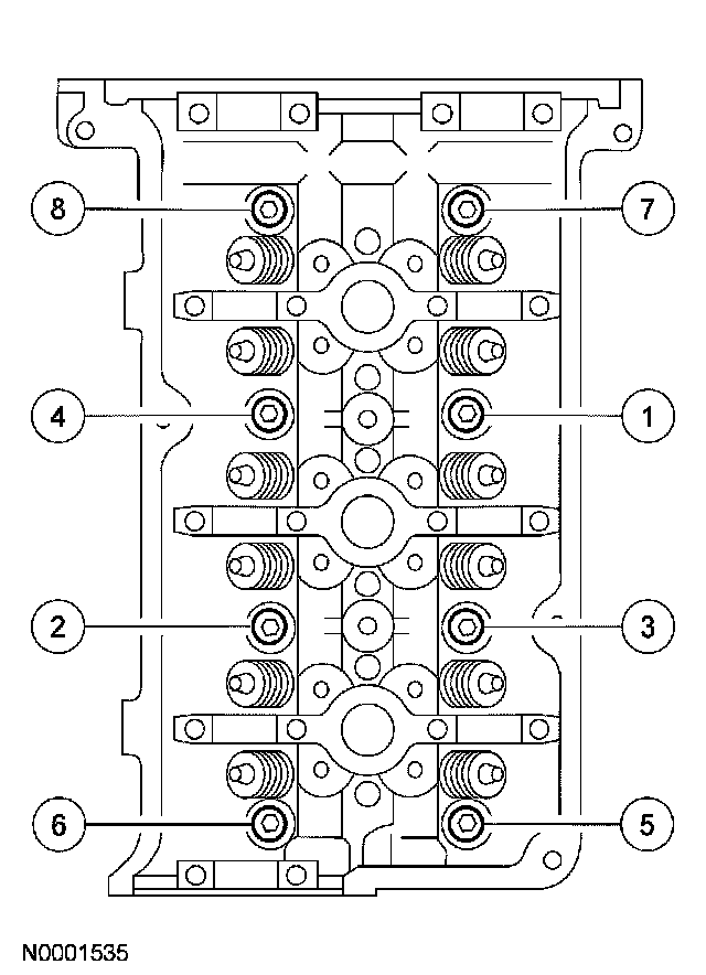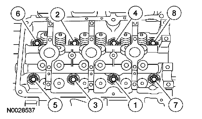 Install the 8 bolts and tighten in 6 stages in the sequence shown.