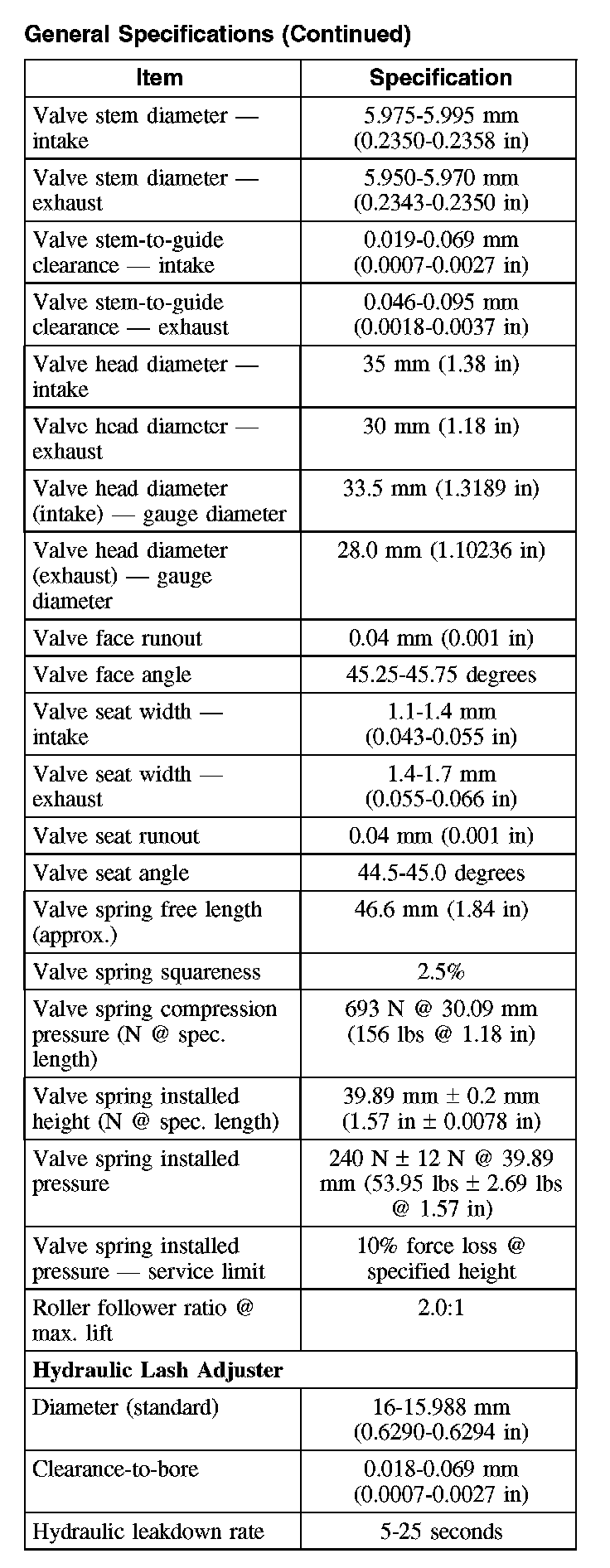 General Specifications
