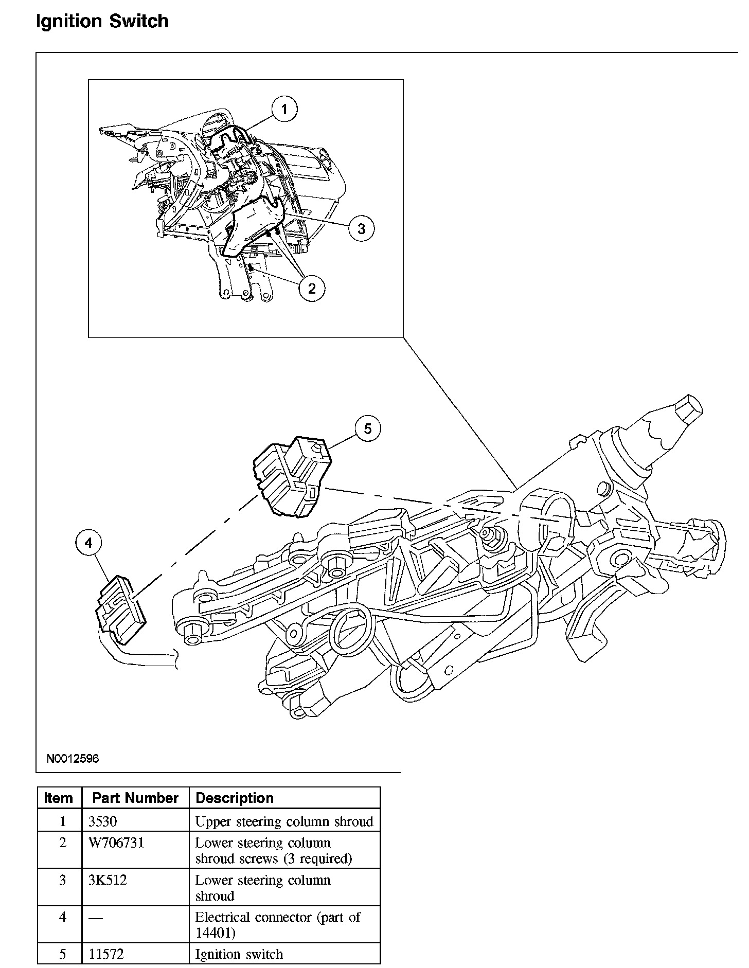 CAUTION: Do not remove the ignition lock cylinder and the ignition switch at the same time or damage to the column can result.
