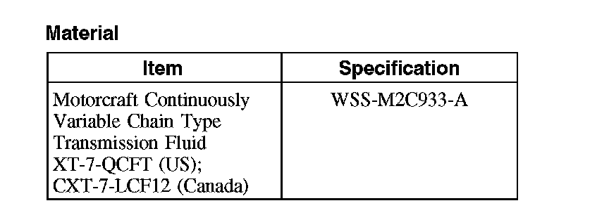 CAUTION: MERCON (R), MERCON (R) V and MERCON (R) SP, Motorcraft Premium Automatic Transmission Fluid and Motorcraft Continuously Variable Chain Type Transmission Fluid are not interchangeable transmission fluids. The use of any fluid other than what is recommended for this transmission will cause transmission damage.