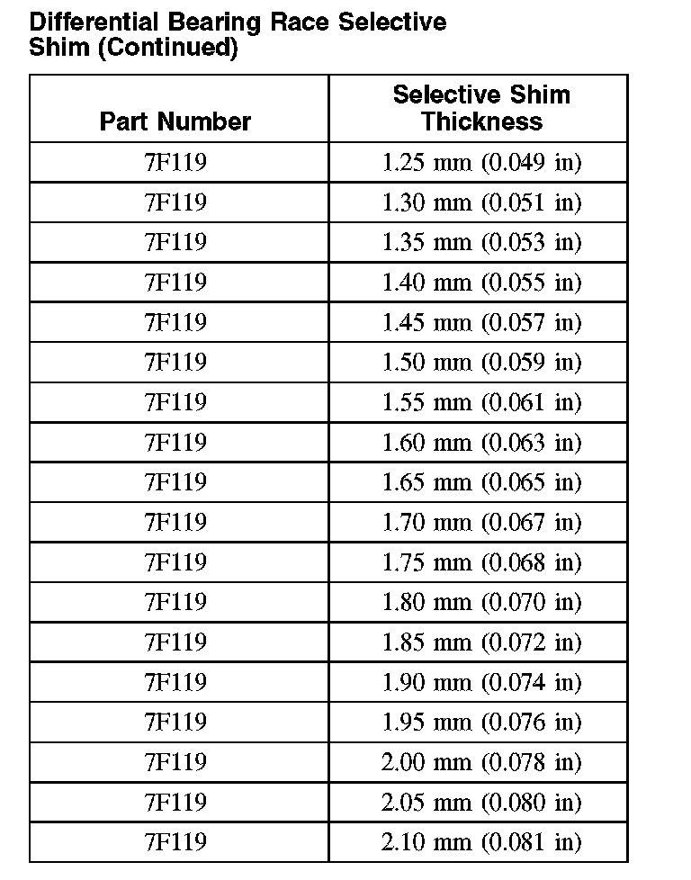 Differential Bearing Race Selective Shim