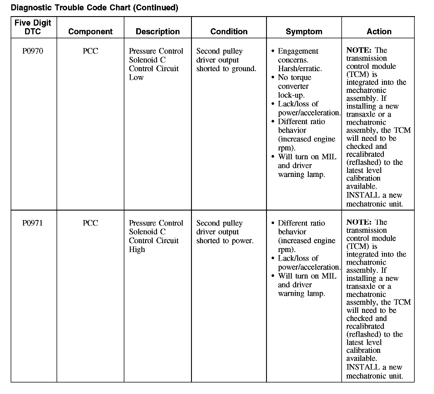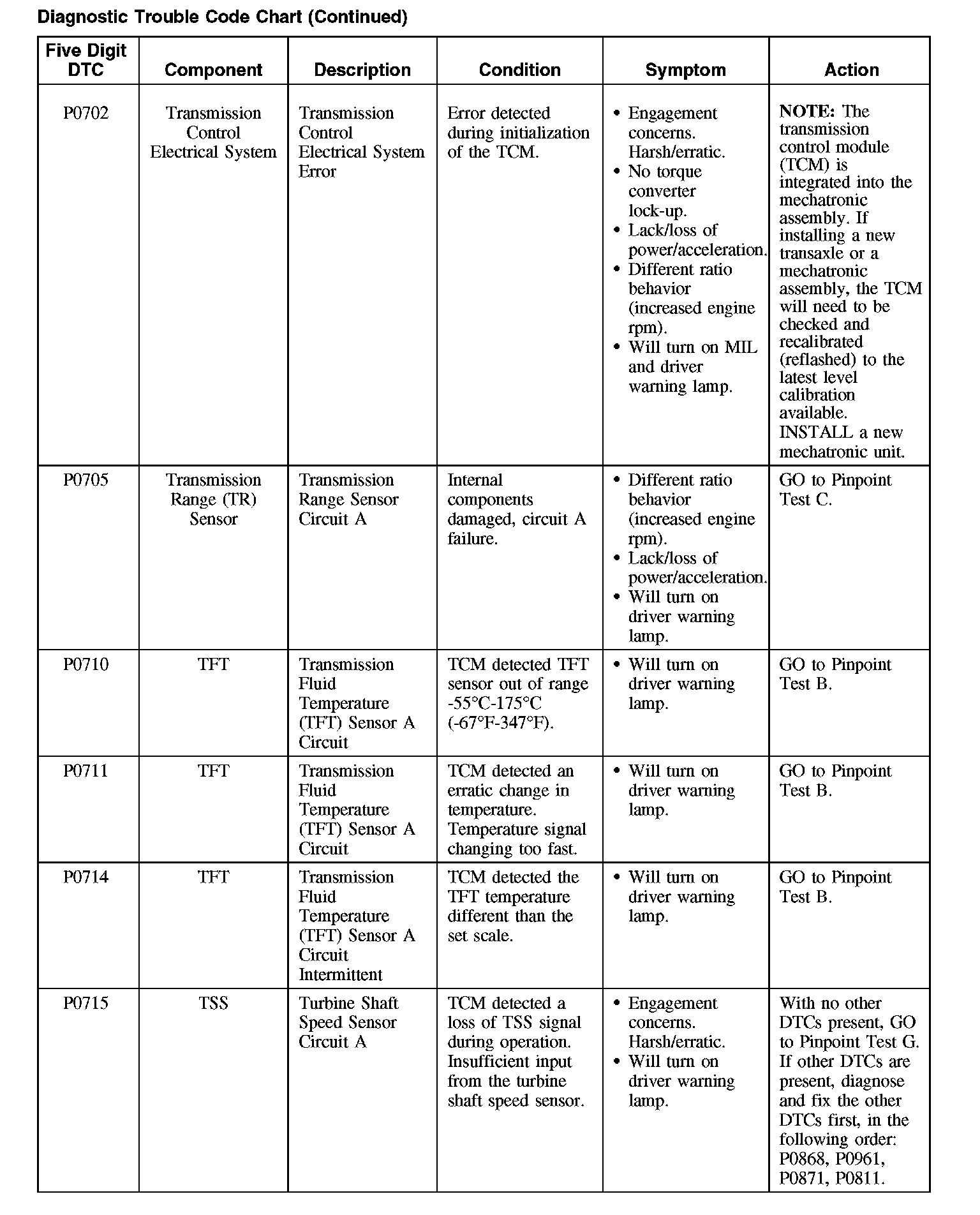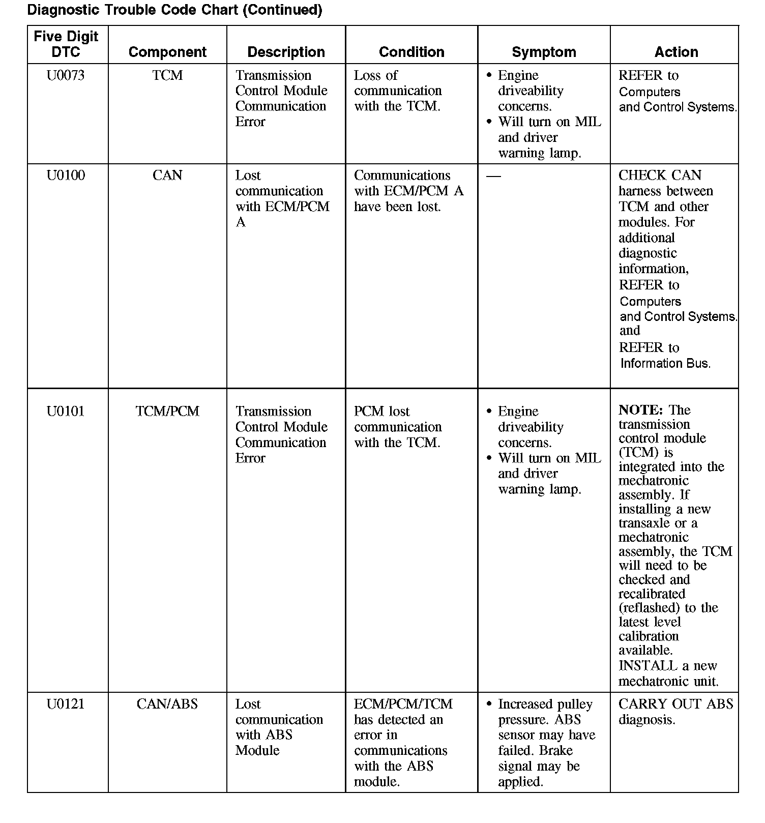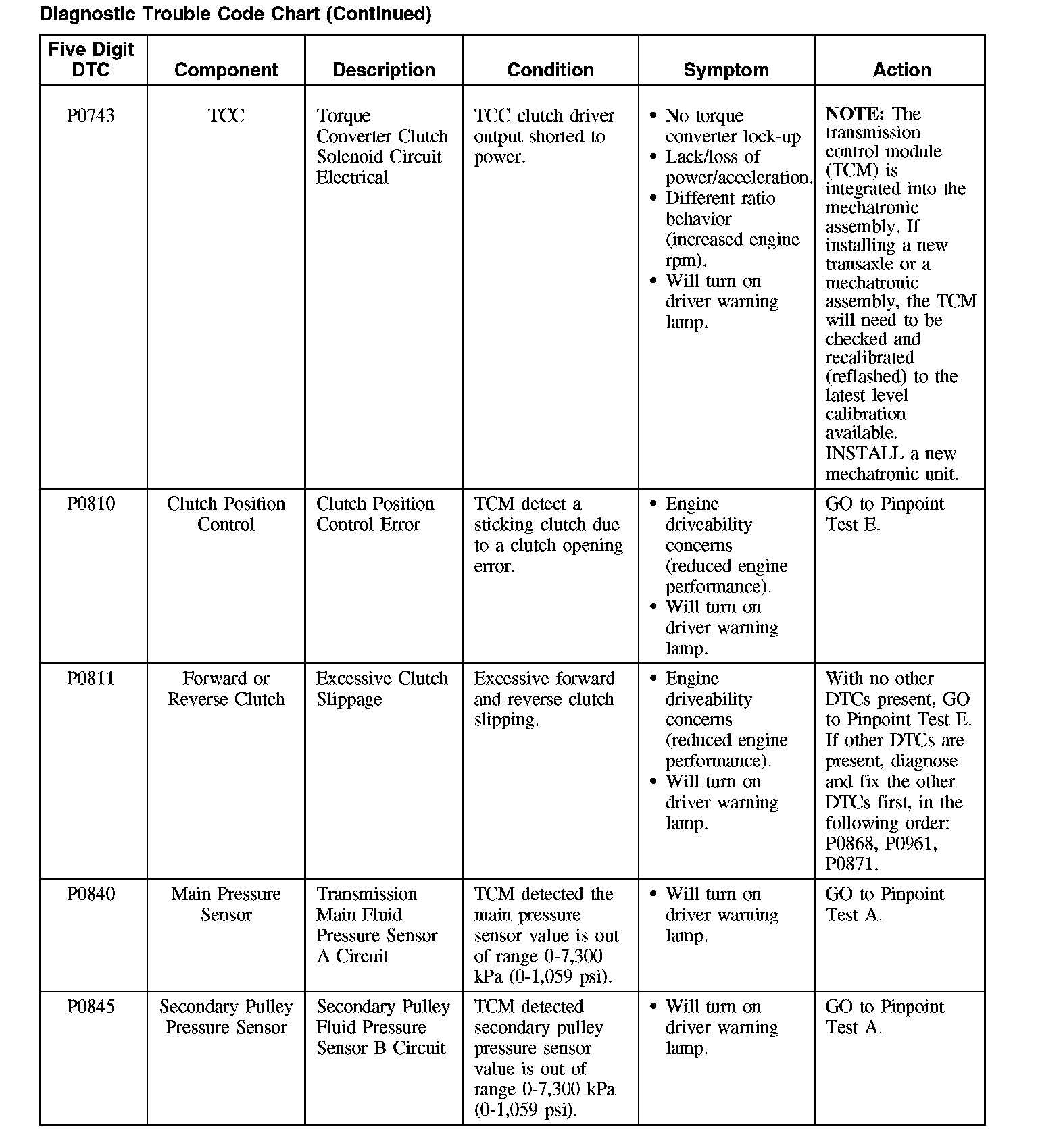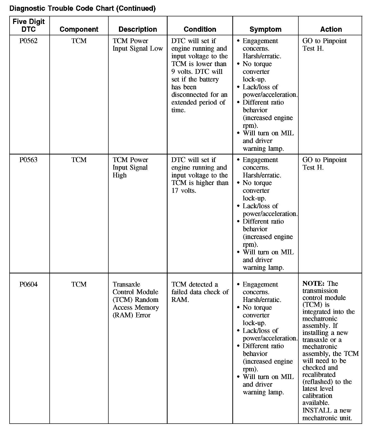 Diagnostic Trouble Code (DTC) ChartsSpecial Tool(s):Diagnostic Trouble Code ChartC1222 / P0218-P0219:P0562-P0604:P0605-P0613:P0615-P0657:P0658-P0701:P0702-P0715:P0716-P0730:P0740-P0742:P0743-P0845:P0868-P0900:P0902-P0903:P0942-P0960:P0961-P0963:P0964-P0966:P0967-P0968:P0970-P0971:P1710-P2637:P186D-P2766 / U0001:U0073-U0121:U0301-U0415:
