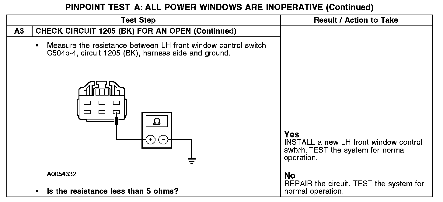 Under normal operation, the LH front power window control switch receives power through circuit 1499 (PK/LG), which is the delayed accessory relay output from the smart junction. The delayed accessory relay is integral to the smart junction box (SJB). The LH front power window control switch is grounded to the chassis through circuit 1205 (BK).