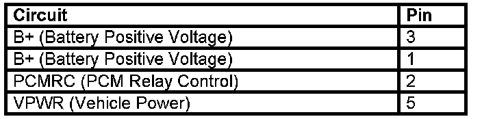 Powertrain Control Module Power (PCM Power) Relay Connector