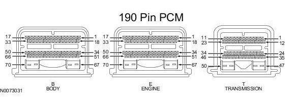 Powertrain Control Module (PCM) Connector - For PCM connector views or reference values, refer to Reference Values.