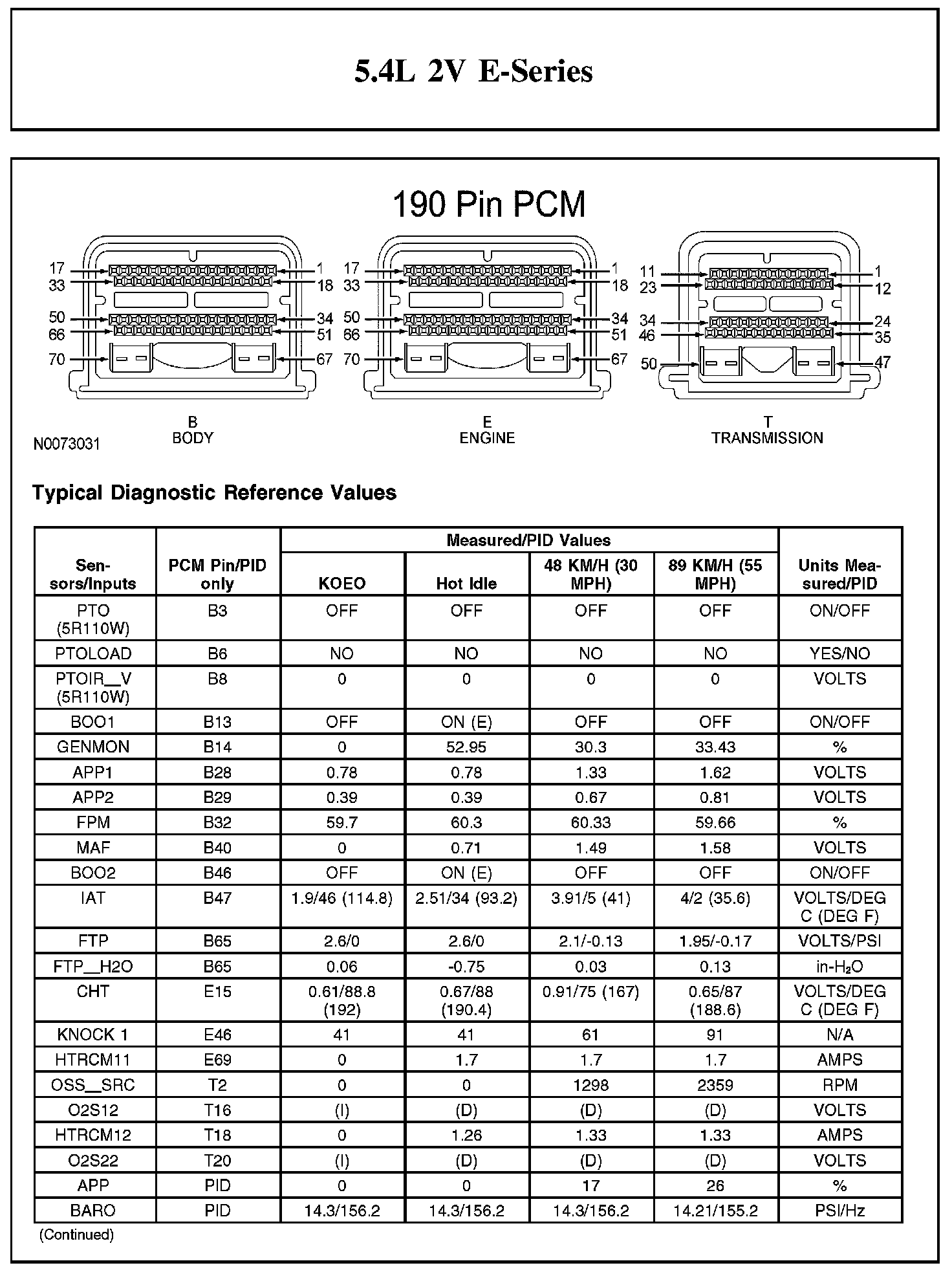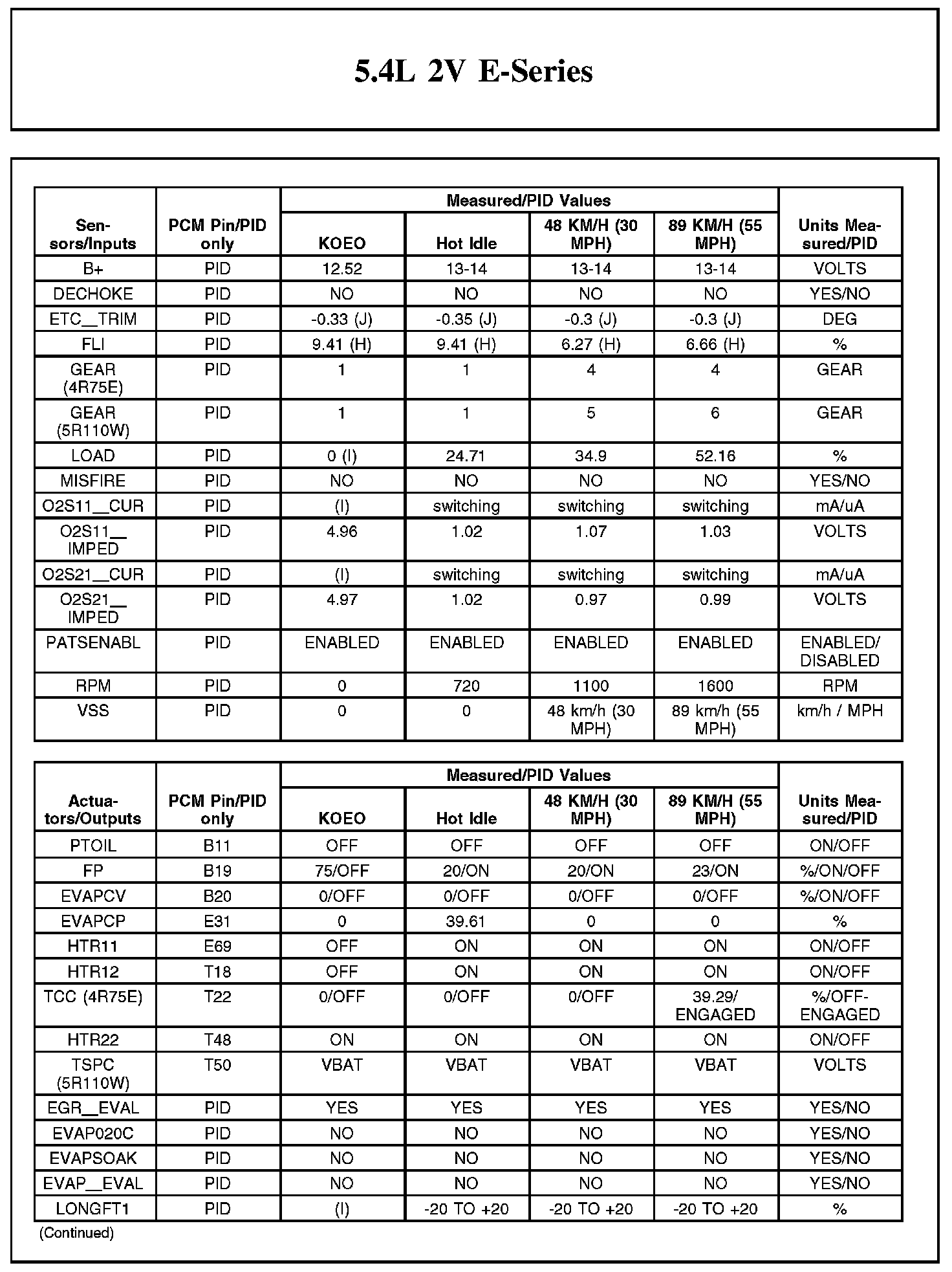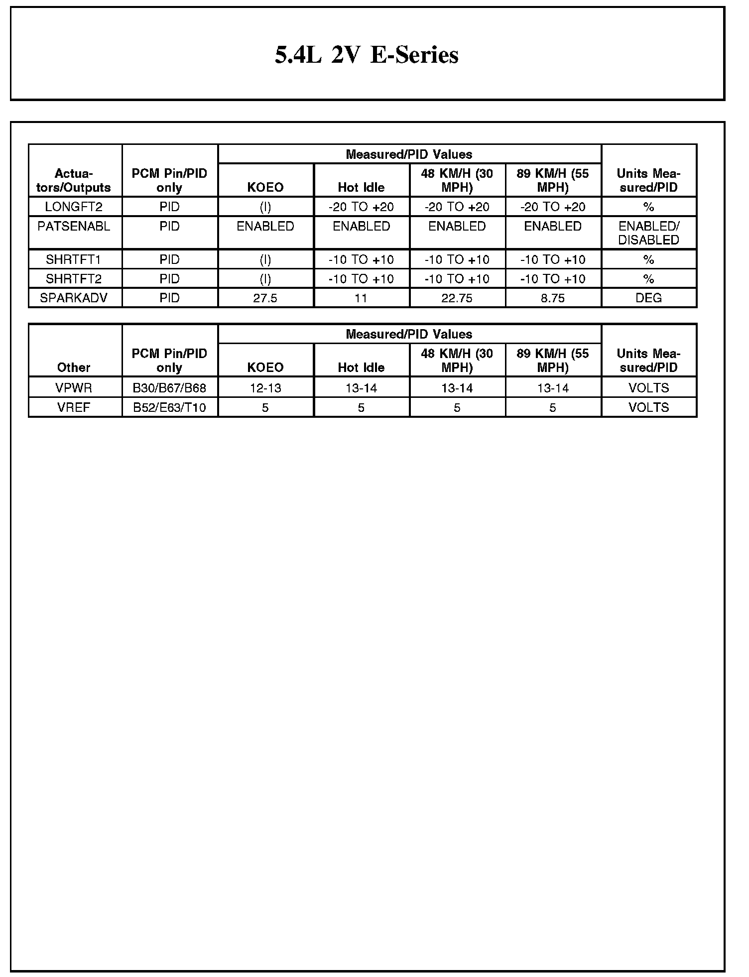 The Typical Diagnostic Reference Value Charts do not display fault parameter identifications (PIDs). These are PIDs which indicate a hard fault with the circuit. They display a value of FAULT or NO FAULT and are PIDs ending with the letter F.