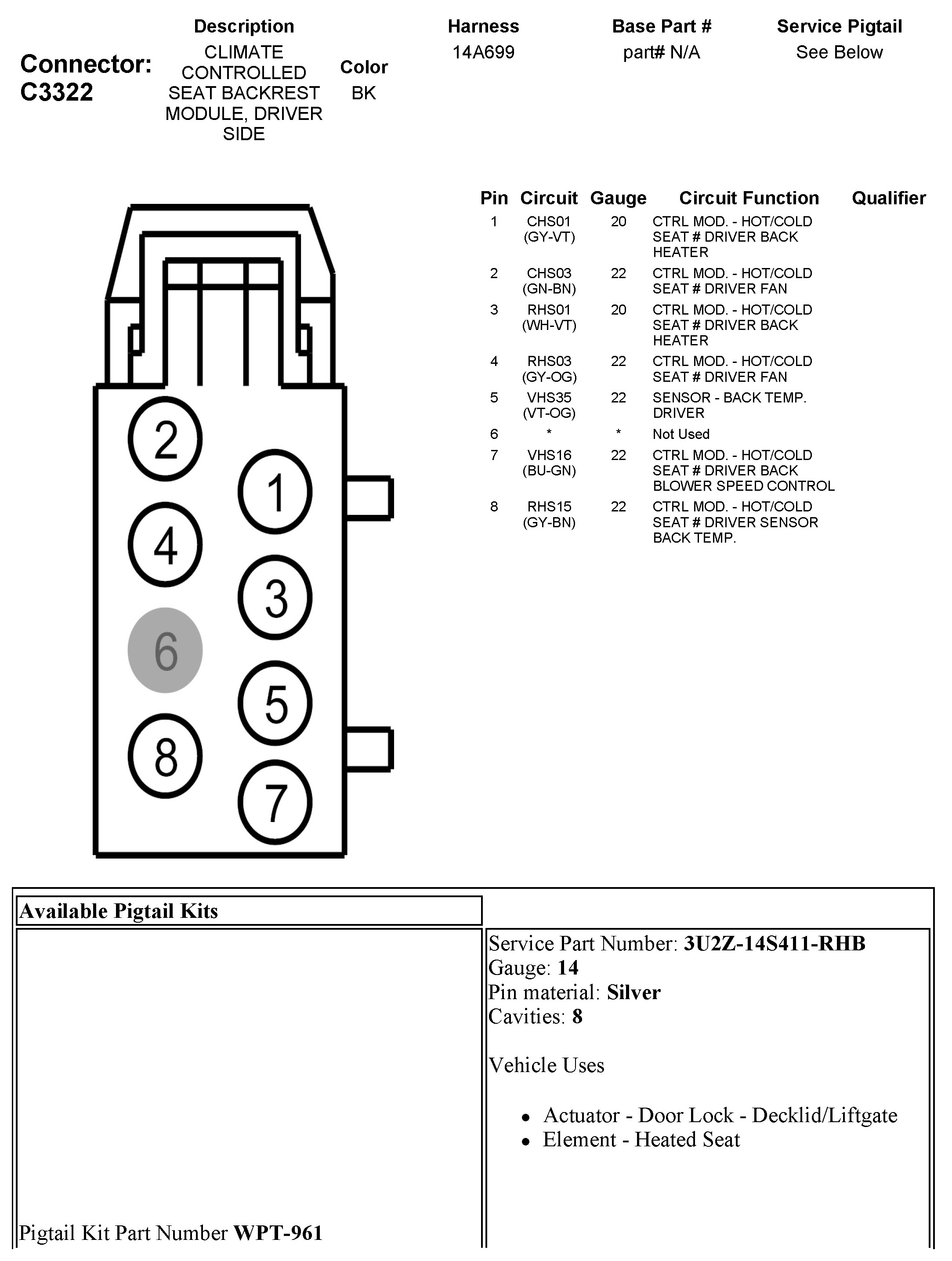 C3322 Climate Controlled Seat Backrest Module, Driver Side