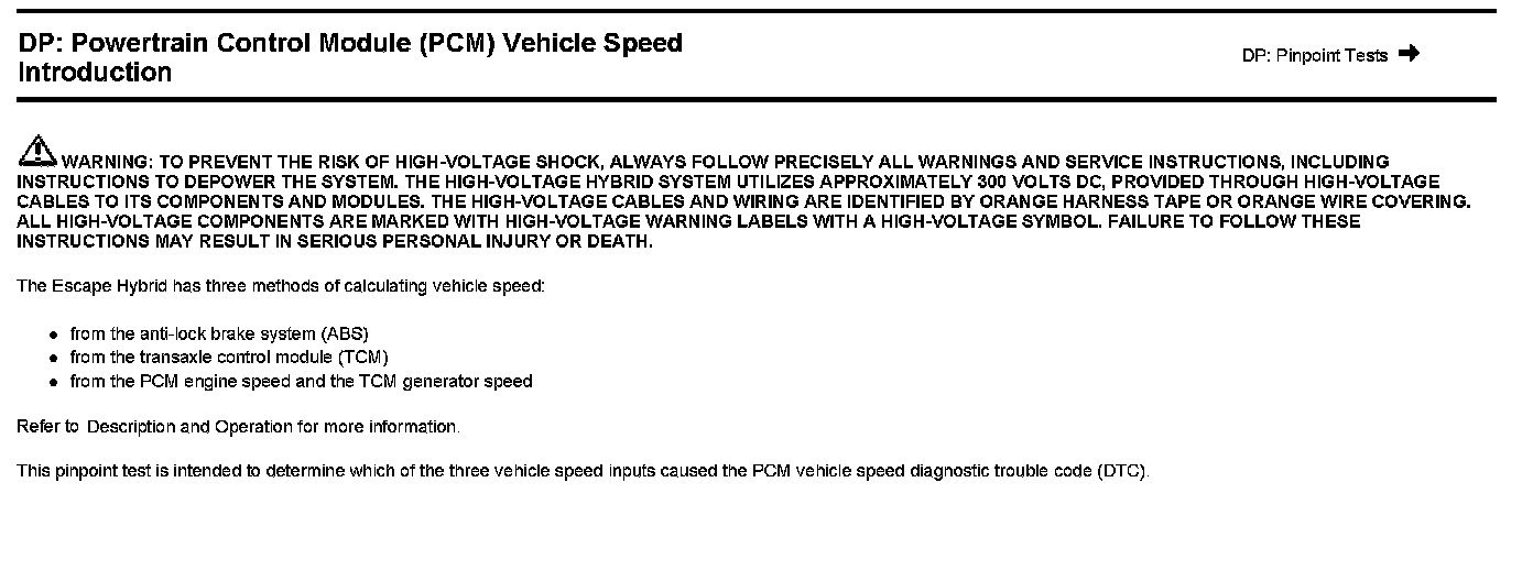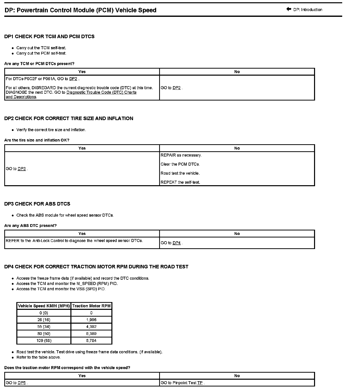 Test DP: Powertrain Control Module (PCM) Vehicle Speed