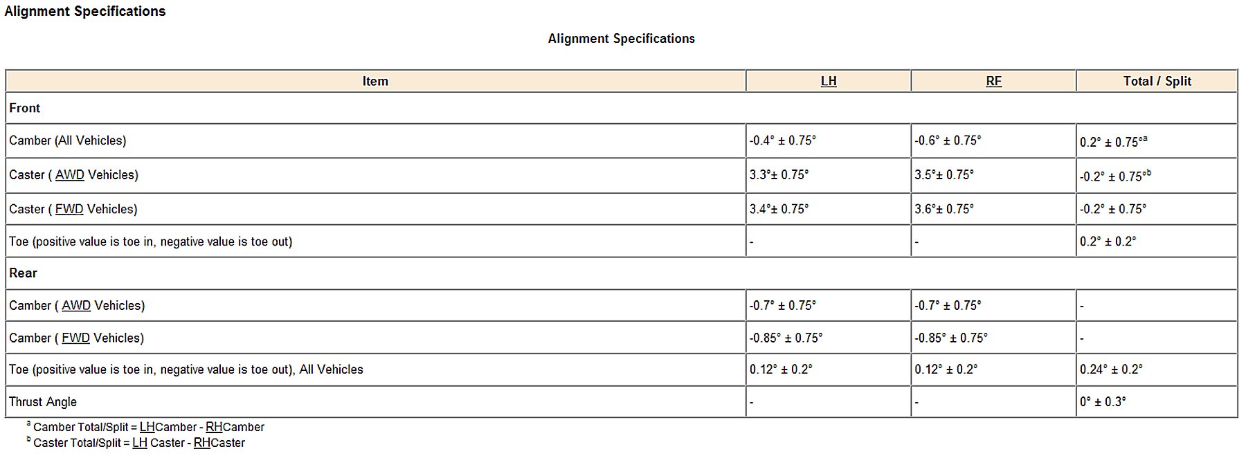 Alignment Specifications