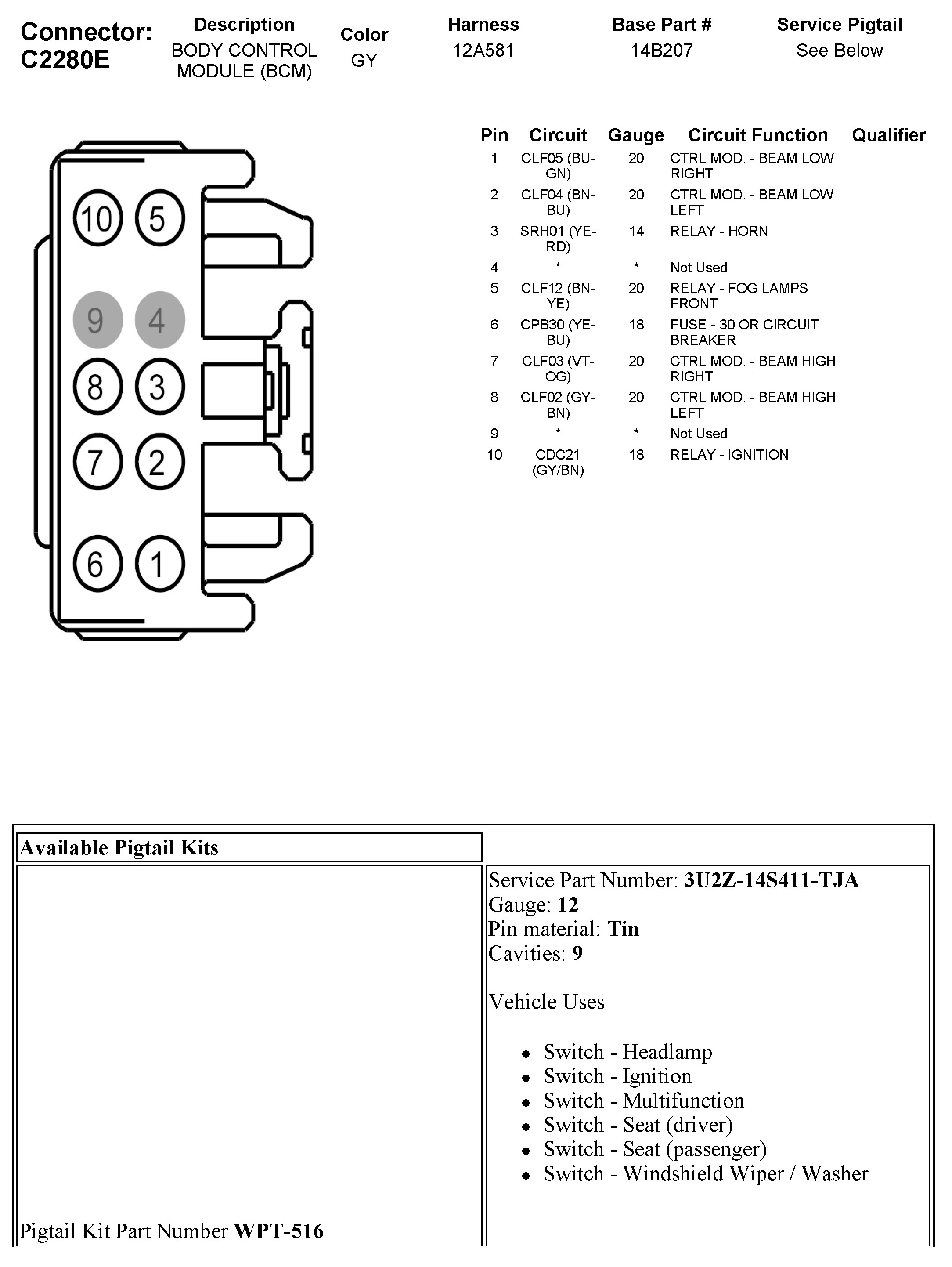 C2280E Body Control Module (BCM)