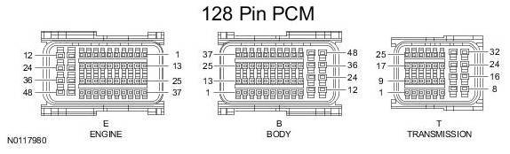 Powertrain Control Module (PCM) Connector - For PCM connector views or reference values, refer to Reference Values.