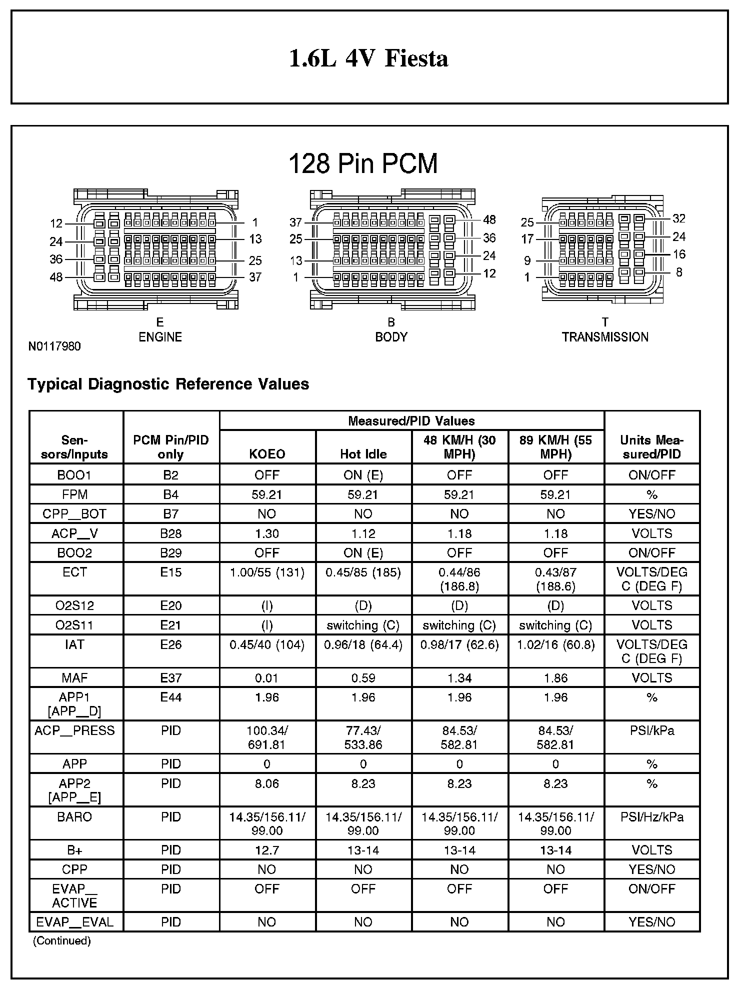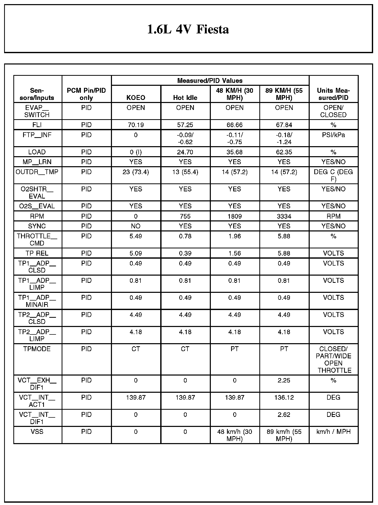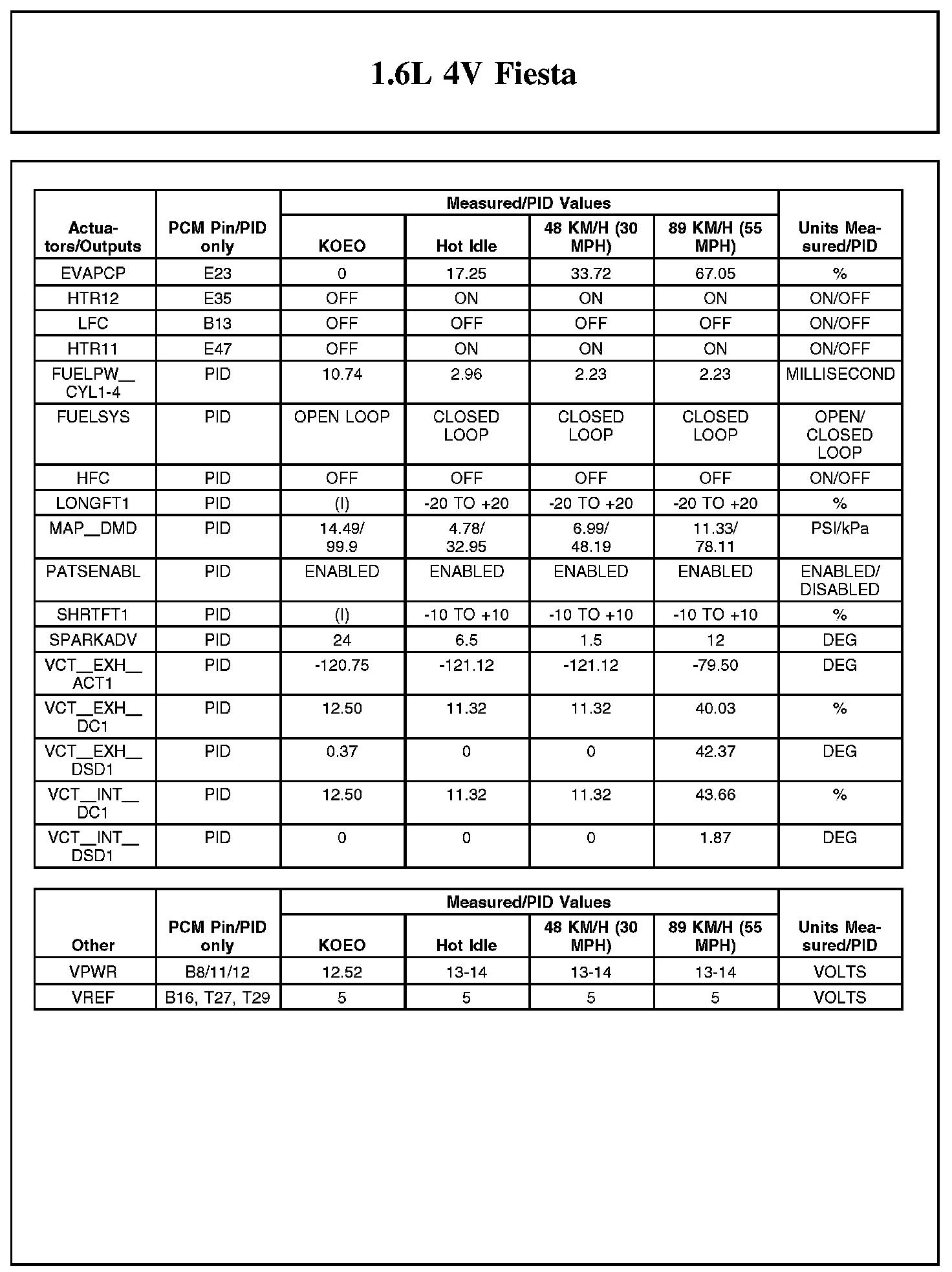 The Typical Diagnostic Reference Value Charts do not display fault parameter identifications (PIDs). These are PIDs which indicate a hard fault with the circuit. They display a value of FAULT or NO FAULT and are PIDs ending with the letter F.