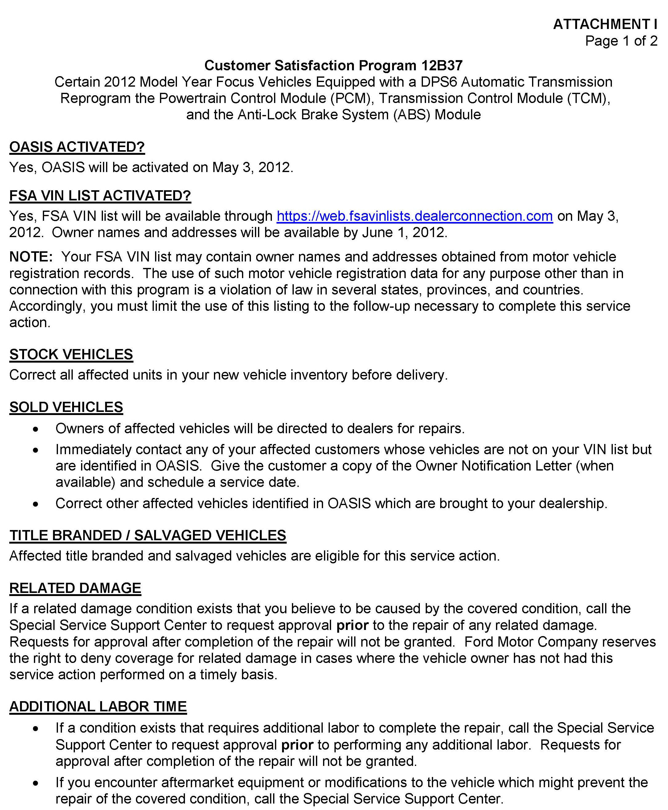 Attachment I - Administrative Information