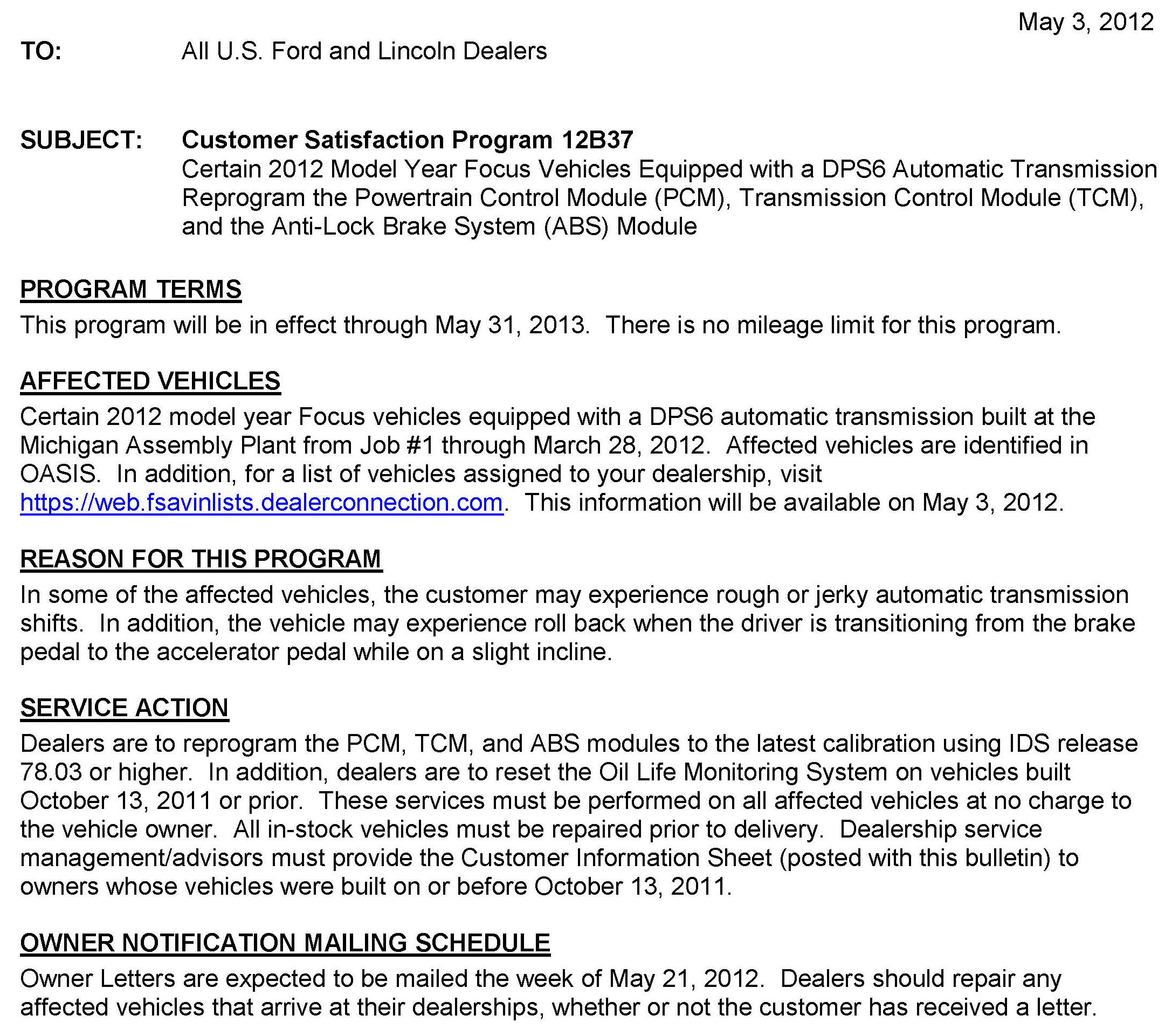 Dealer Letter